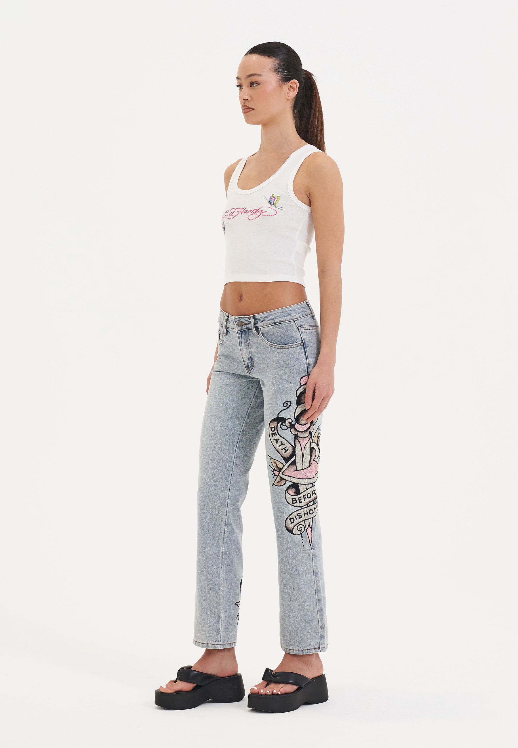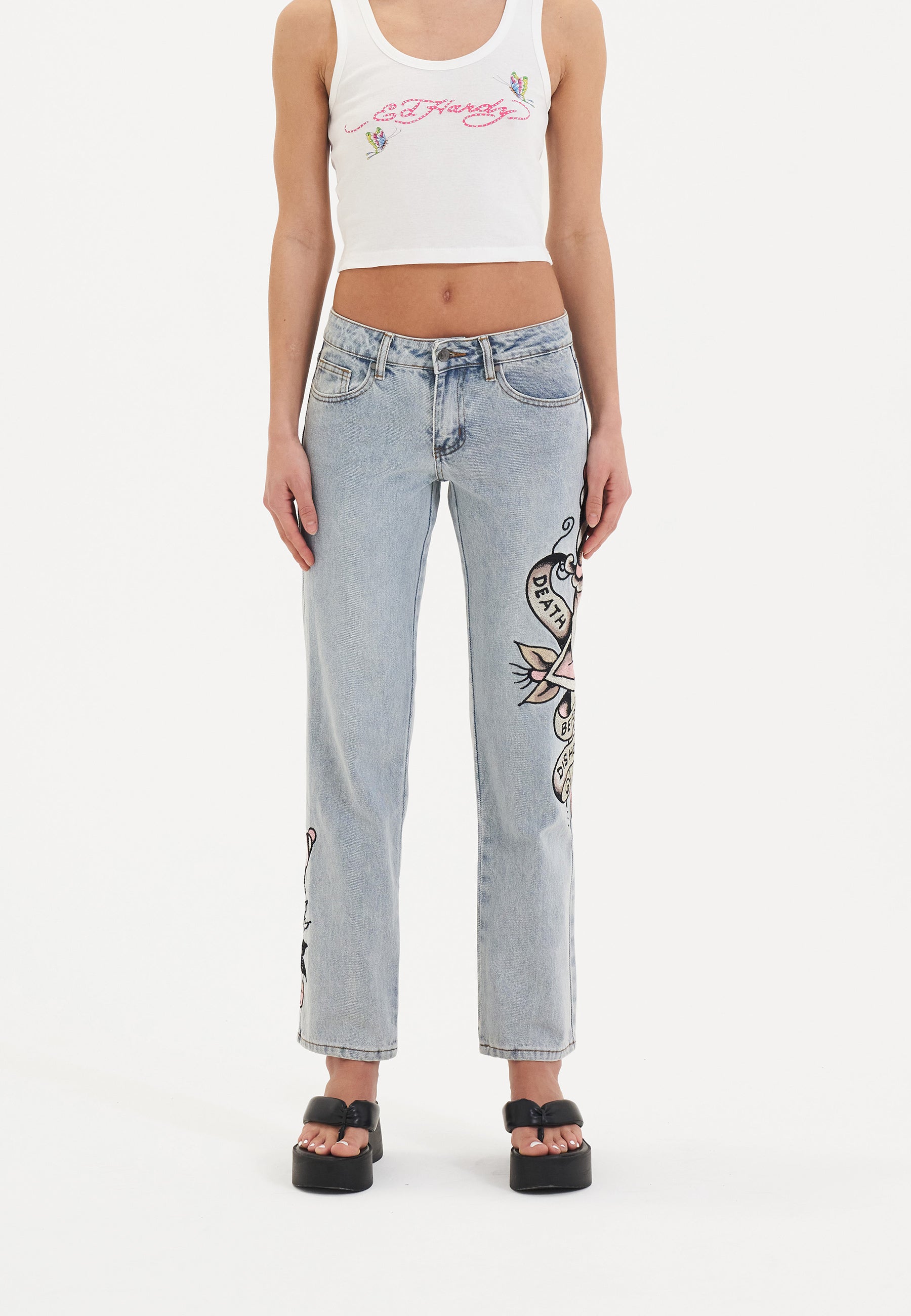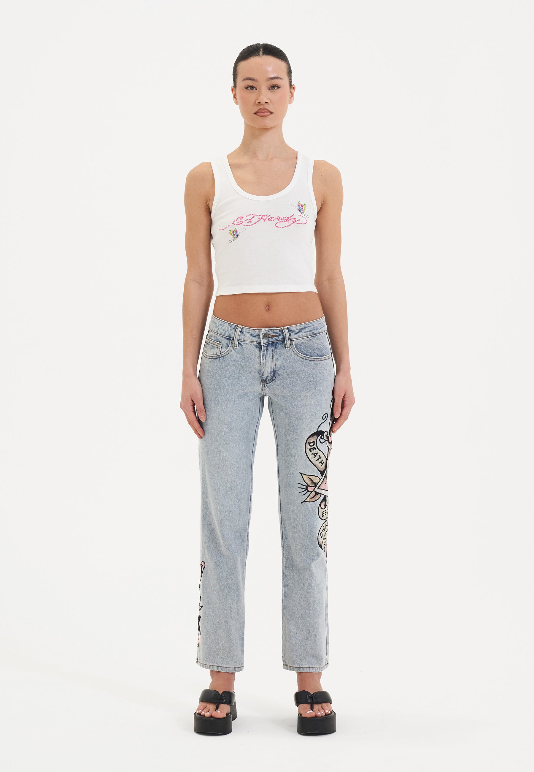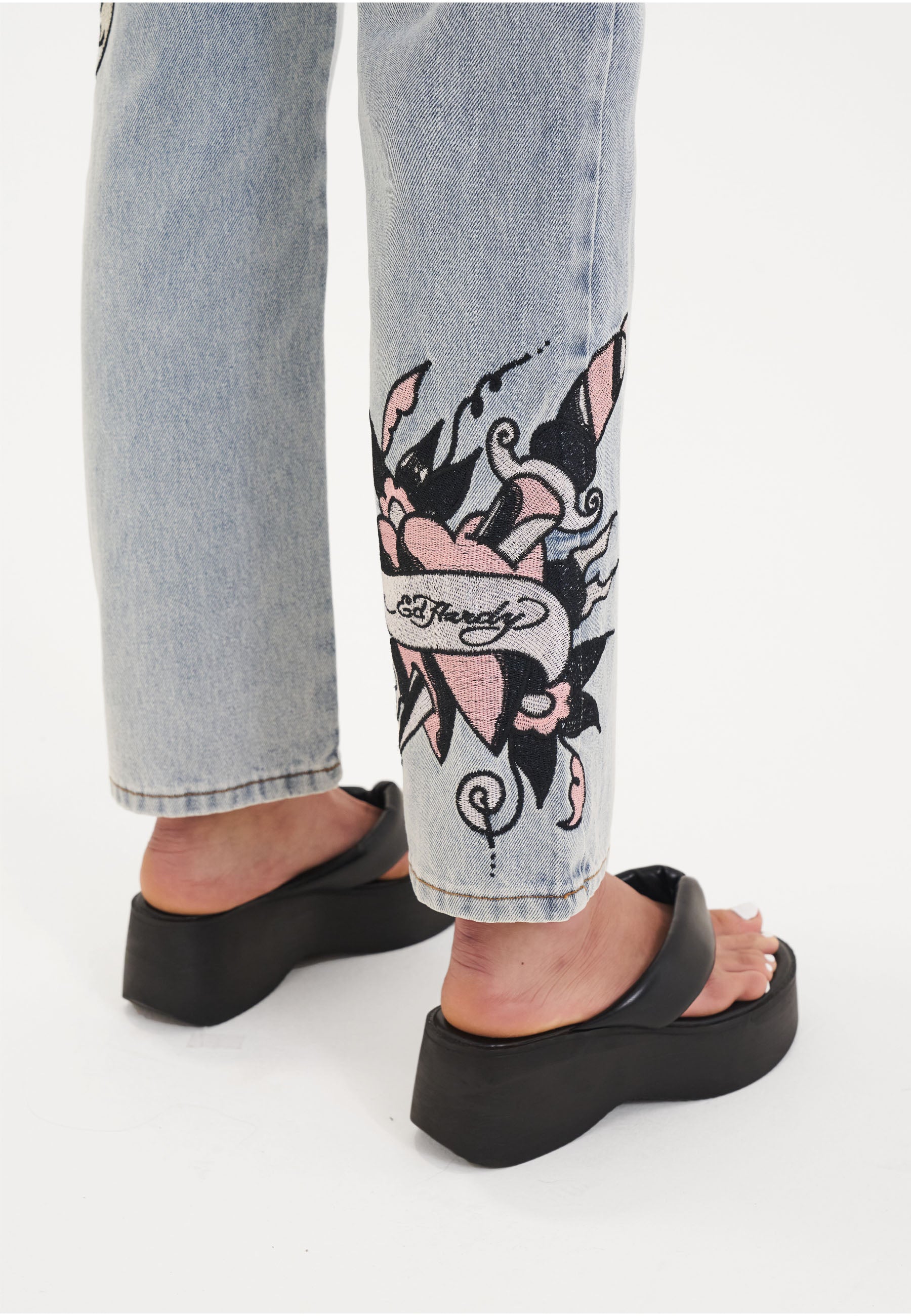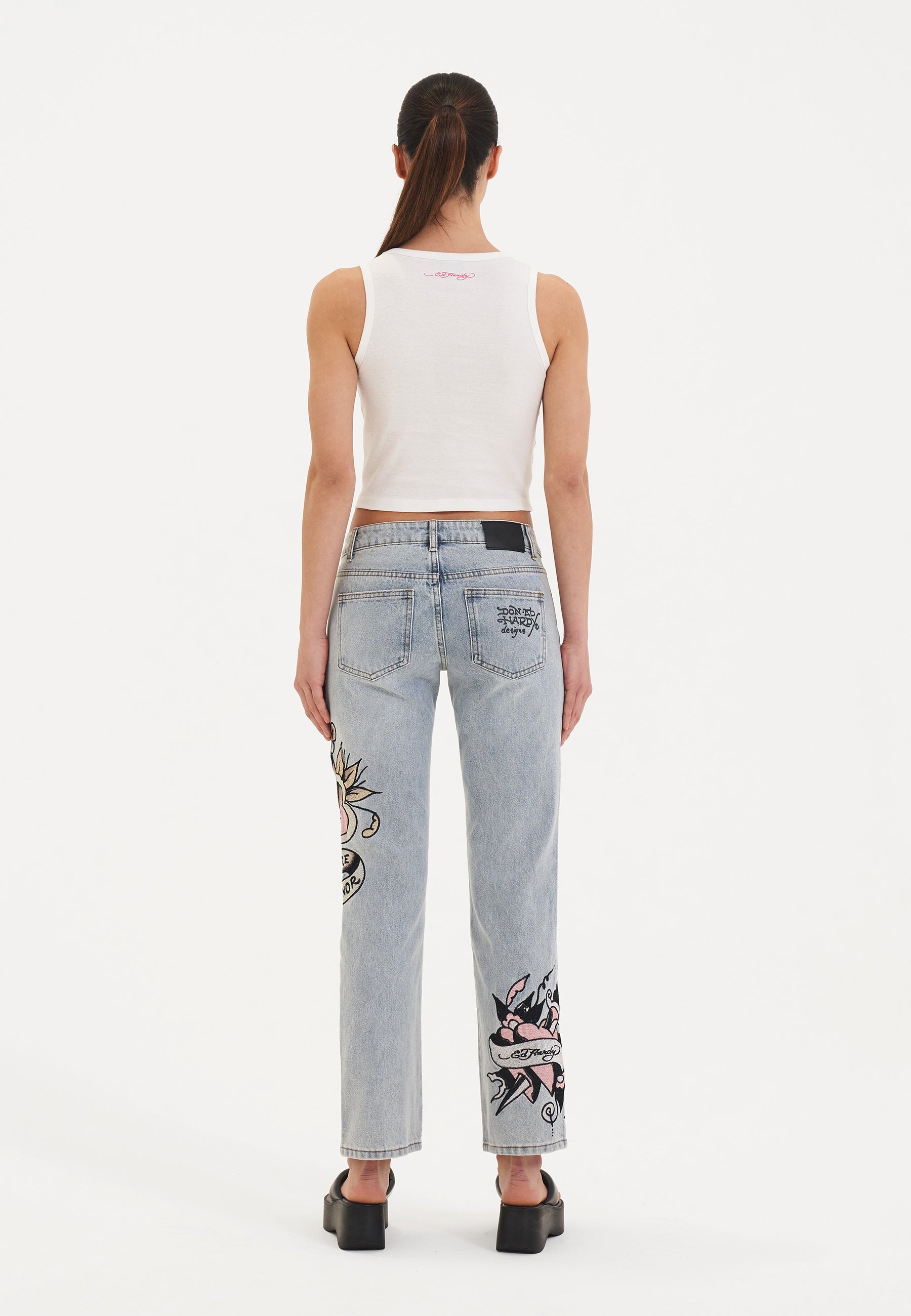 Anticipate these jeans becoming your go-to style for the year, adorned with full-colour embroidered patches from Ed's archives and boasting a super-flattering silhouette.