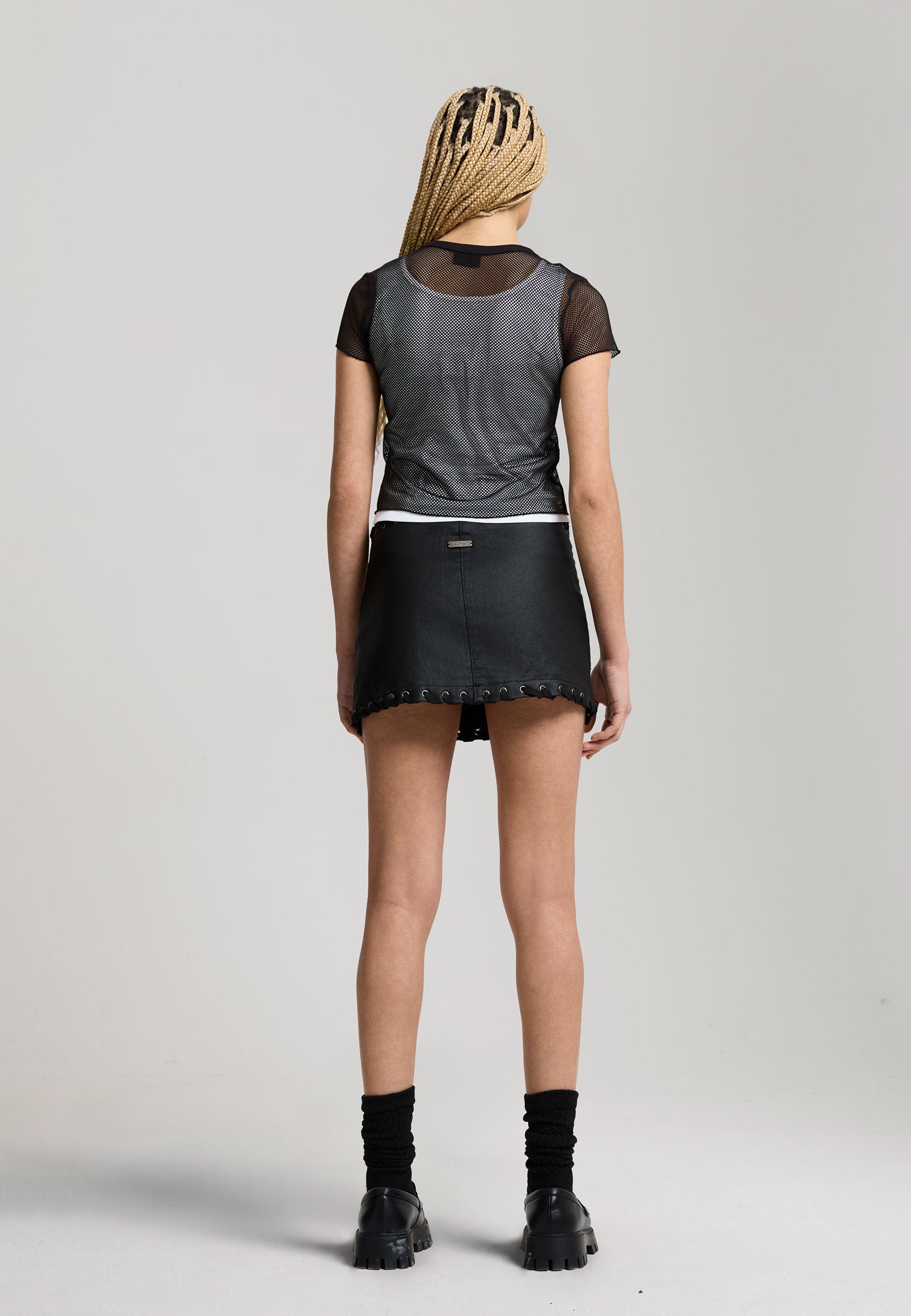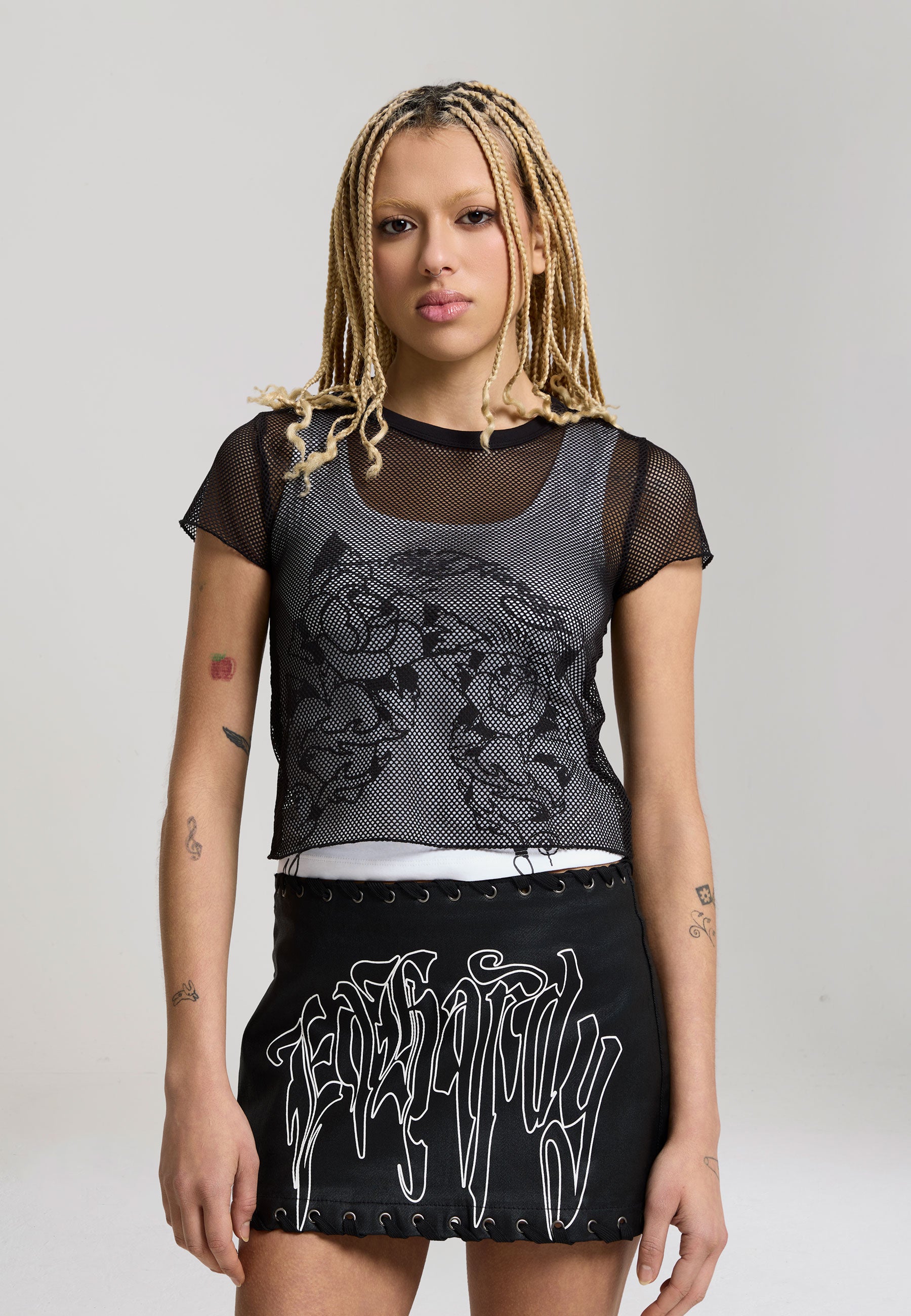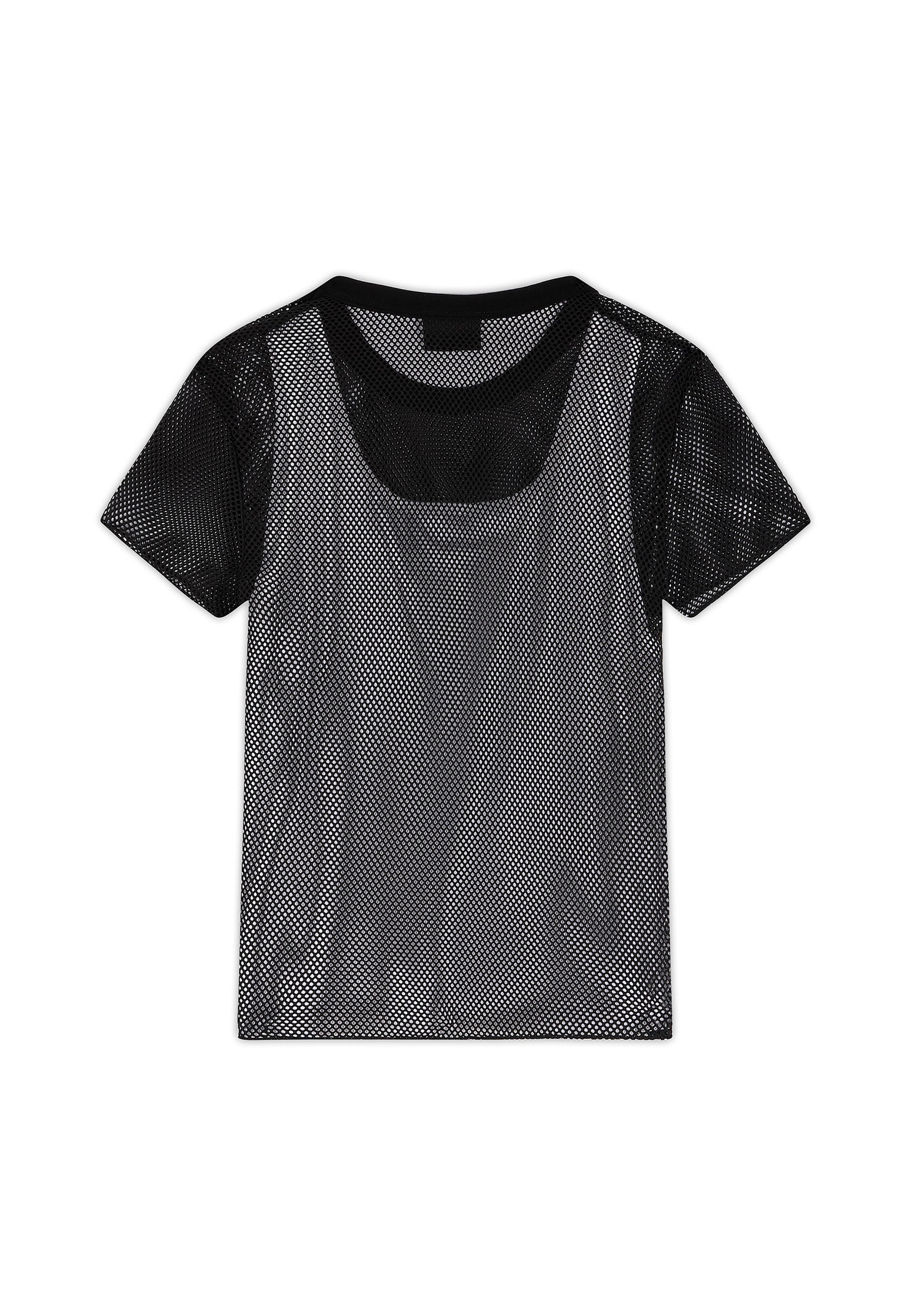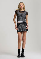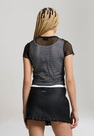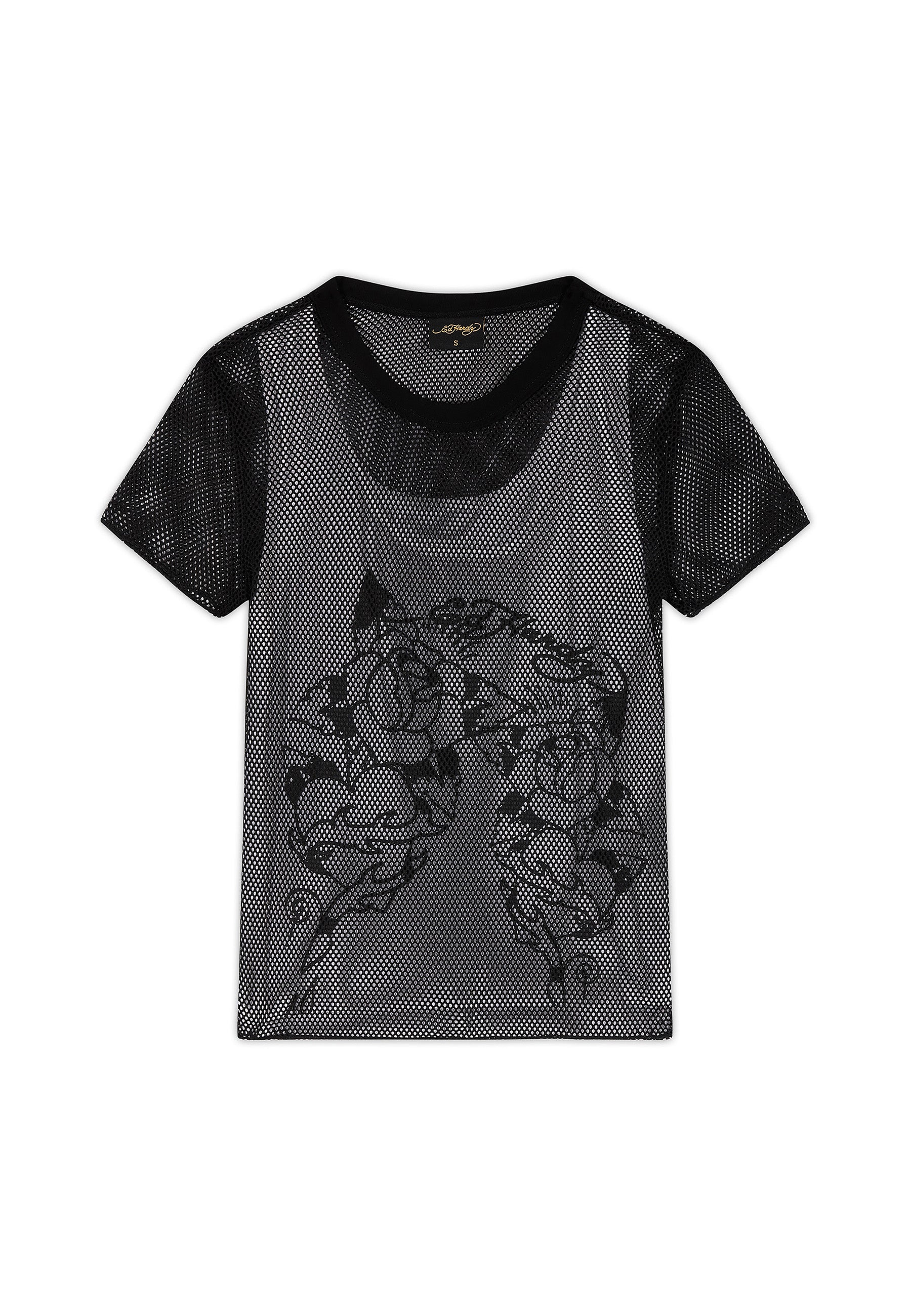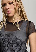 Womens Double Layer Climbing Rose Mesh Tee - White / Black