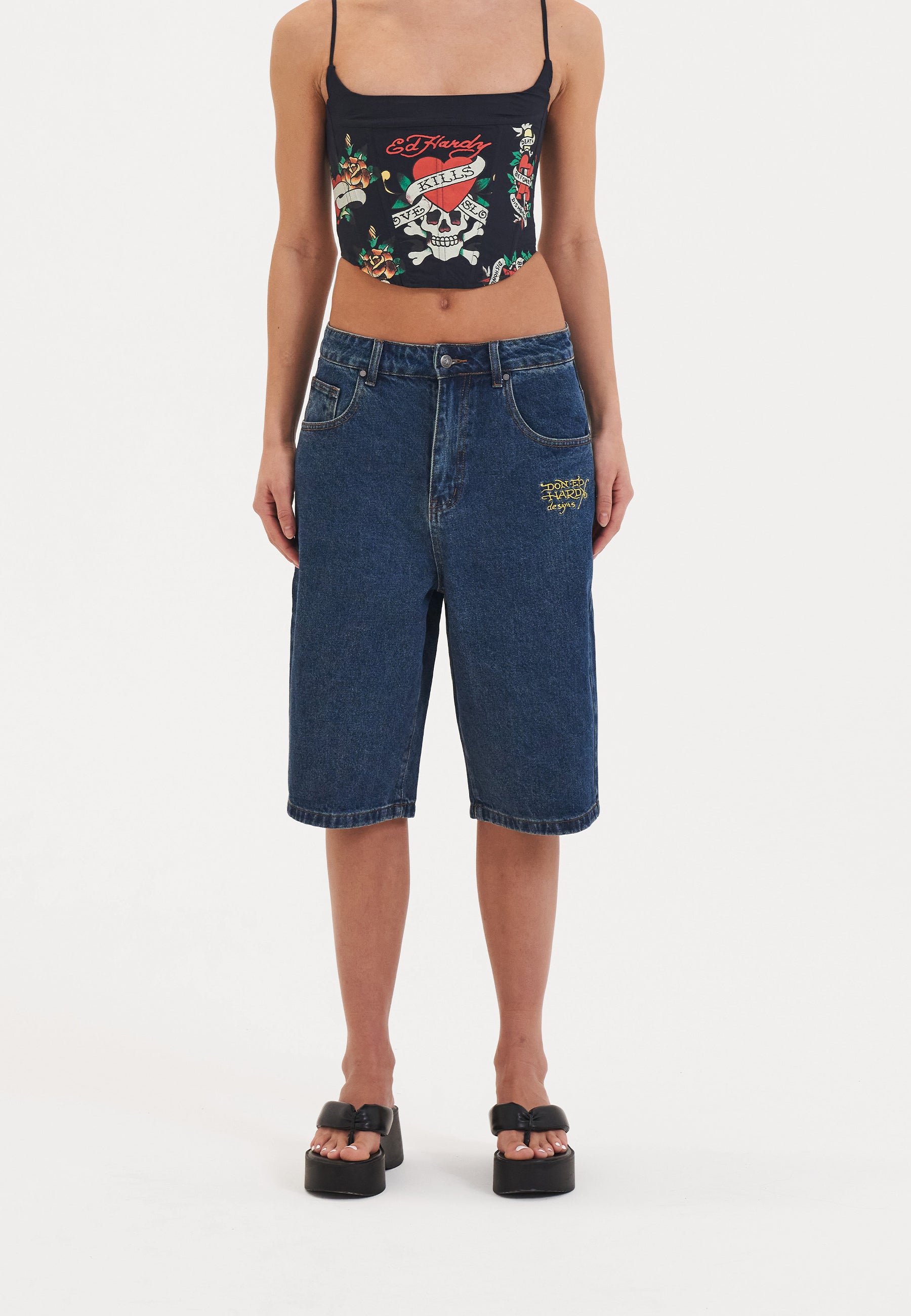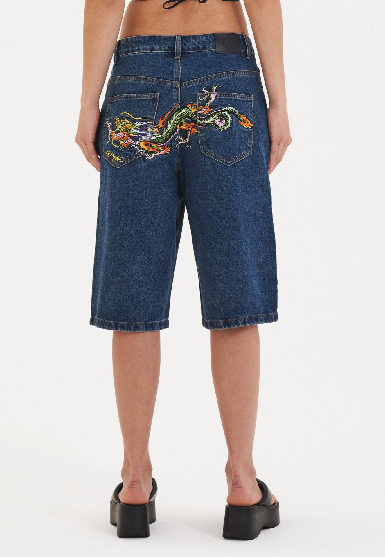 Womens Dragon Crawl Relaxed Denim Jorts Shorts - Indigo