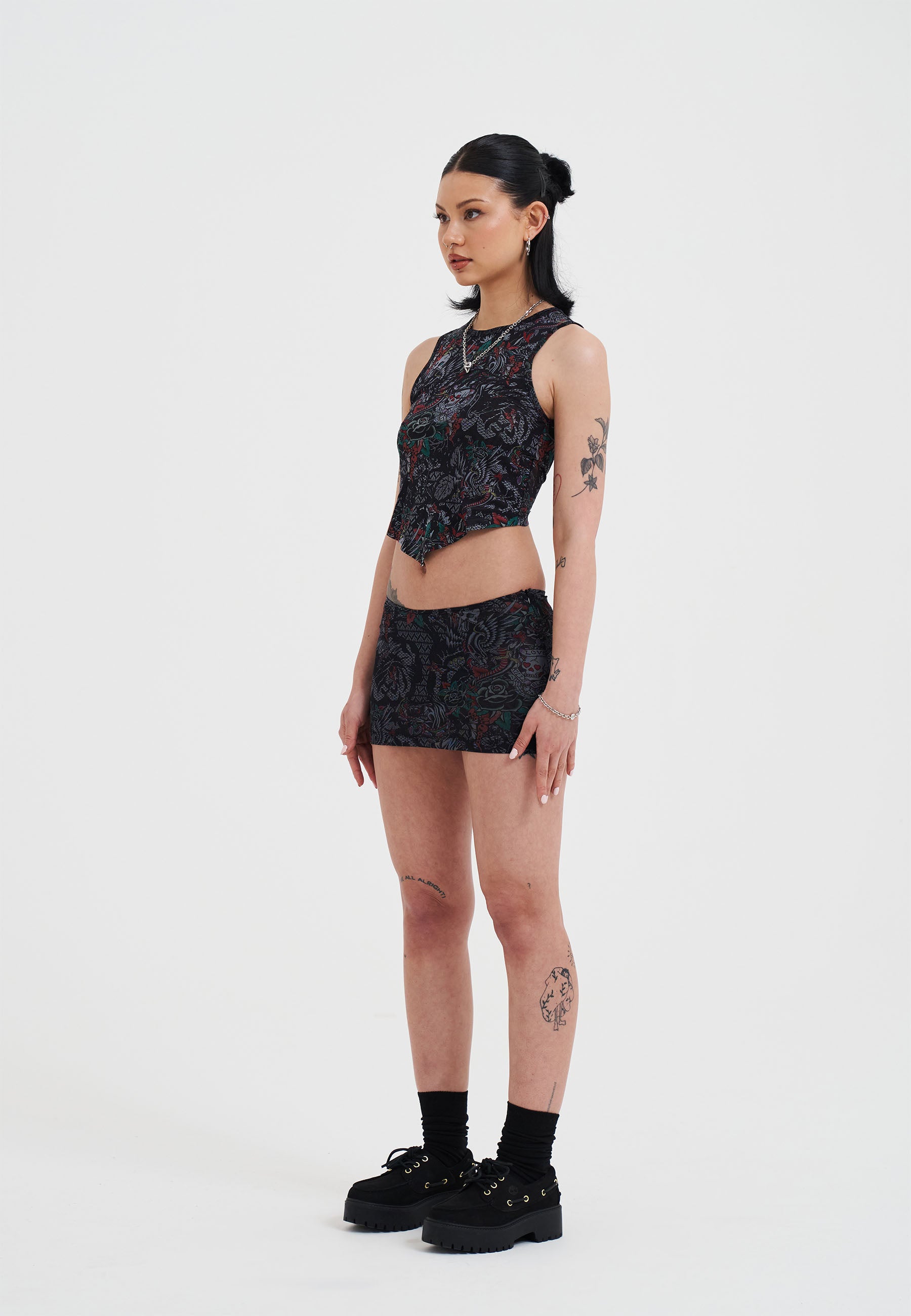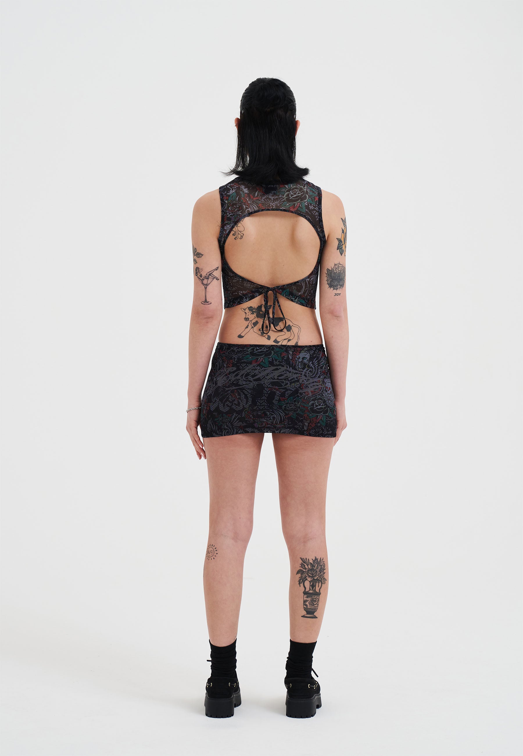 DRAGON REPEAT TIED BACK MESH VEST TOP