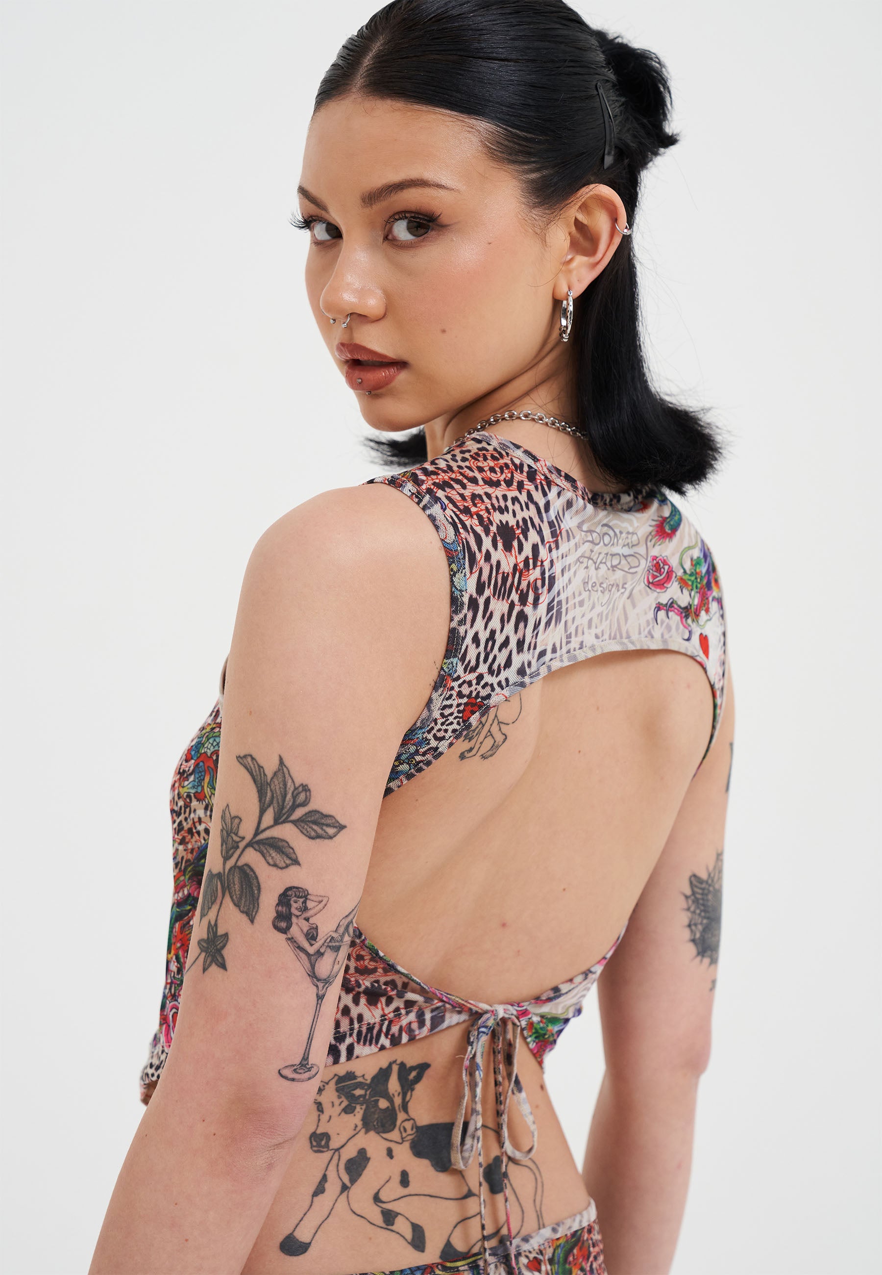 - DRAGON PRINT AND LEOPARD TATTOO GRAPHIC
