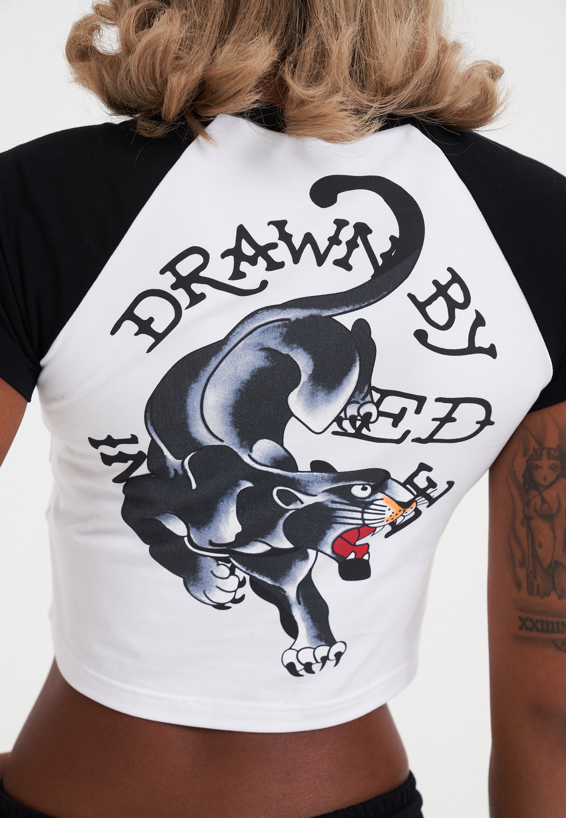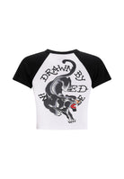 WOMENS DRAWN PANTHER RINGER BABY T-SHIRT in White