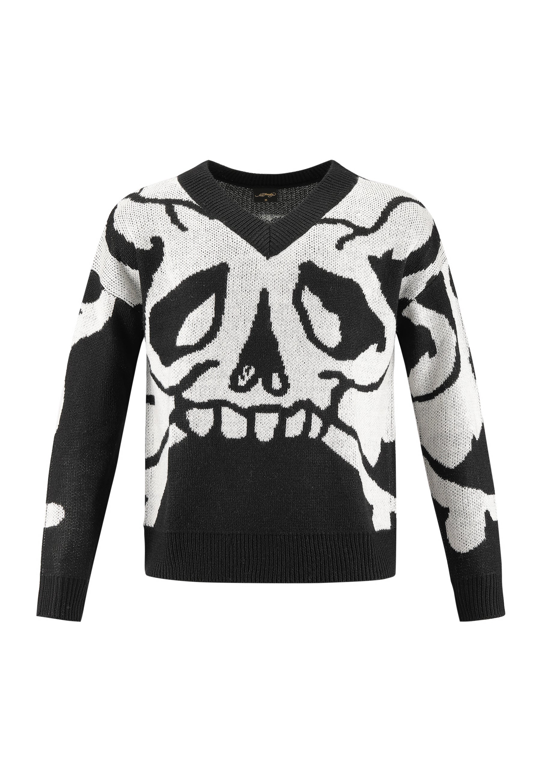 Channel bold, rebellious style with the XL Skull V-Neck Jacquard Knitted Jumper.