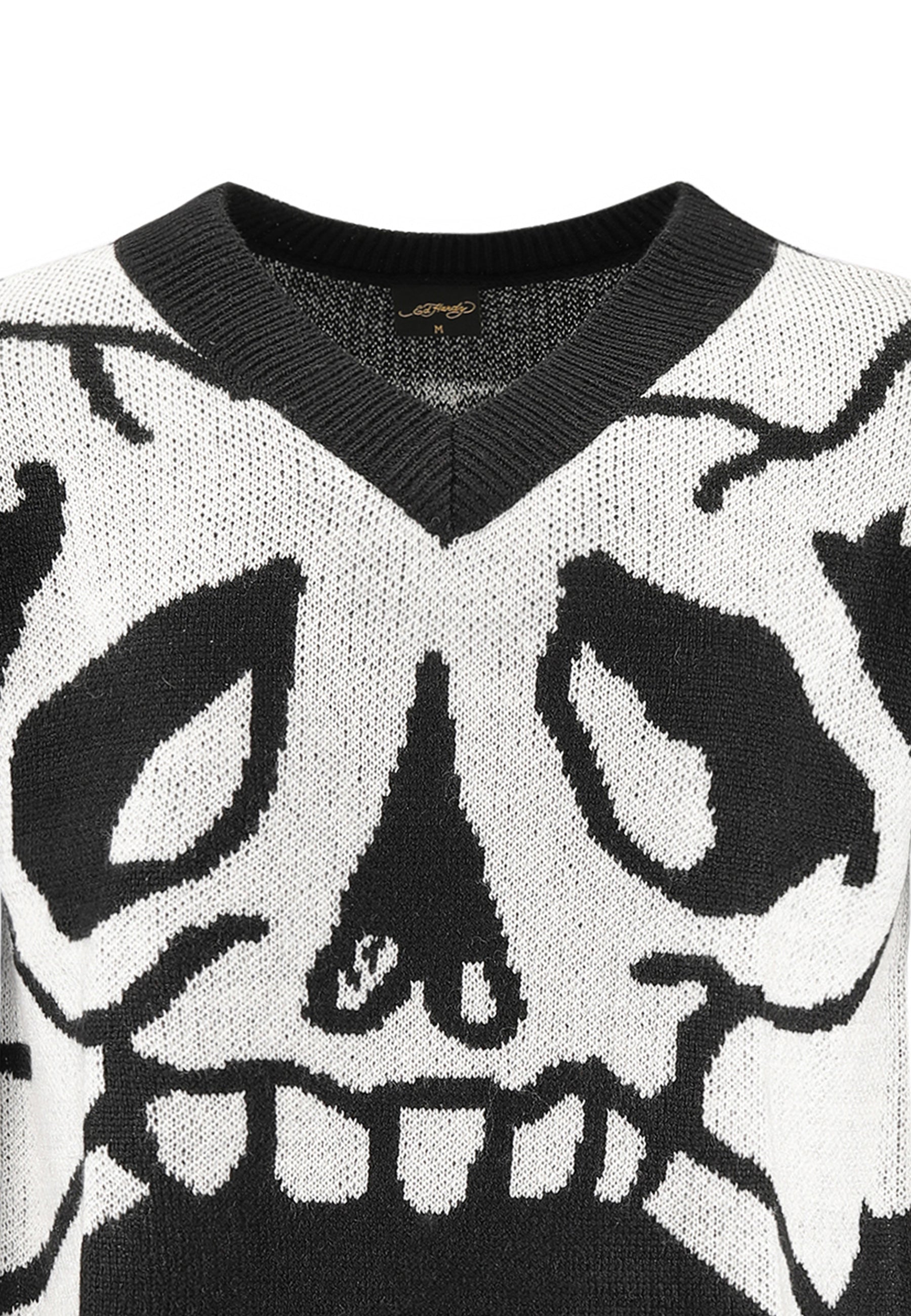 Featuring an all-over skull jacquard print, a sharp V-neck, drop shoulder and a gothic-style Ed Hardy logo.