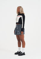Women's Apparel: Denim Pleated Mini Skirts and Flared Jeans