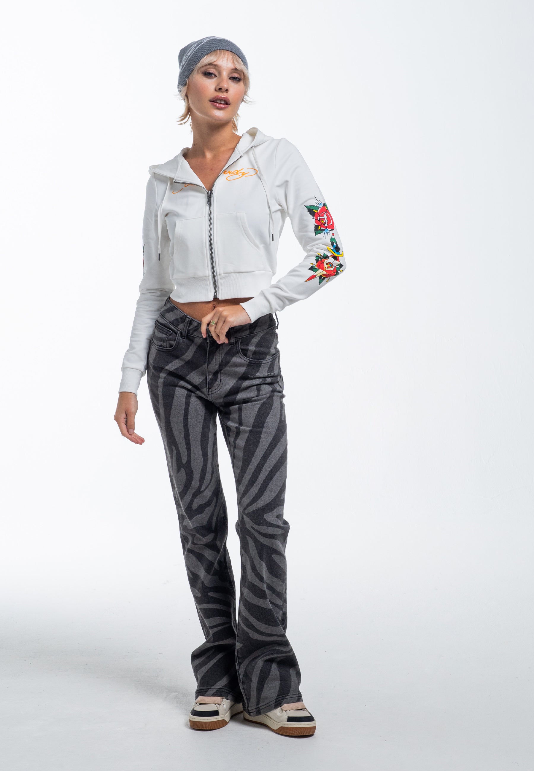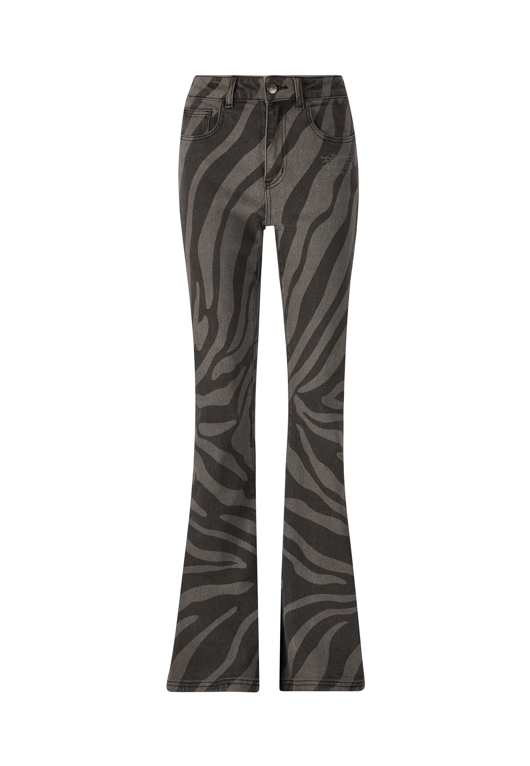 Womens Flaming Tiger Flared Denim Trousers Jeans - Black