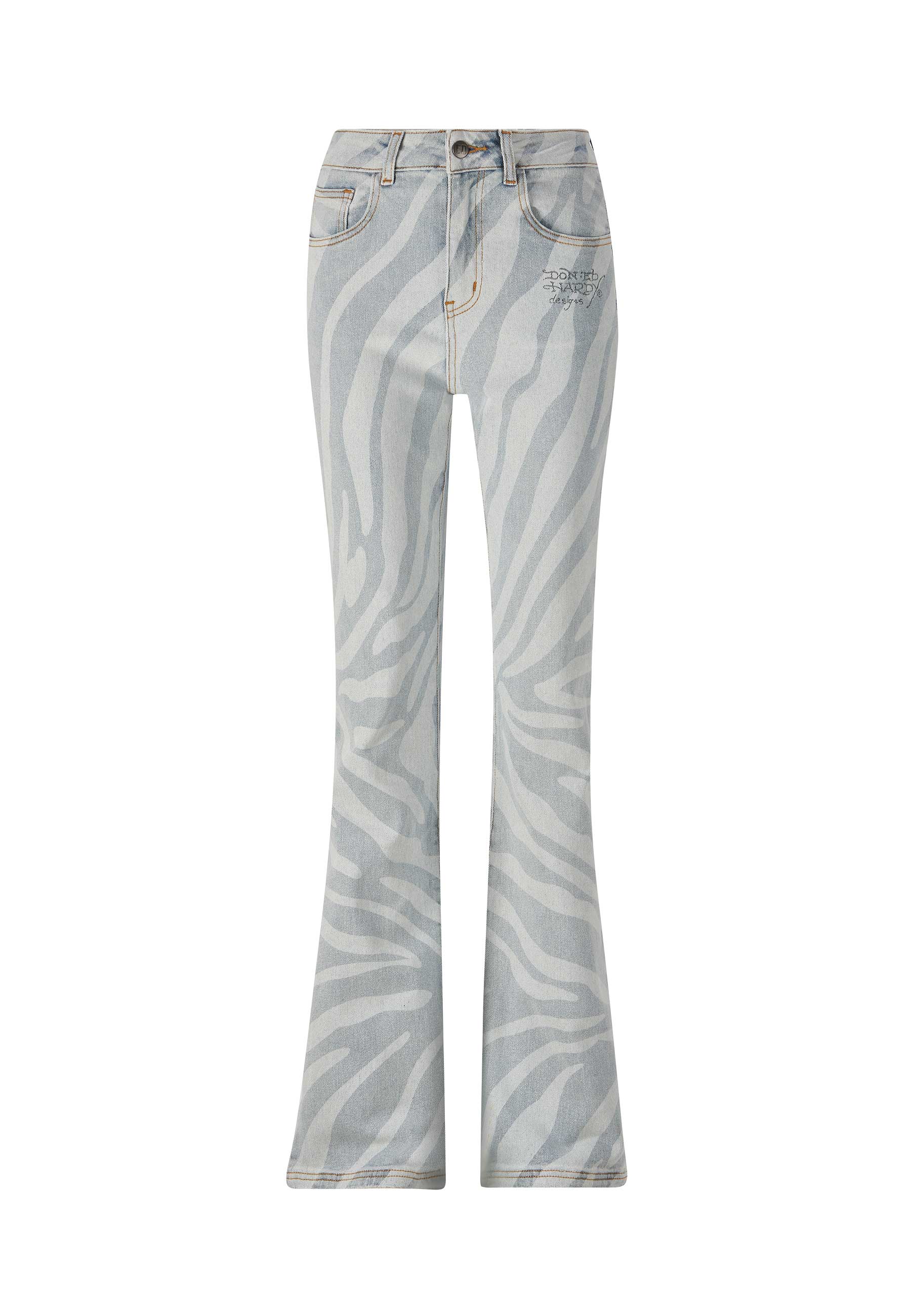 Womens Flaming Tiger Flared Denim Trousers Jeans - Blue