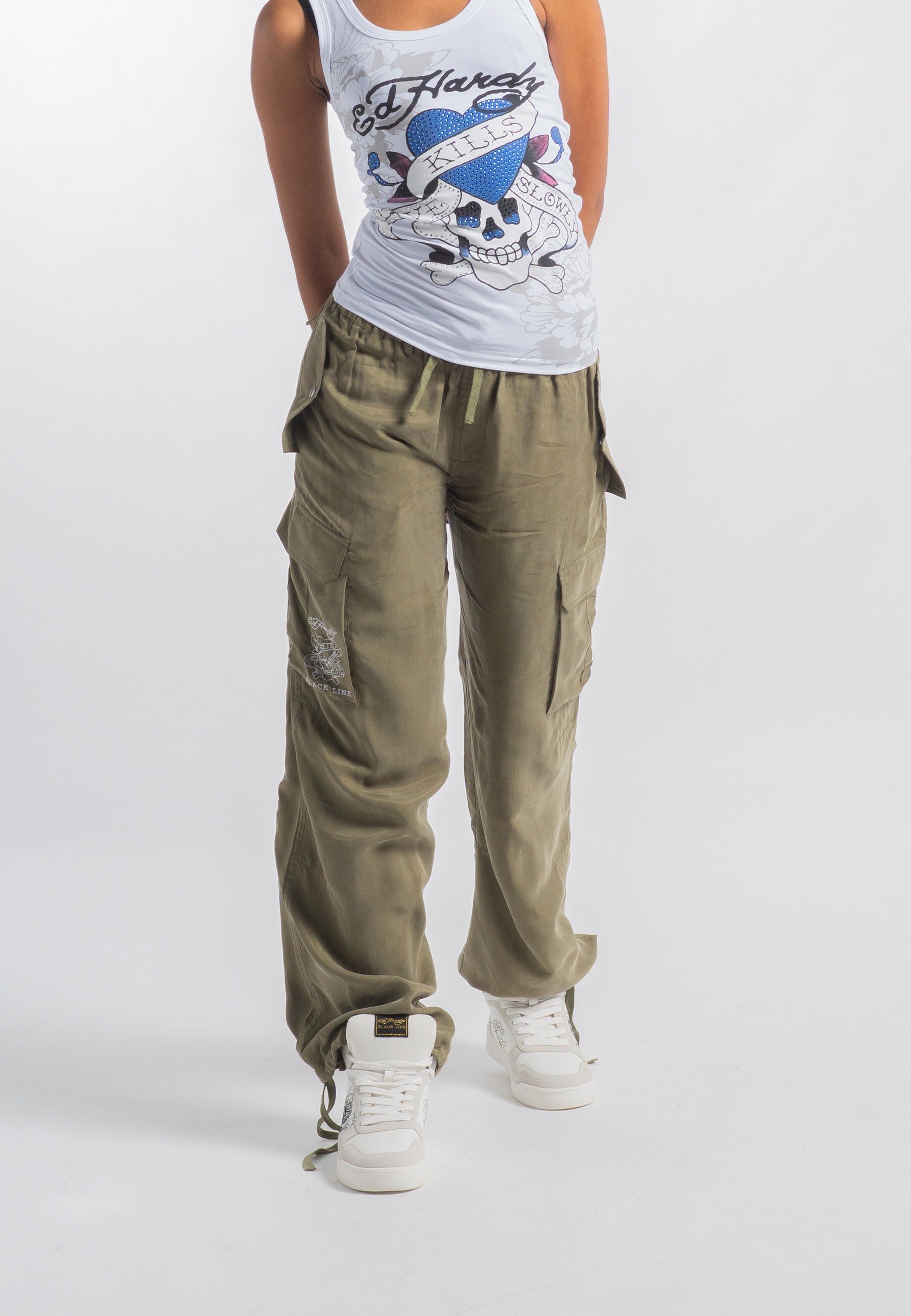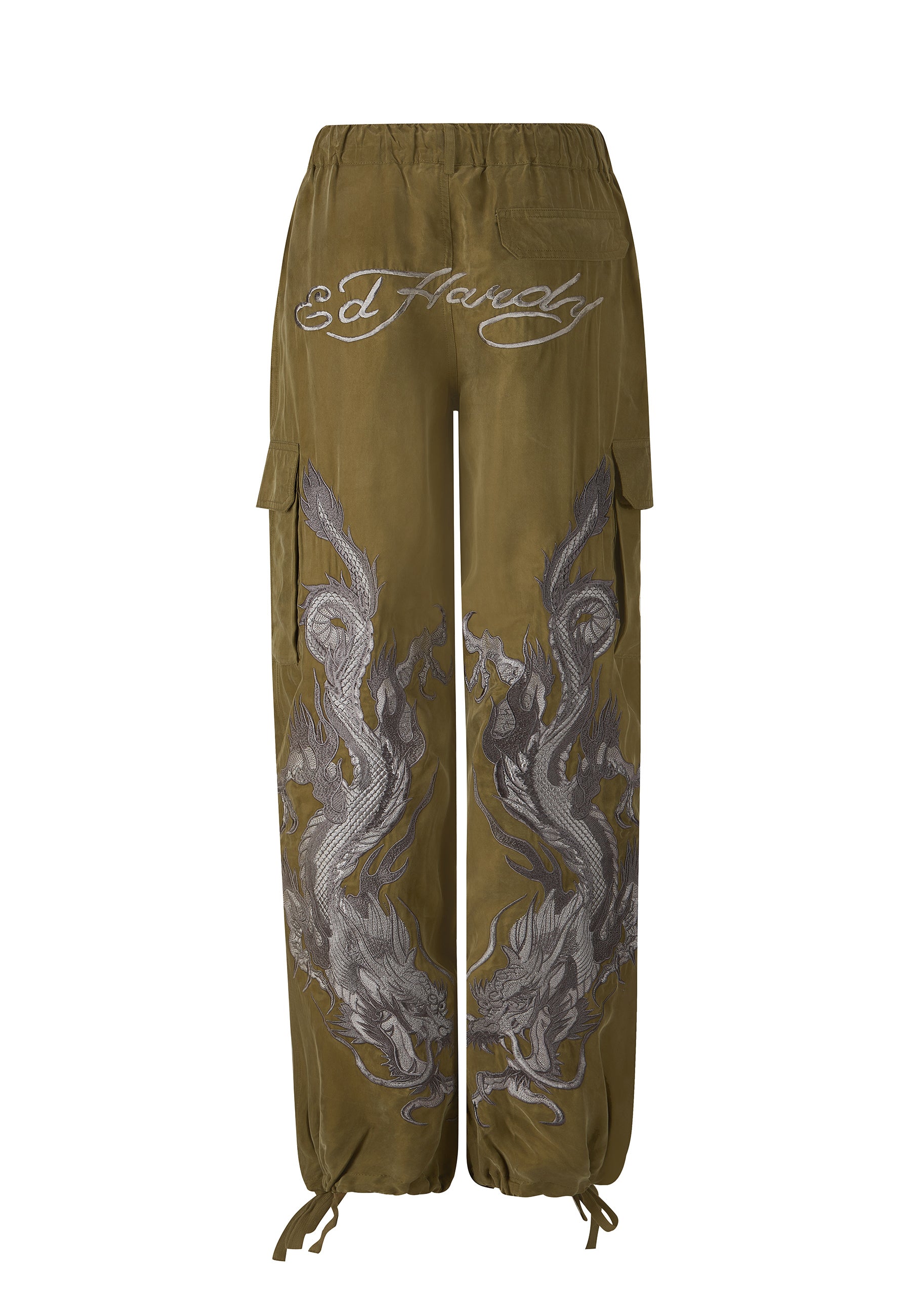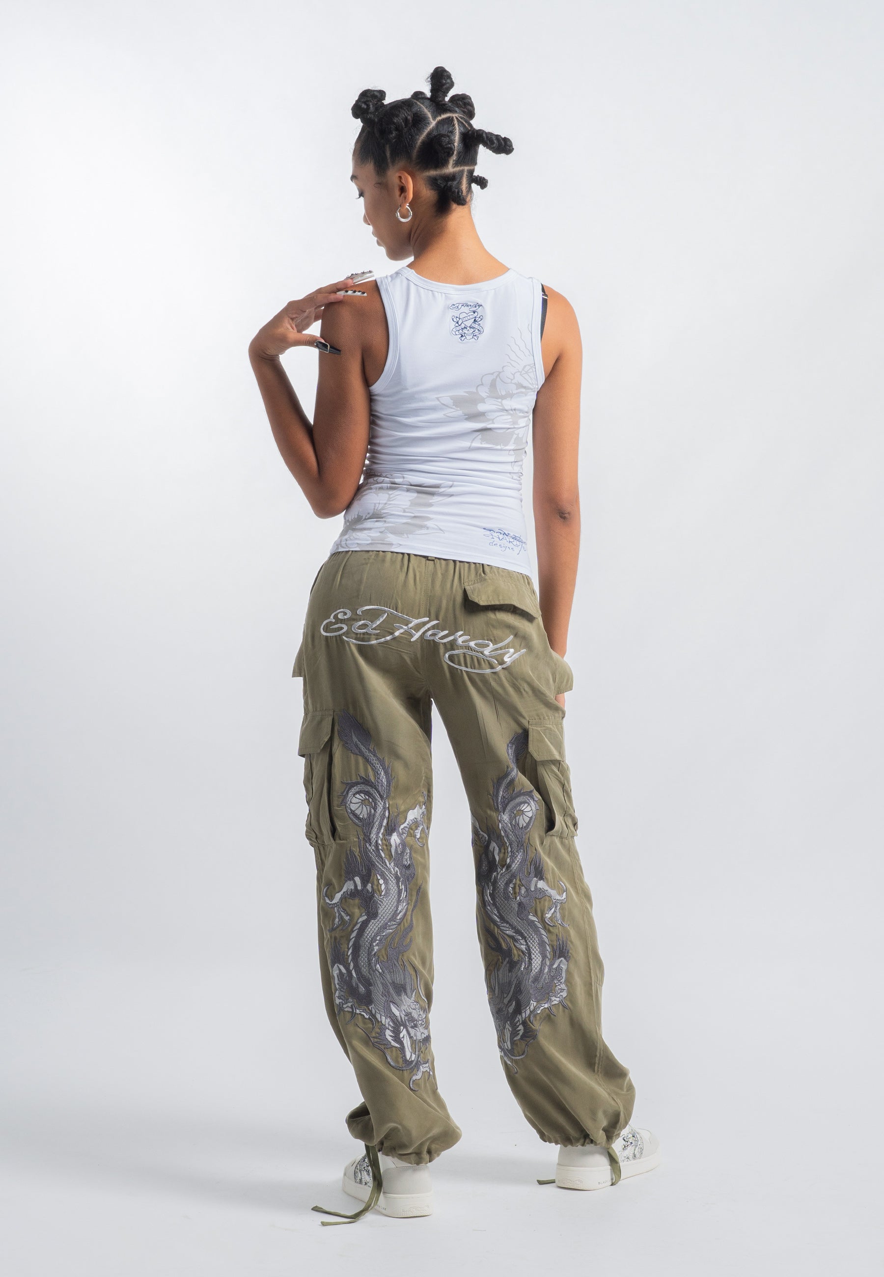 The Hidden Dragon Cargo Trousers are a testament to Ed Hardy's artistry, blending premium materials and thoughtful detailing.