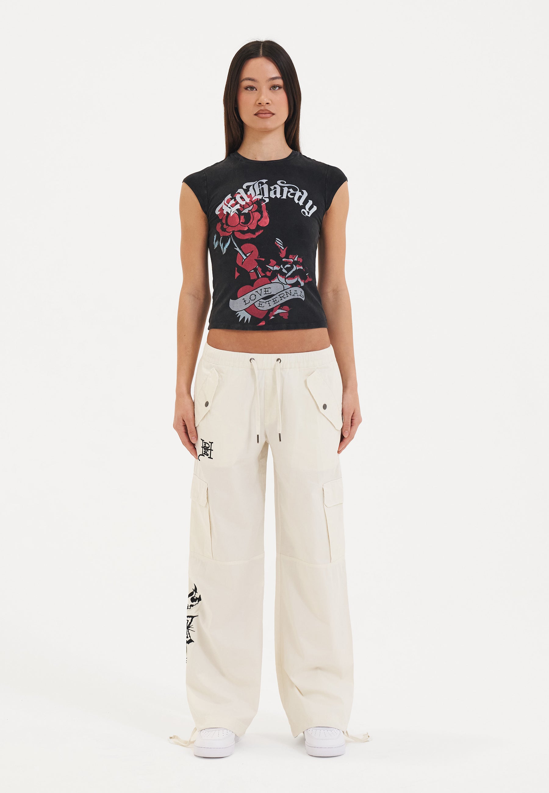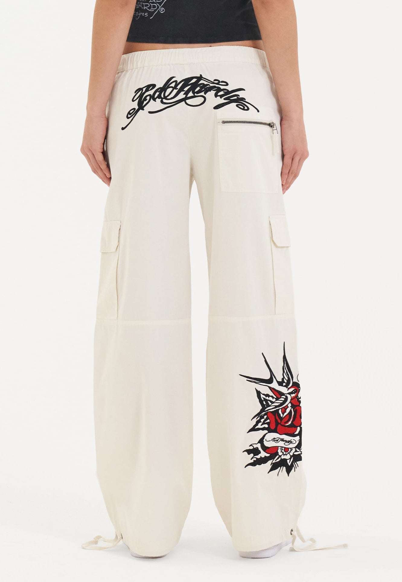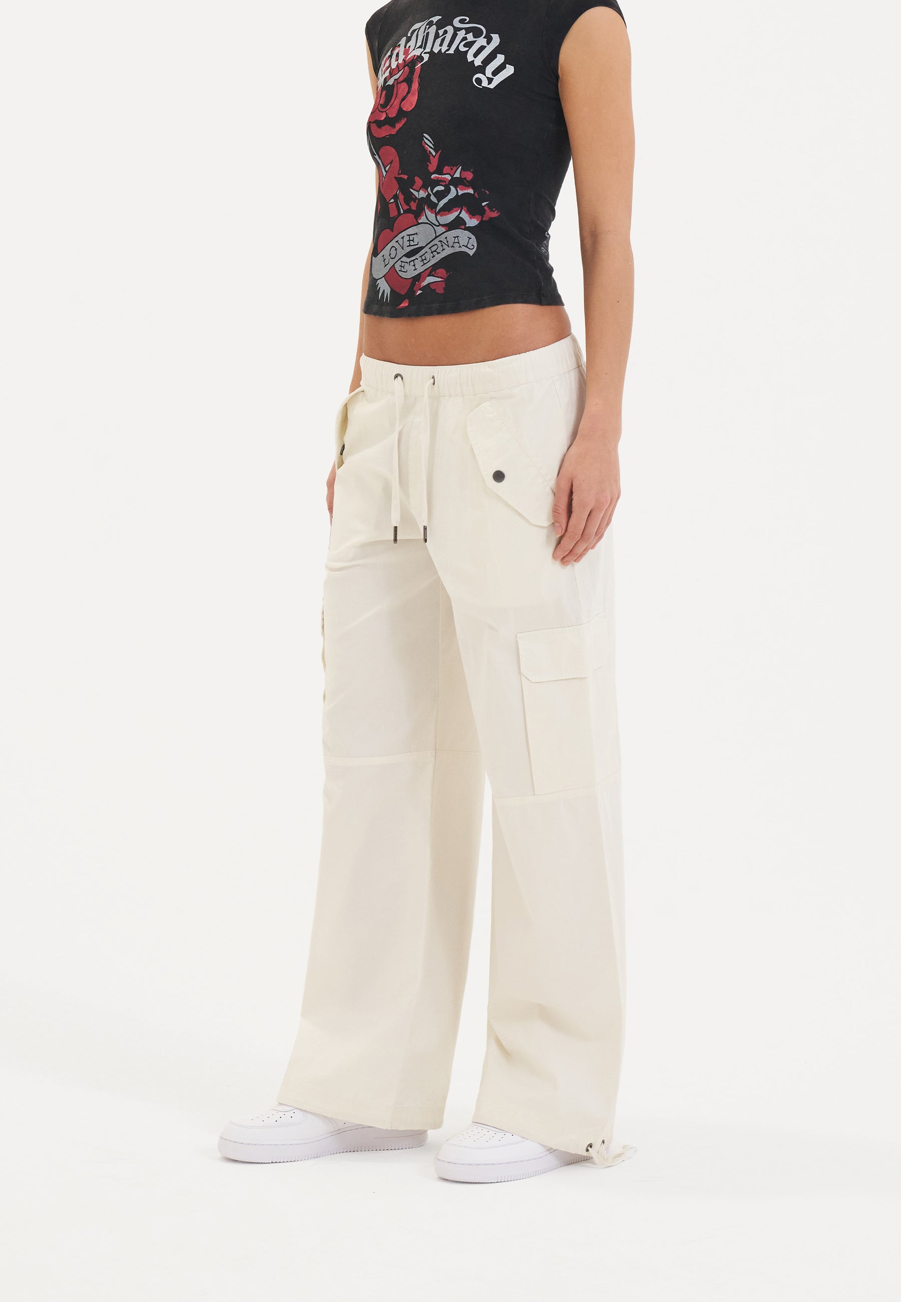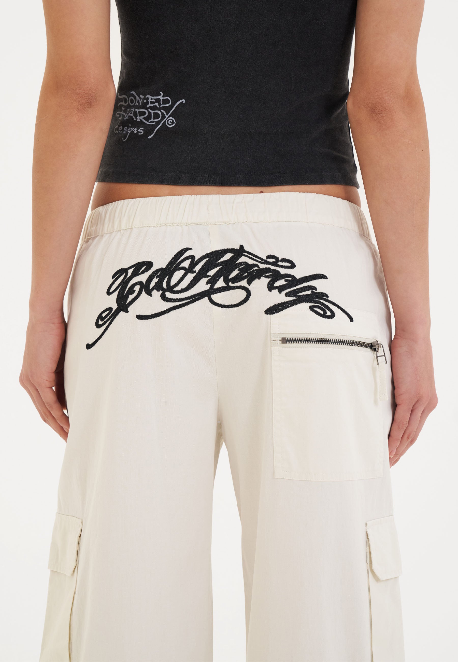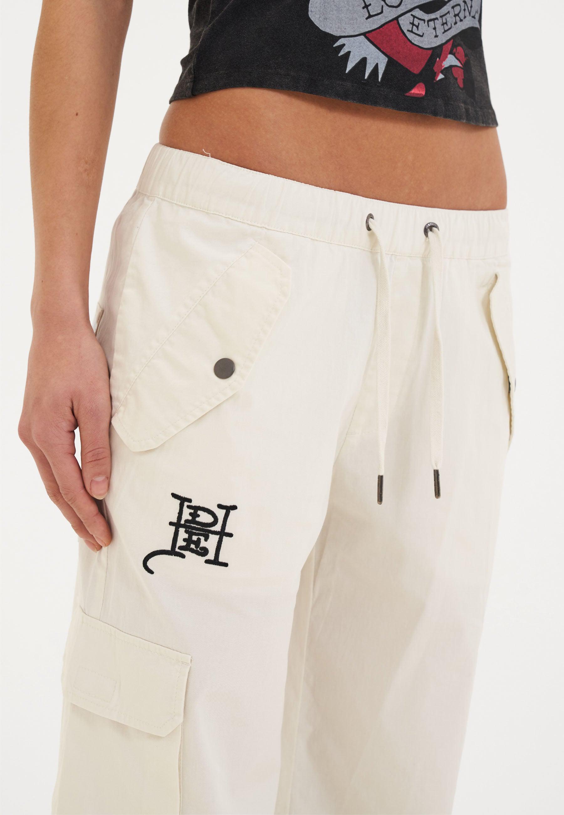 Womens Hollywood Swallow Cargo Pants Trousers - White