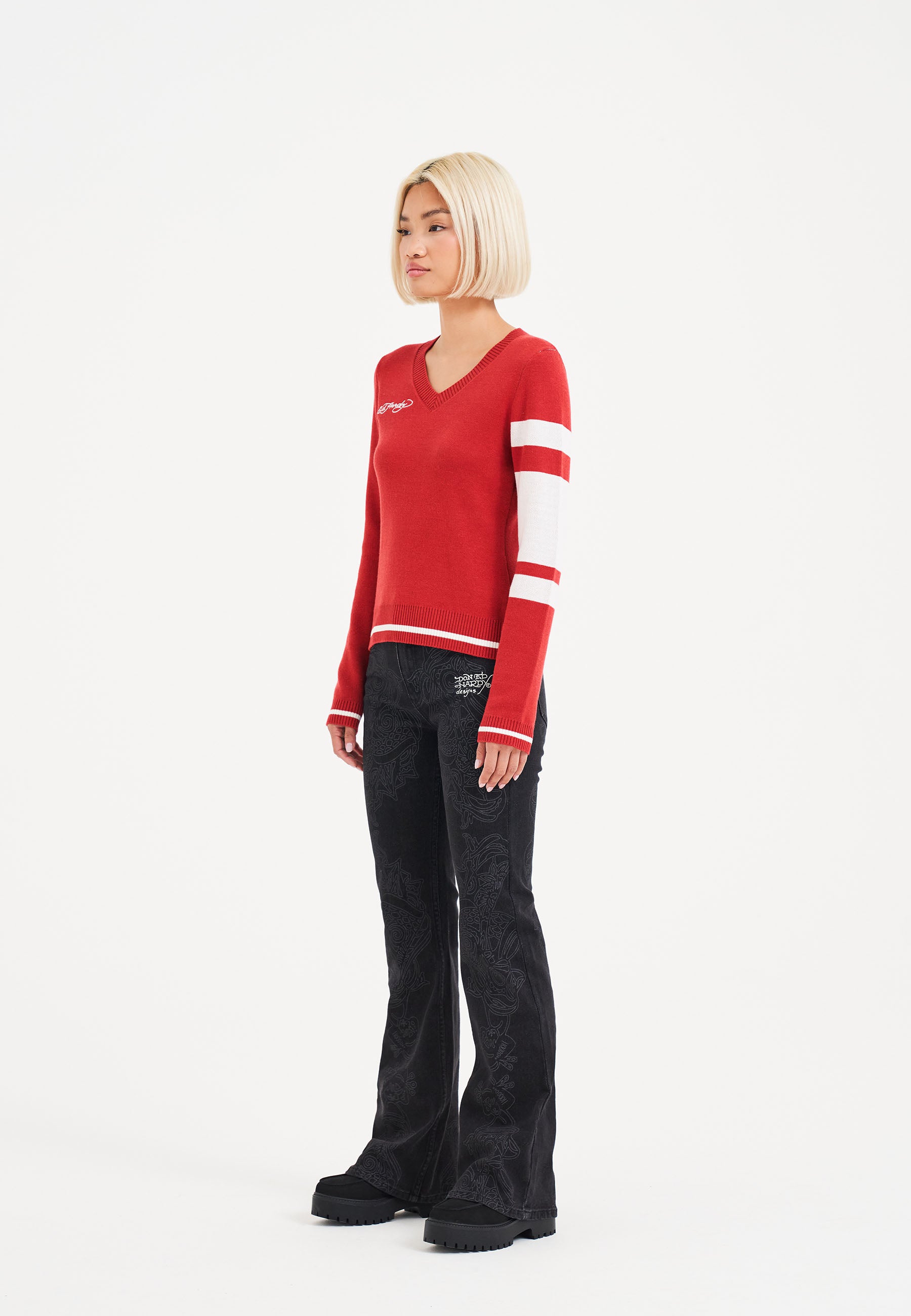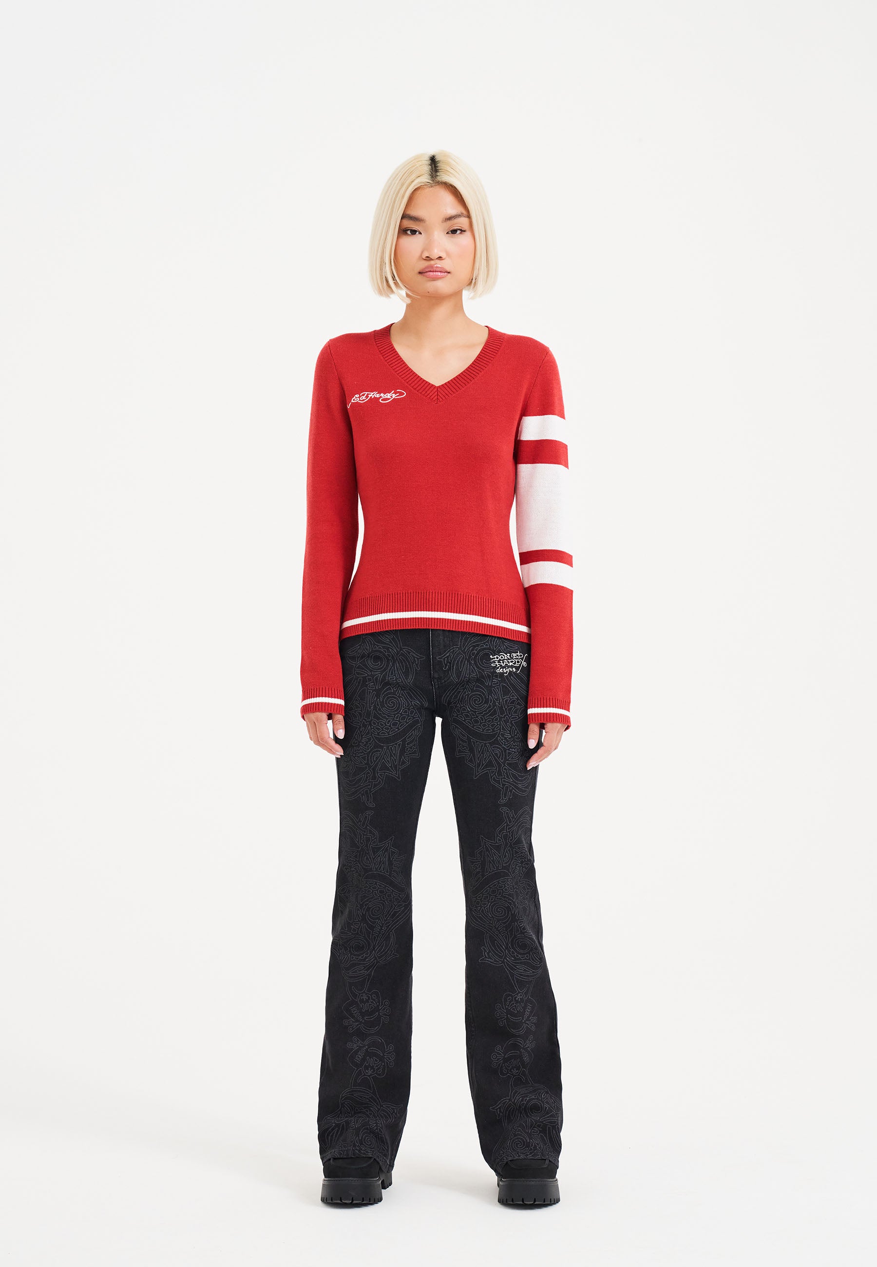 This AW V-Neck Love Kills Jumper features the legendary emblem in a new, sleek, tight-fit silhouette and contrast detailing to the hem and cuffs.