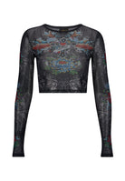 Womens Koi Paradise Mesh Long sleeve T-Shirt - Black