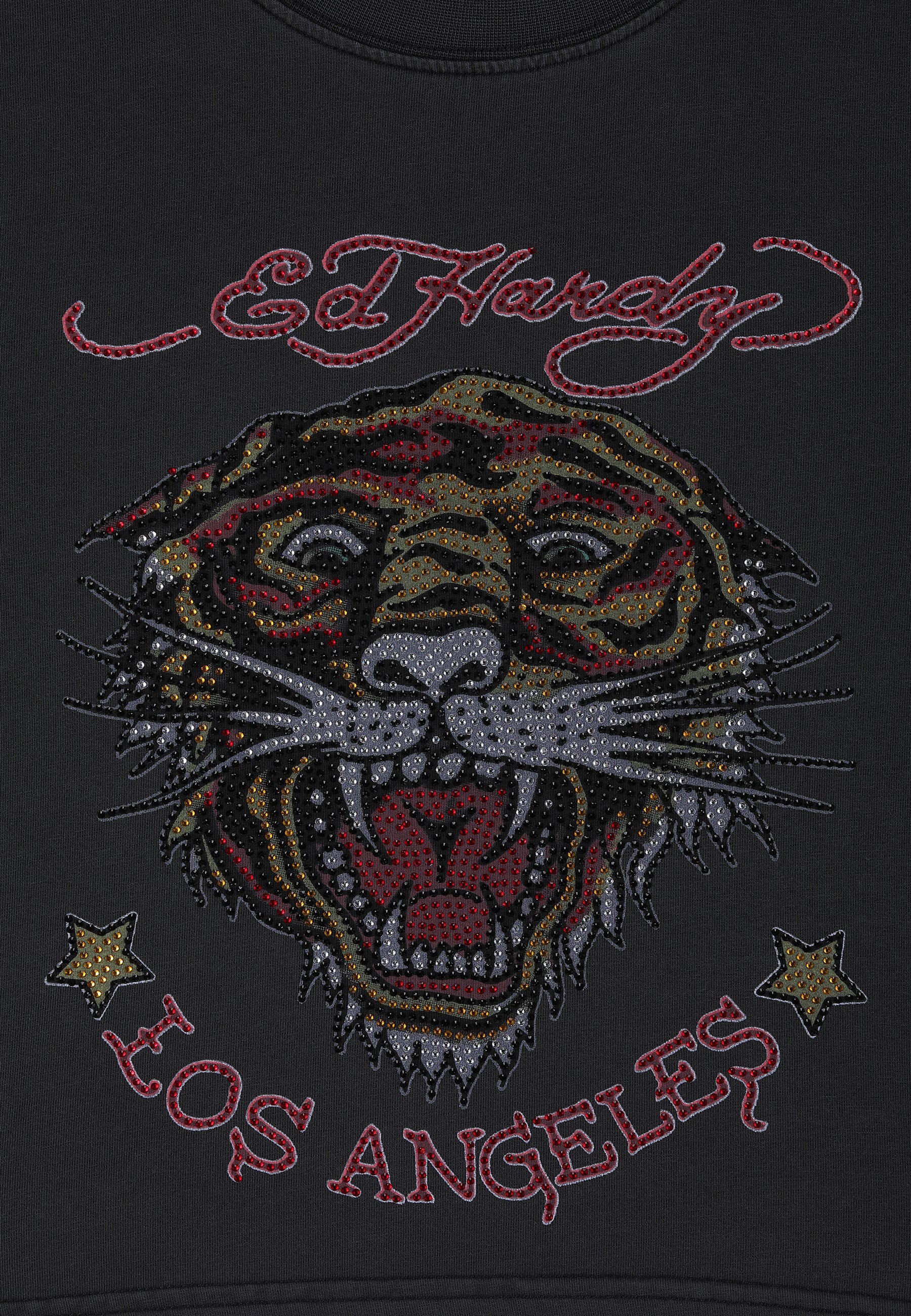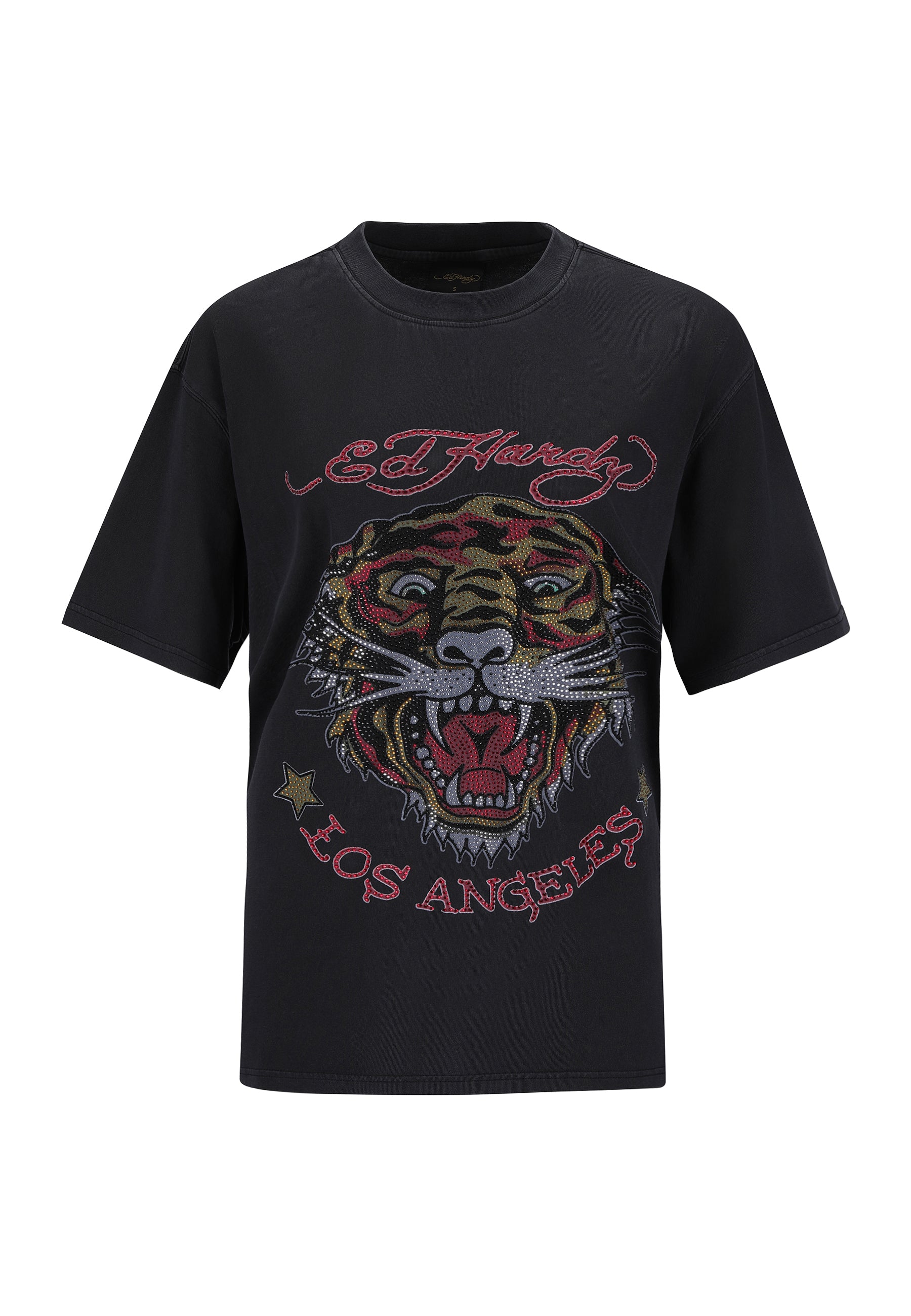 Featuring a full-colour diamante graphic against a washed-black cotton, Ed says 'be bold' this season.