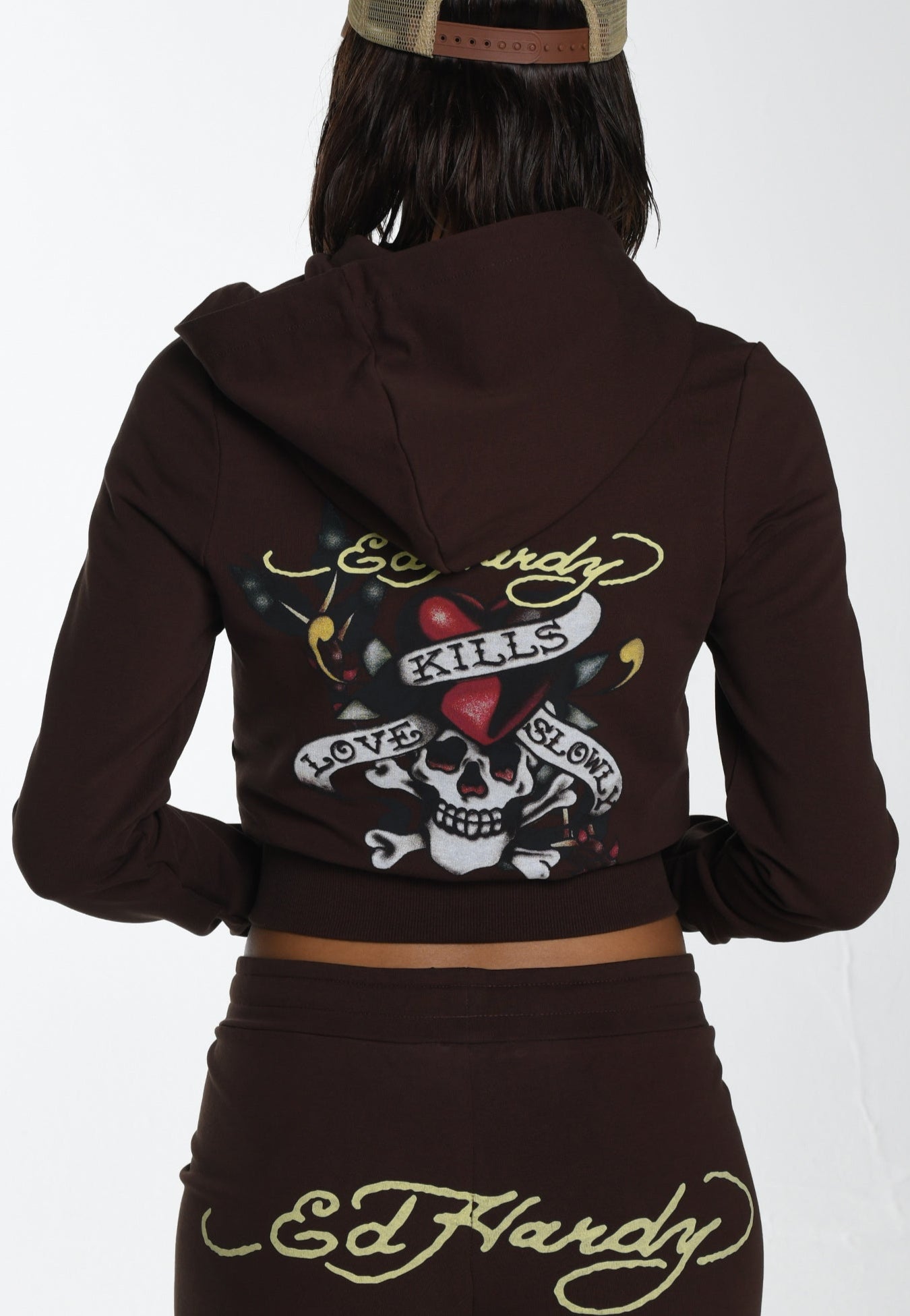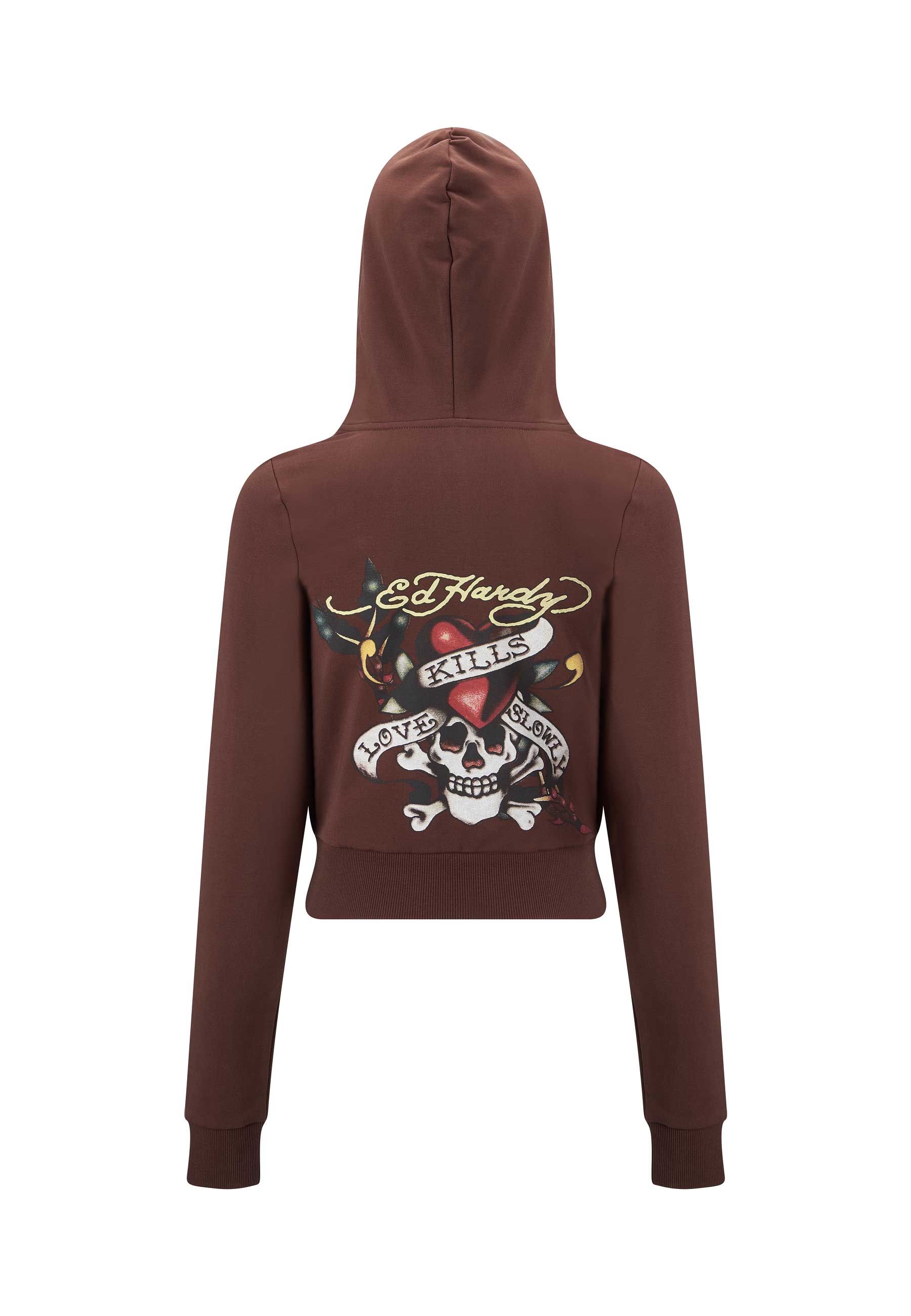 Womens Lks Graphic Cropped Zip Thru Hoodie - Brown