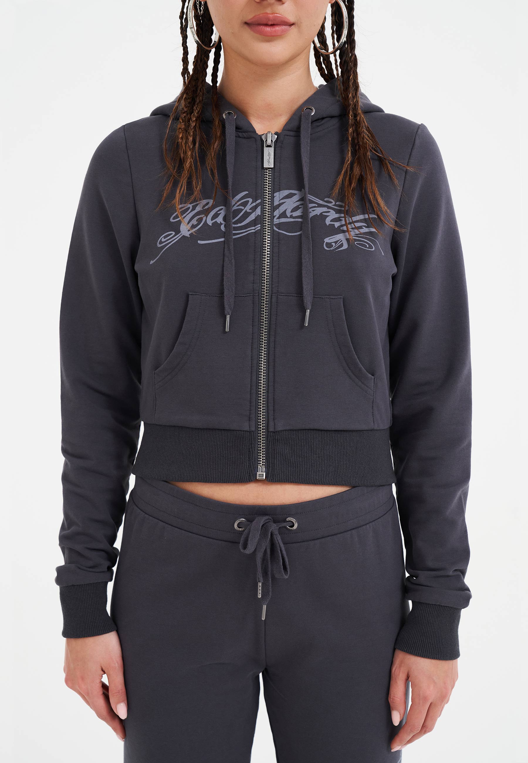 Womens Love Is Mystery Cropped Hoodie - Charcoal