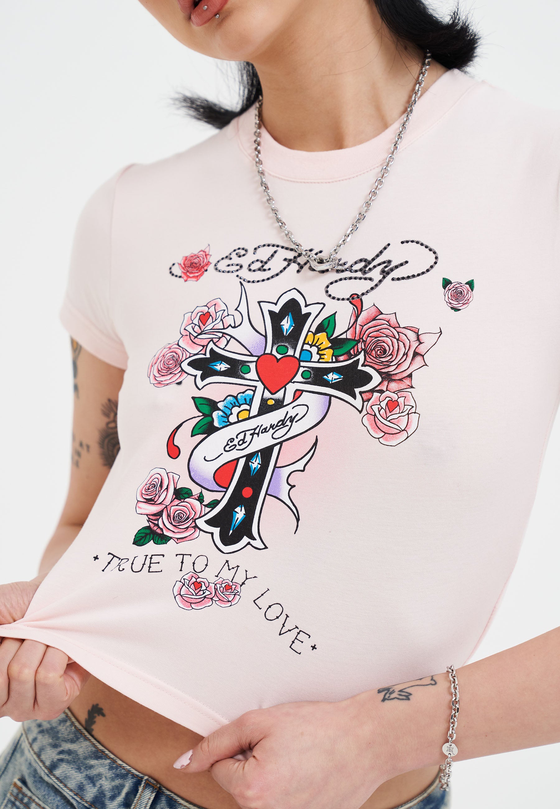- DIAMANTE ENCRUSTED CLASSIC ED HARDY LOGO TO FRONT