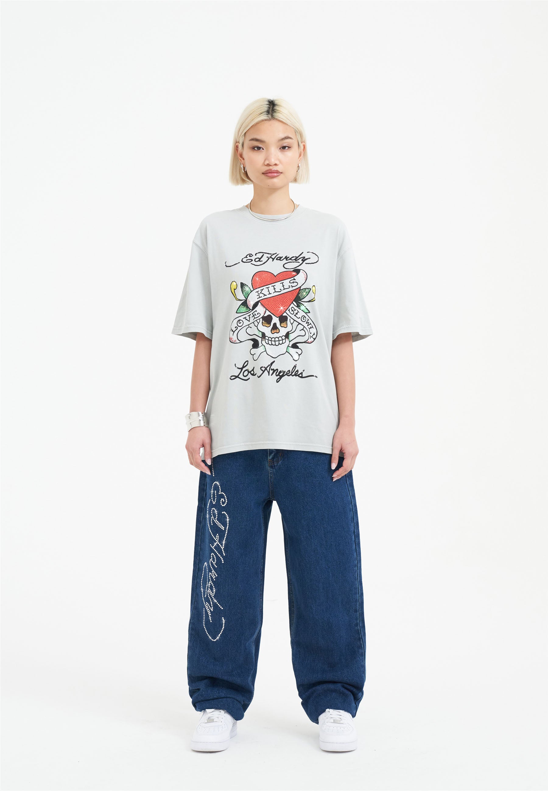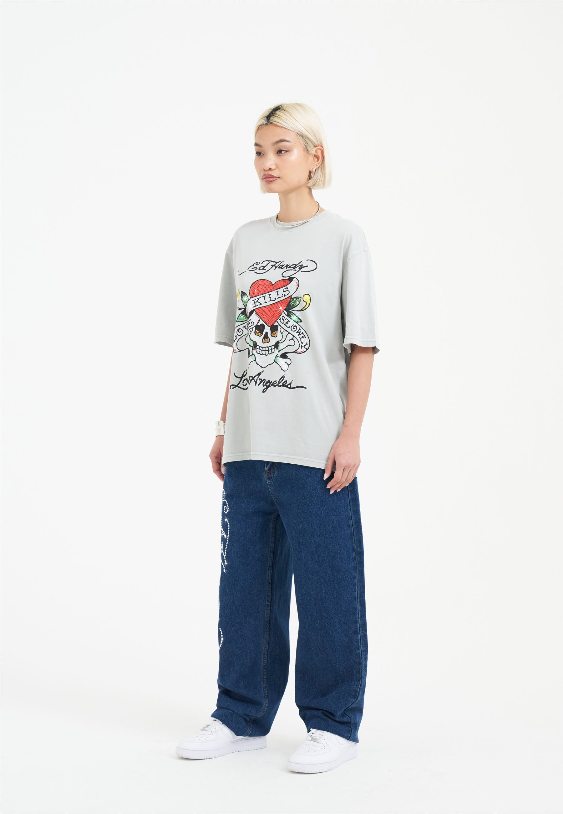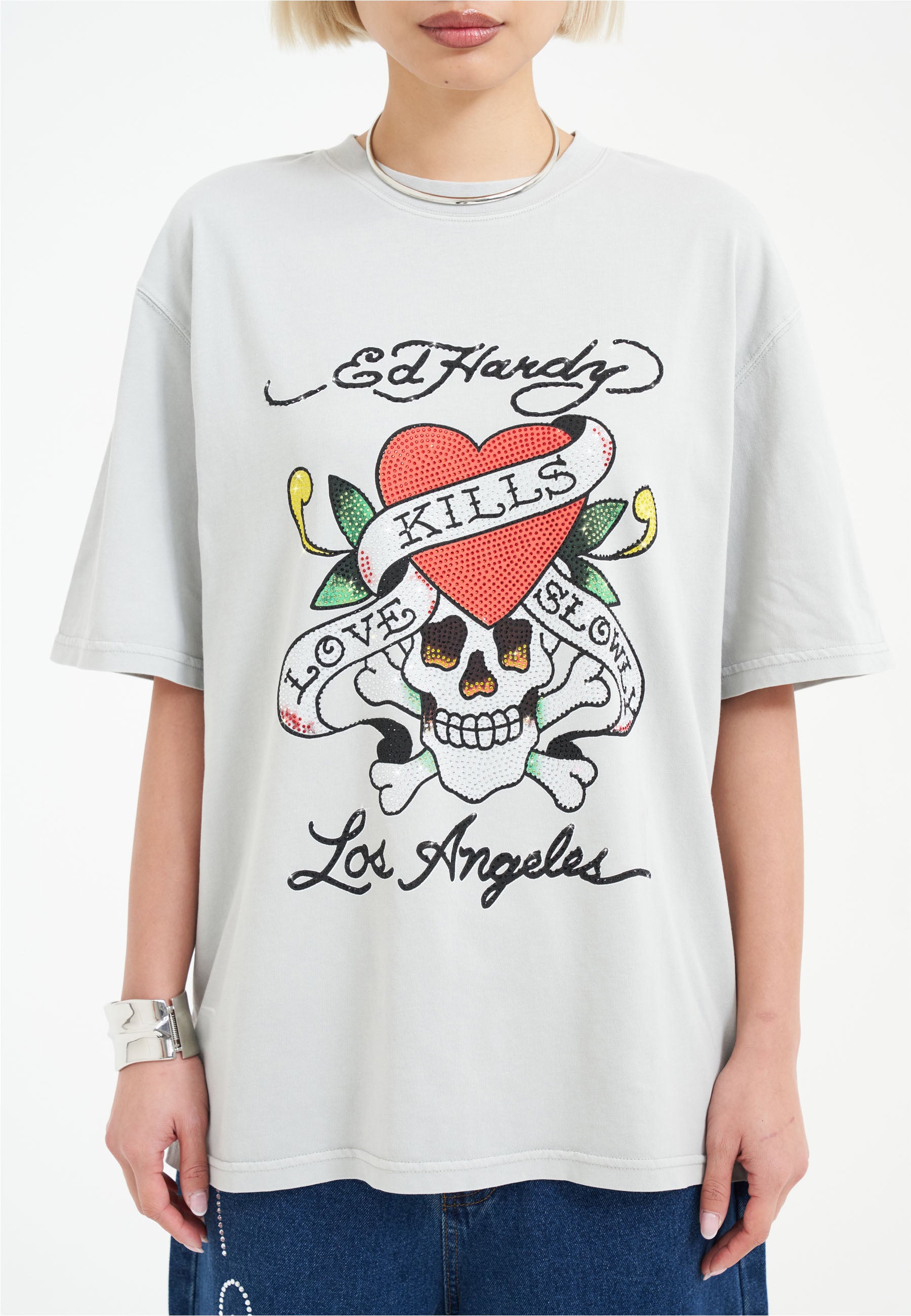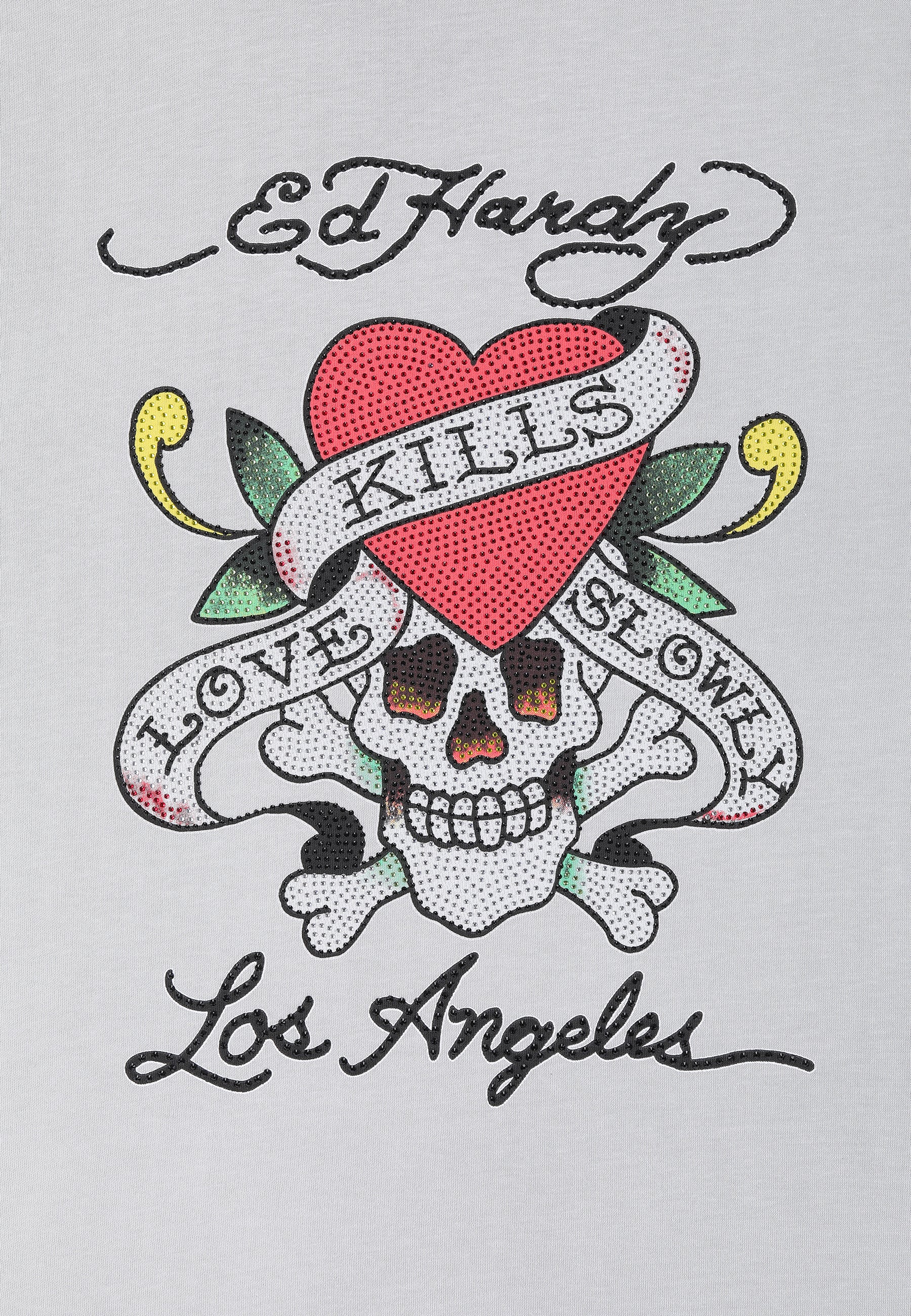 Disrupt and rebel in the Love Kills Slowly Diamante T-Shirt. Featuring full-colour diamante graphics for a new era of Ed Hardy.
