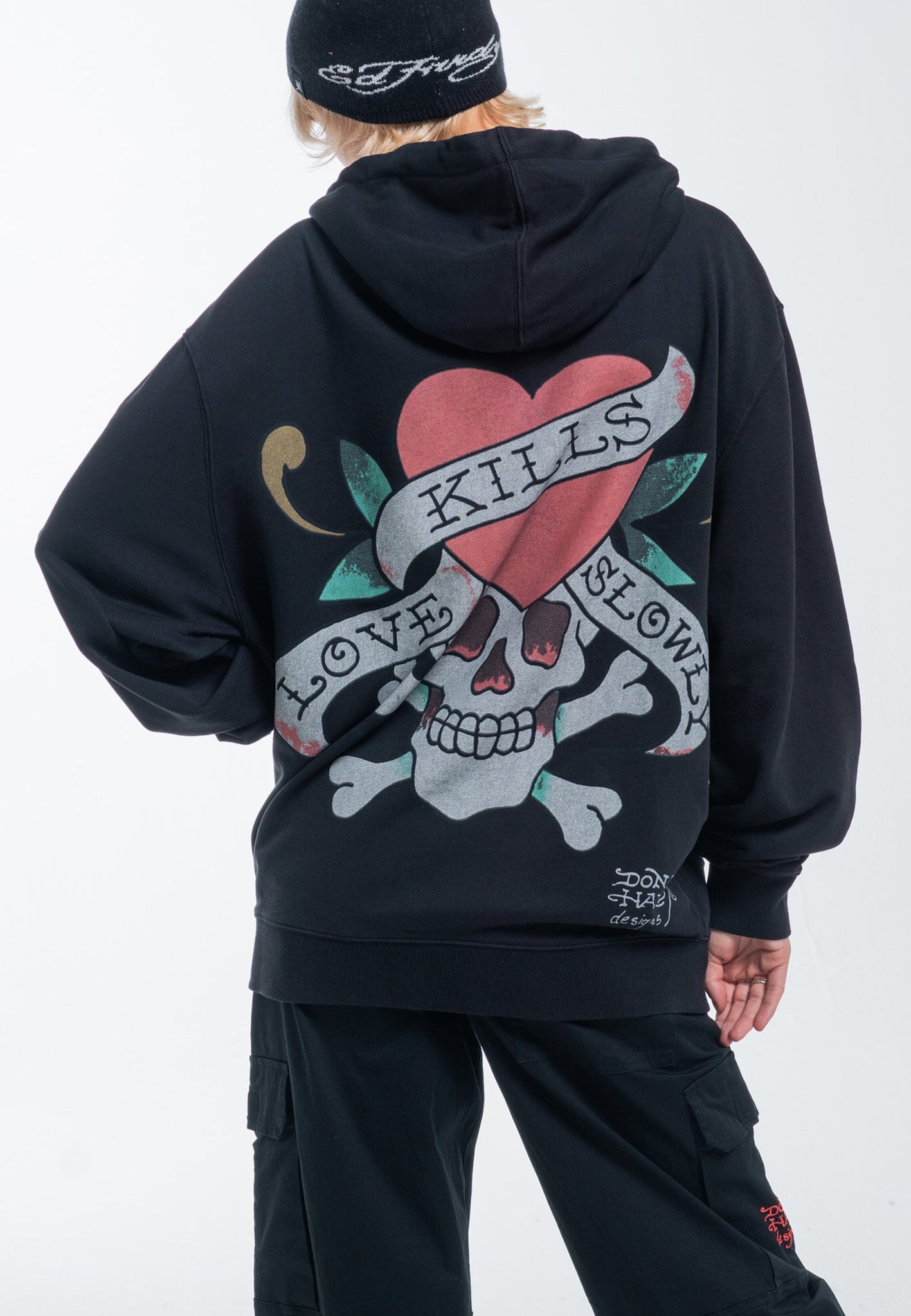 The Love Kills Slowly emblem, an enduring symbol of Ed Hardy, has evolved with fresh interpretations over the years.