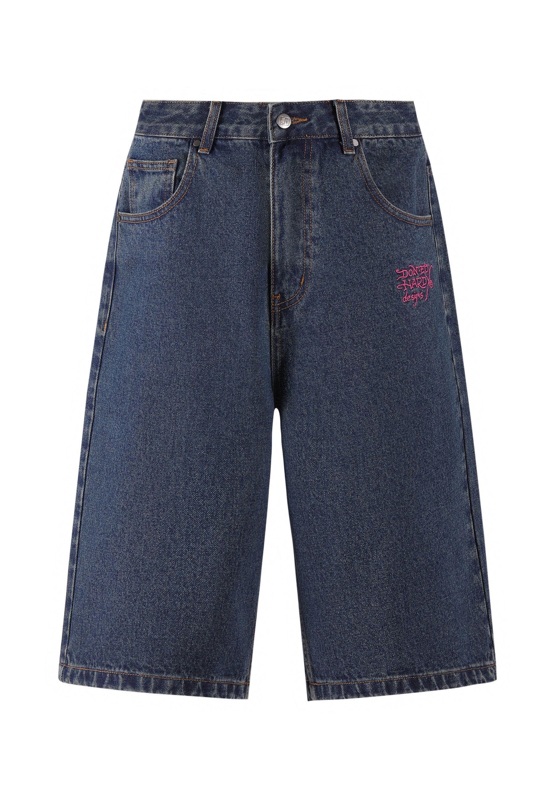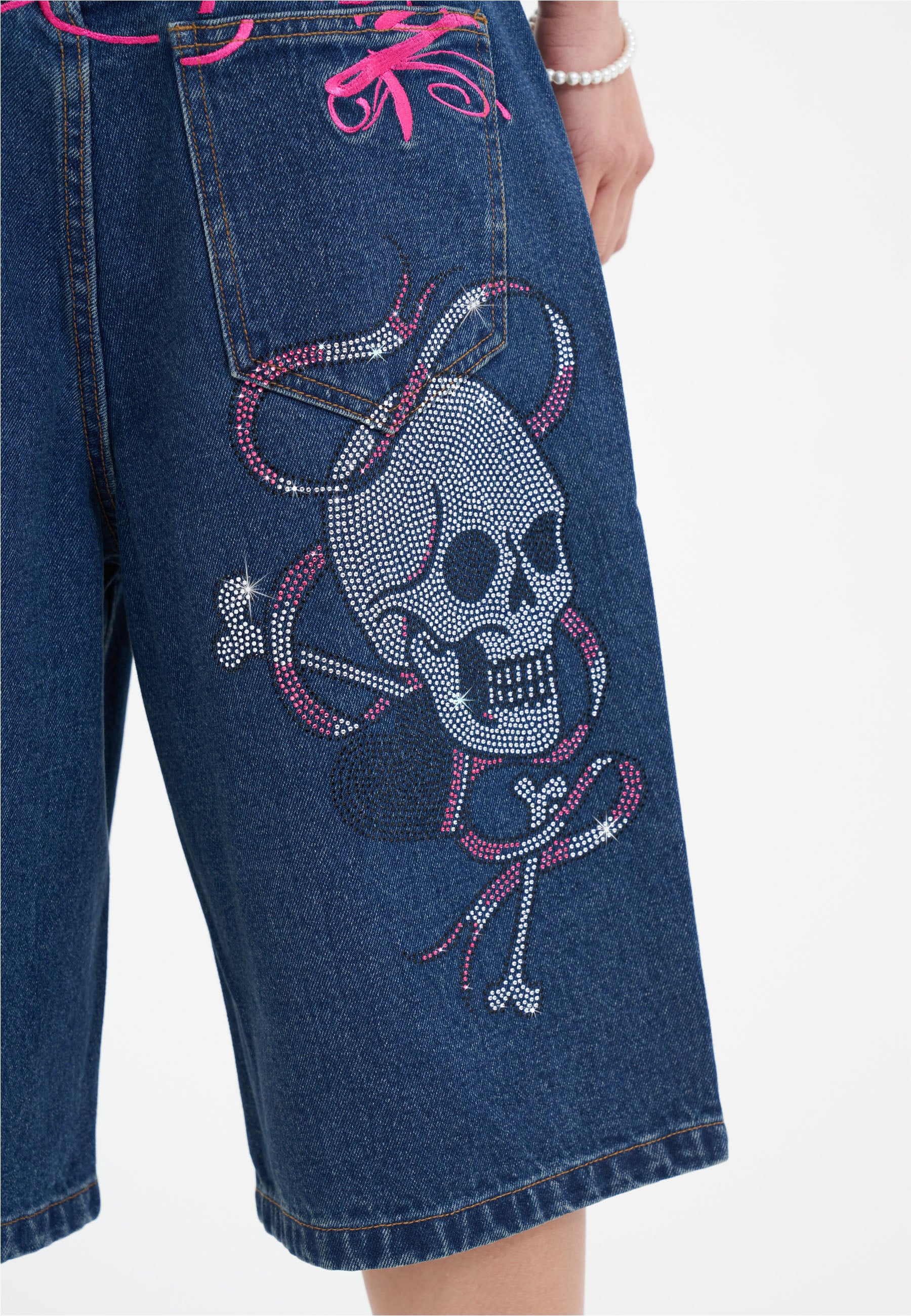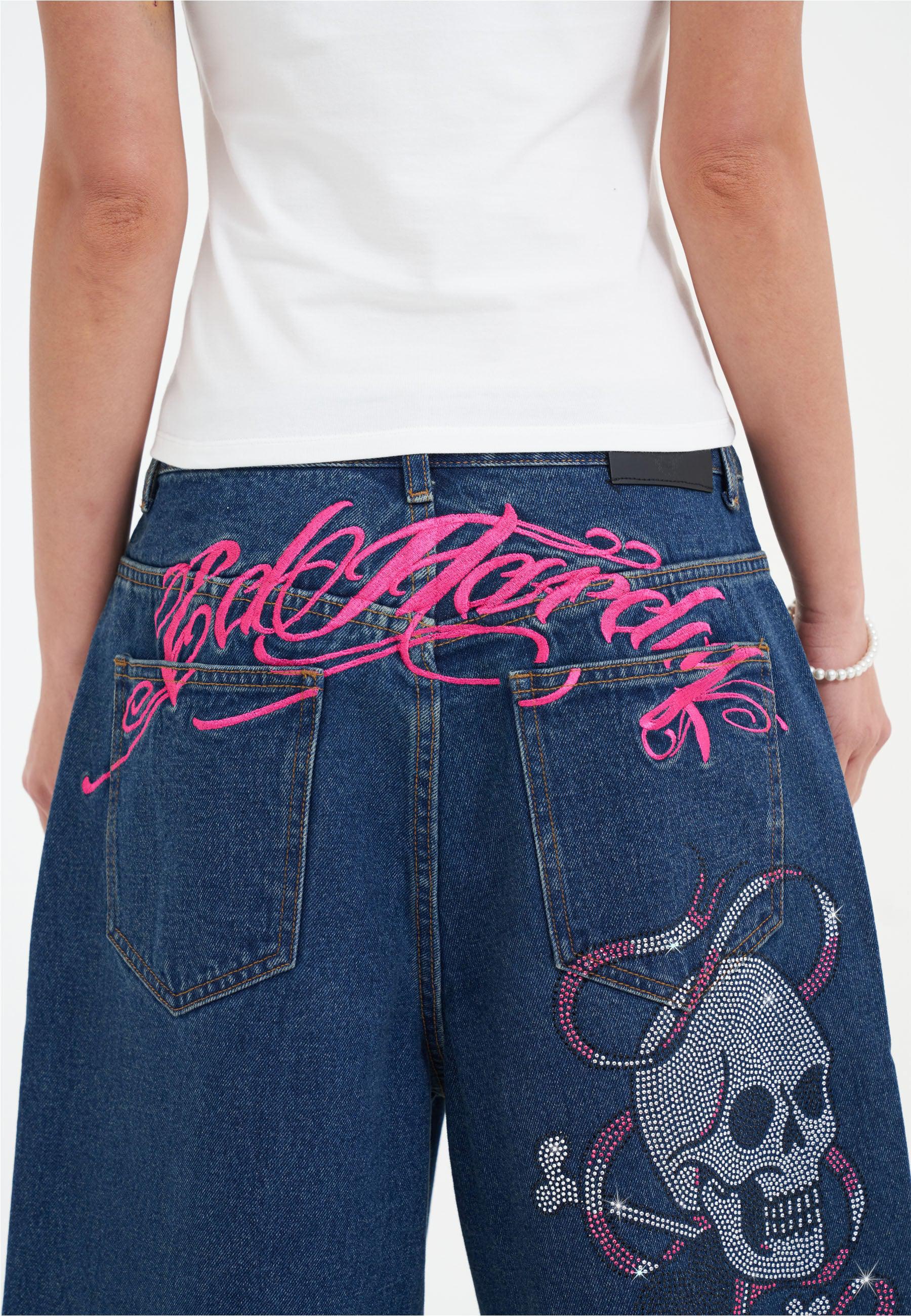 Womens Love Wrapped Diamante Denim Jorts Shorts - Indigo