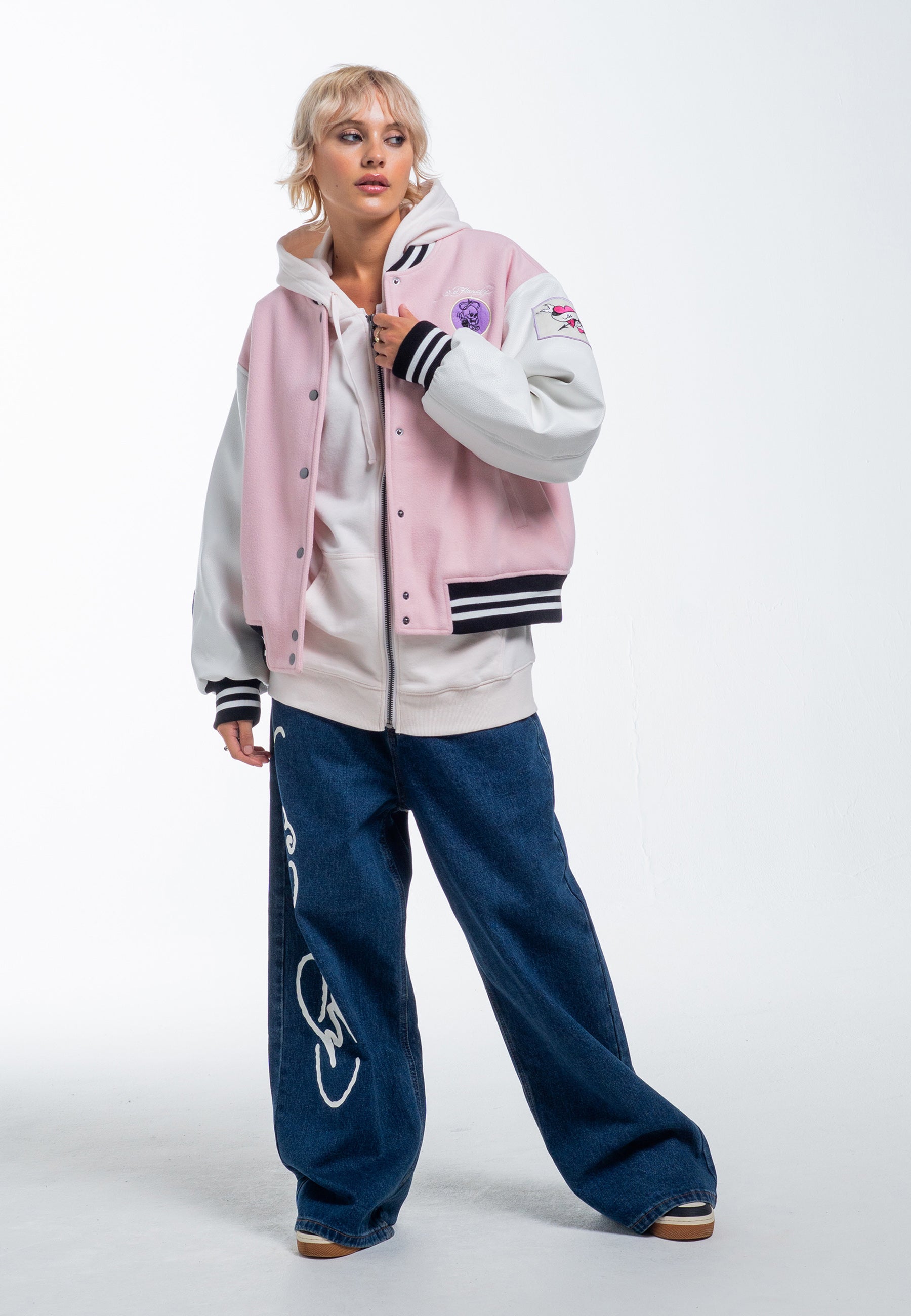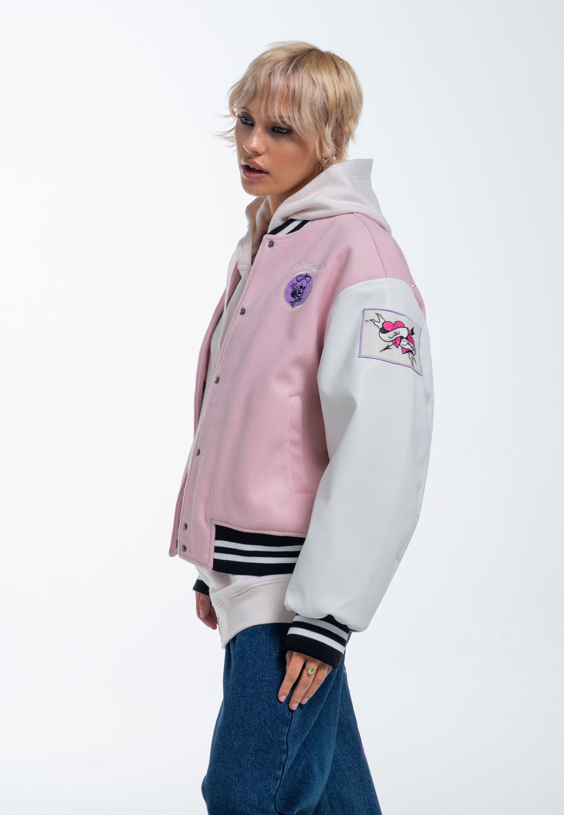 Womens Love Wrapped Varsity Bomber Jacket - Pink