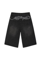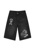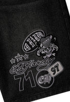 RELAXED FIT WASHED APPLIQUE BADGES TO FRONT EMBROIDERY TO BACK 90% COTTON 10%POLYESTER DENIM