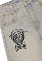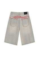 Womens Multi Badge Tattoo Denim Relaxed Jort - Bleach Denim