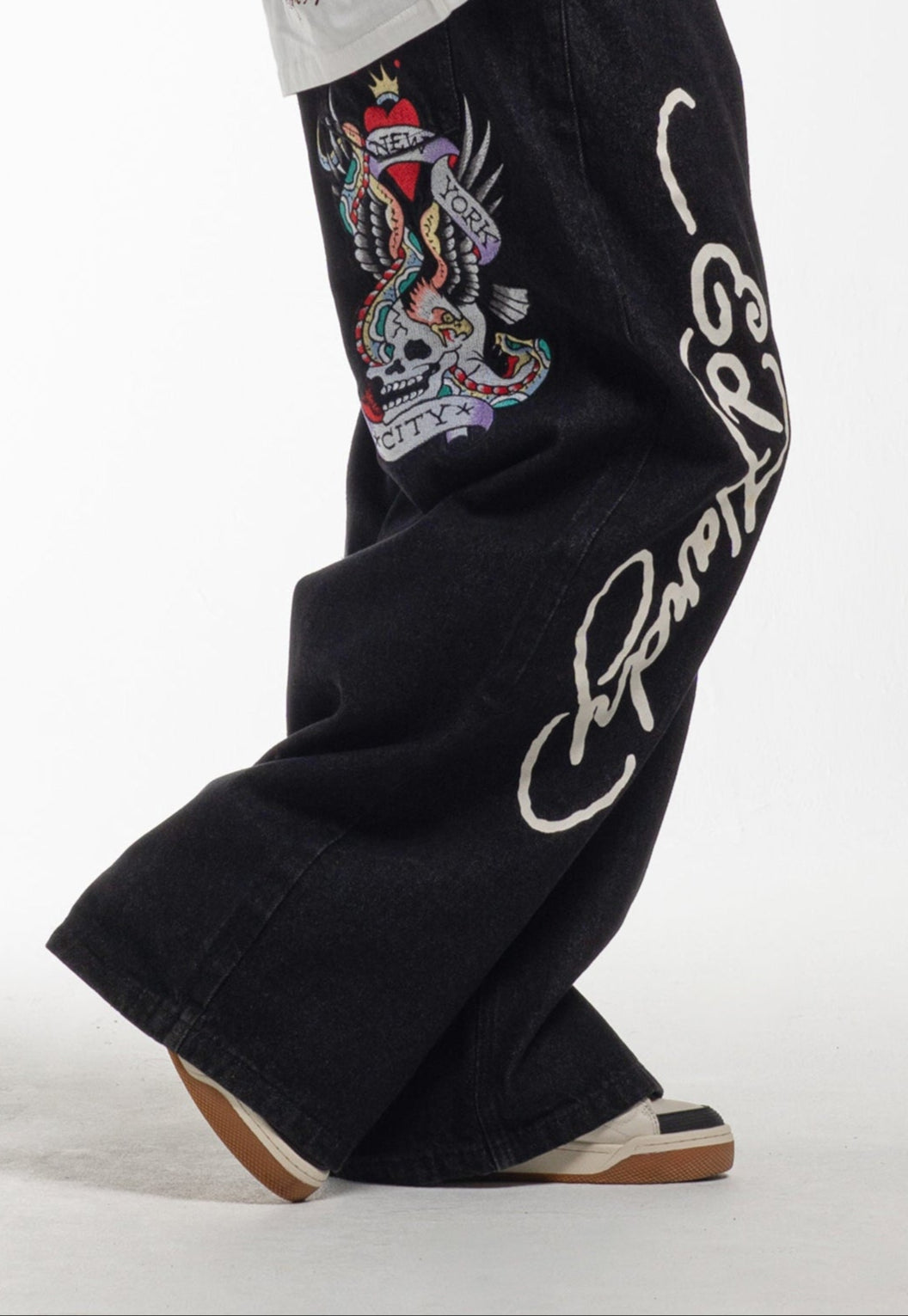 Womens Ny City Xtra Oversized Denim Trousers Jeans - Black