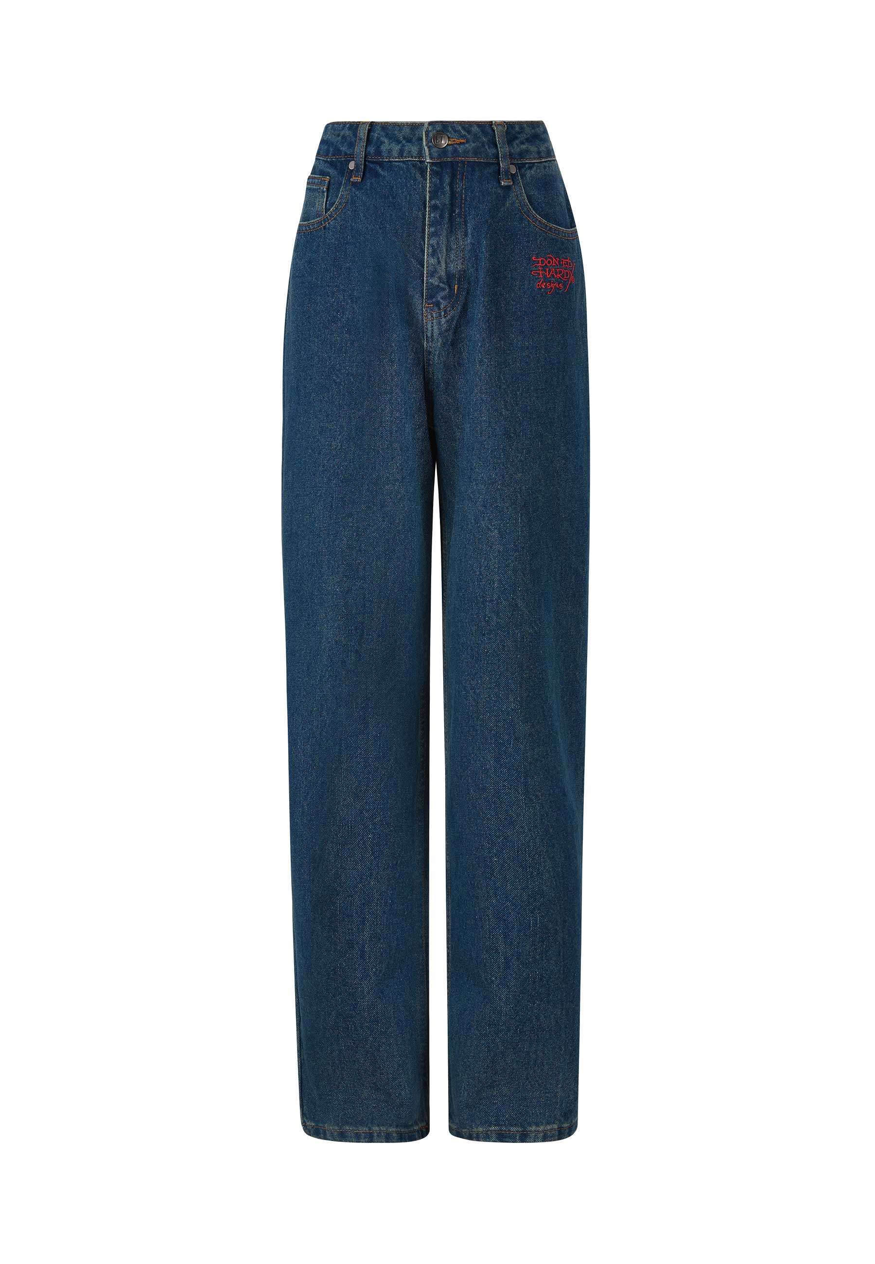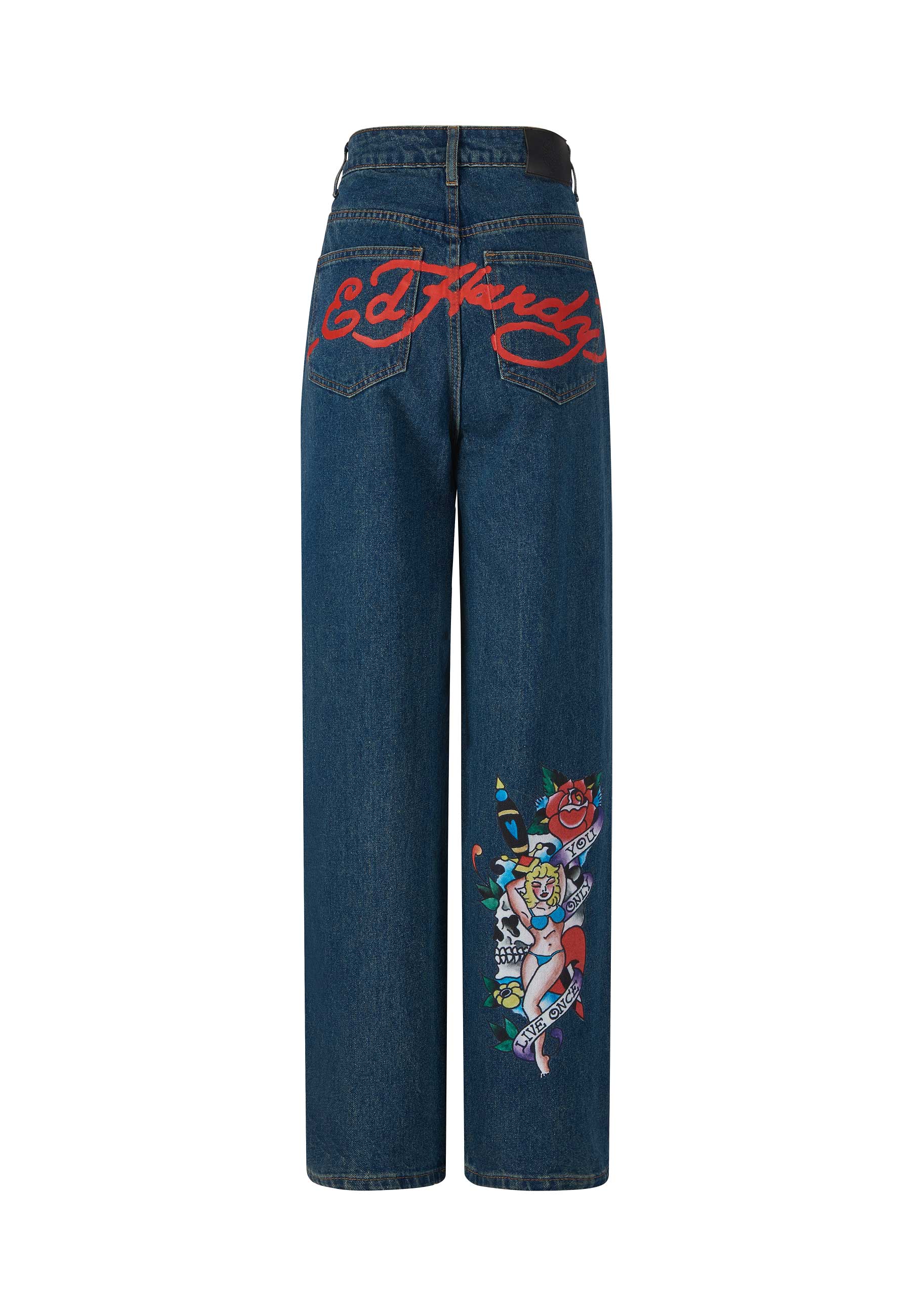 Womens Only Live Once Relaxed Denim Trousers Jeans - Indigo