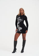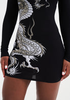 WOMENS RED DRAGON HOODIE DRESS in Black