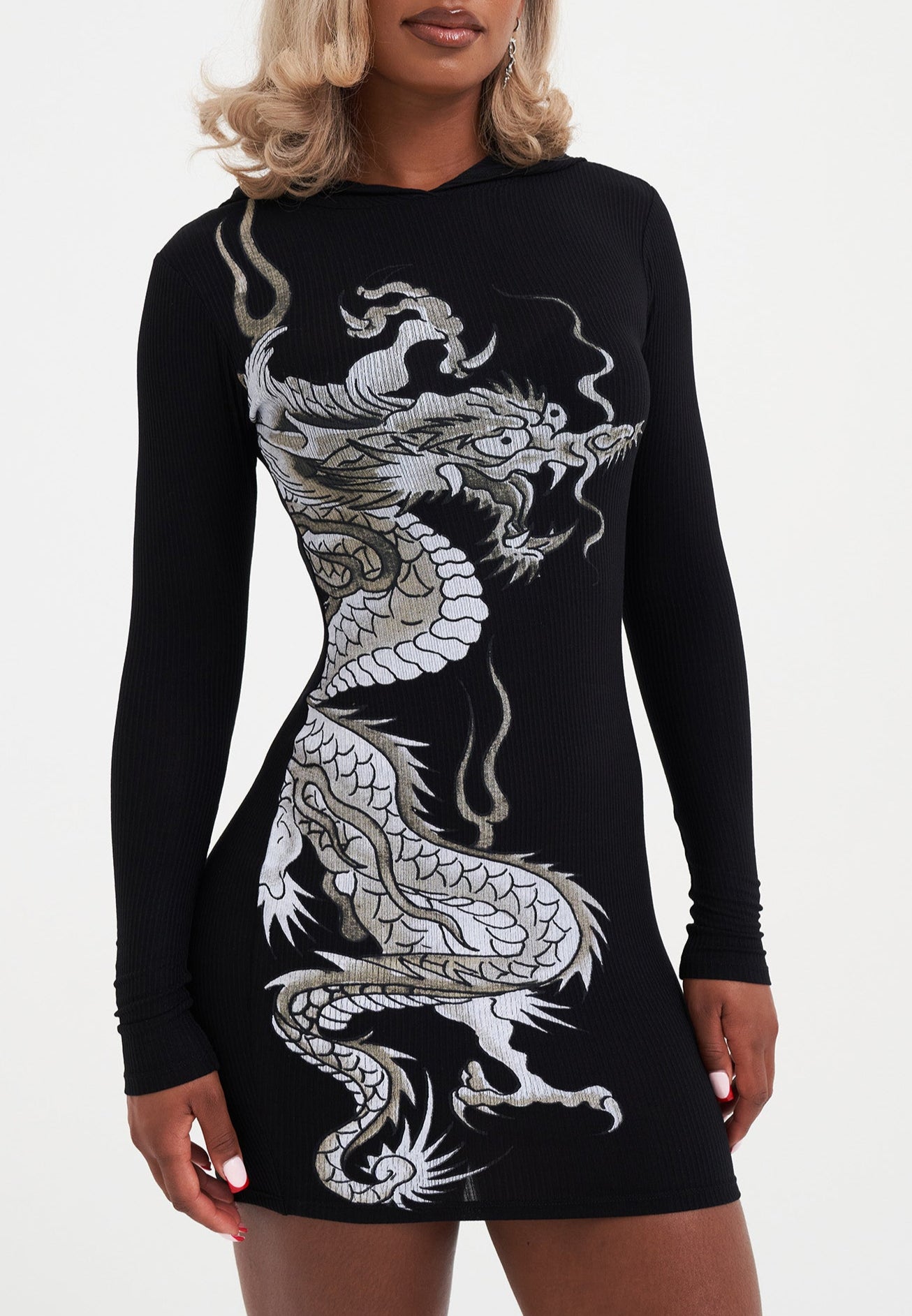 Womens Red Dragon Hoodie Dress - Black