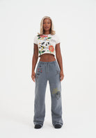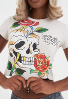 WOMENS SKULL CLIMBING ROSE BABY T-SHIRT in Ecru