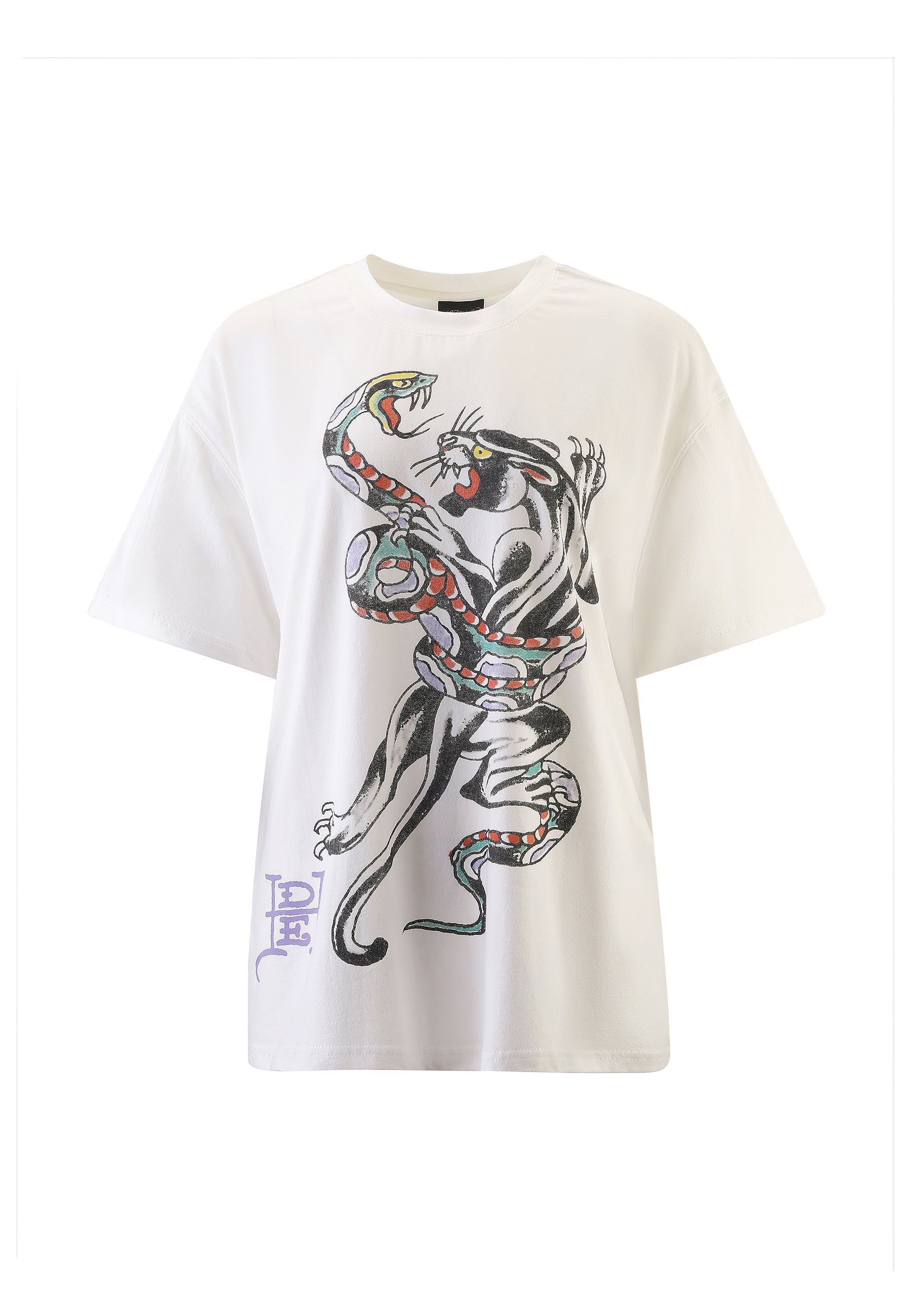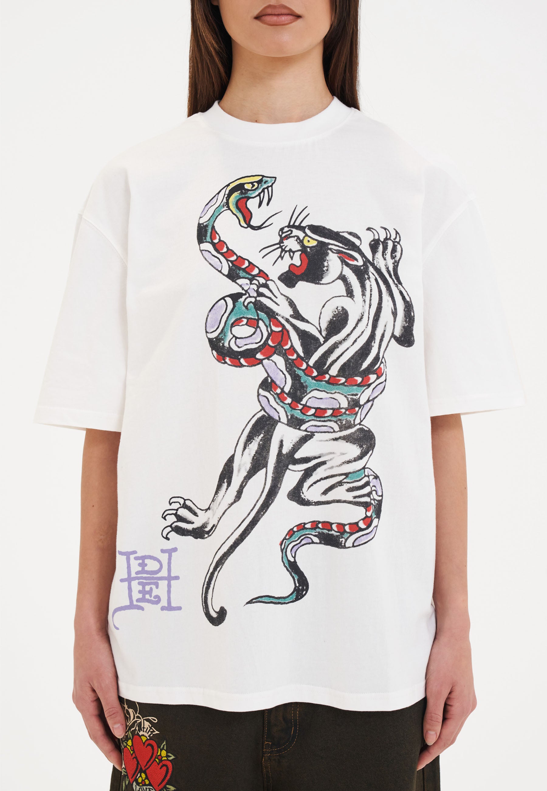 Channel the essence of punk with The Snake & Panther Battle T-Shirt—a nod to rebellion and a defining feature of Ed Hardy's distinctive new era.