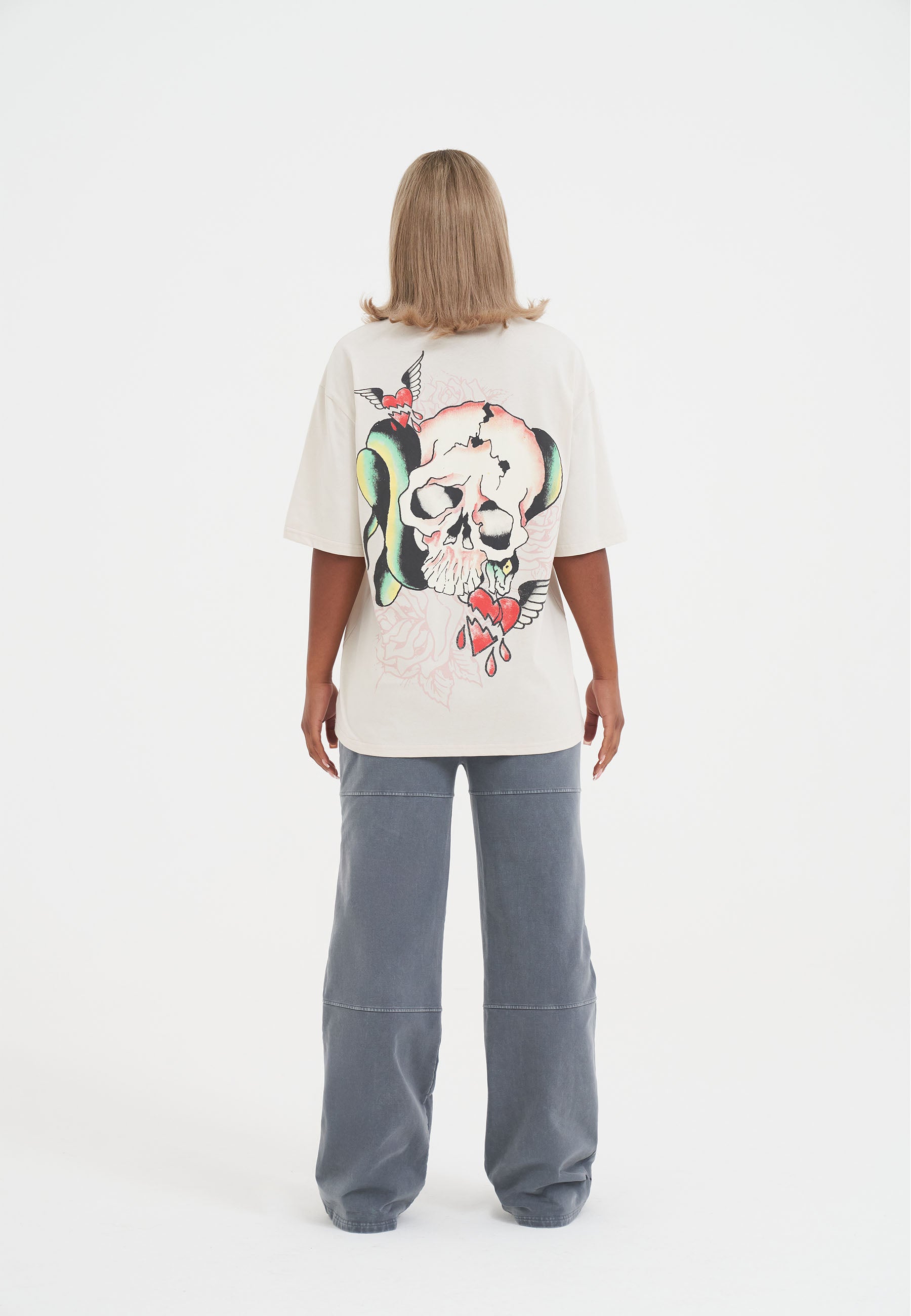 WOMENS SNAKE SKULL BACKPRINT T-SHIRT in Ecru