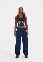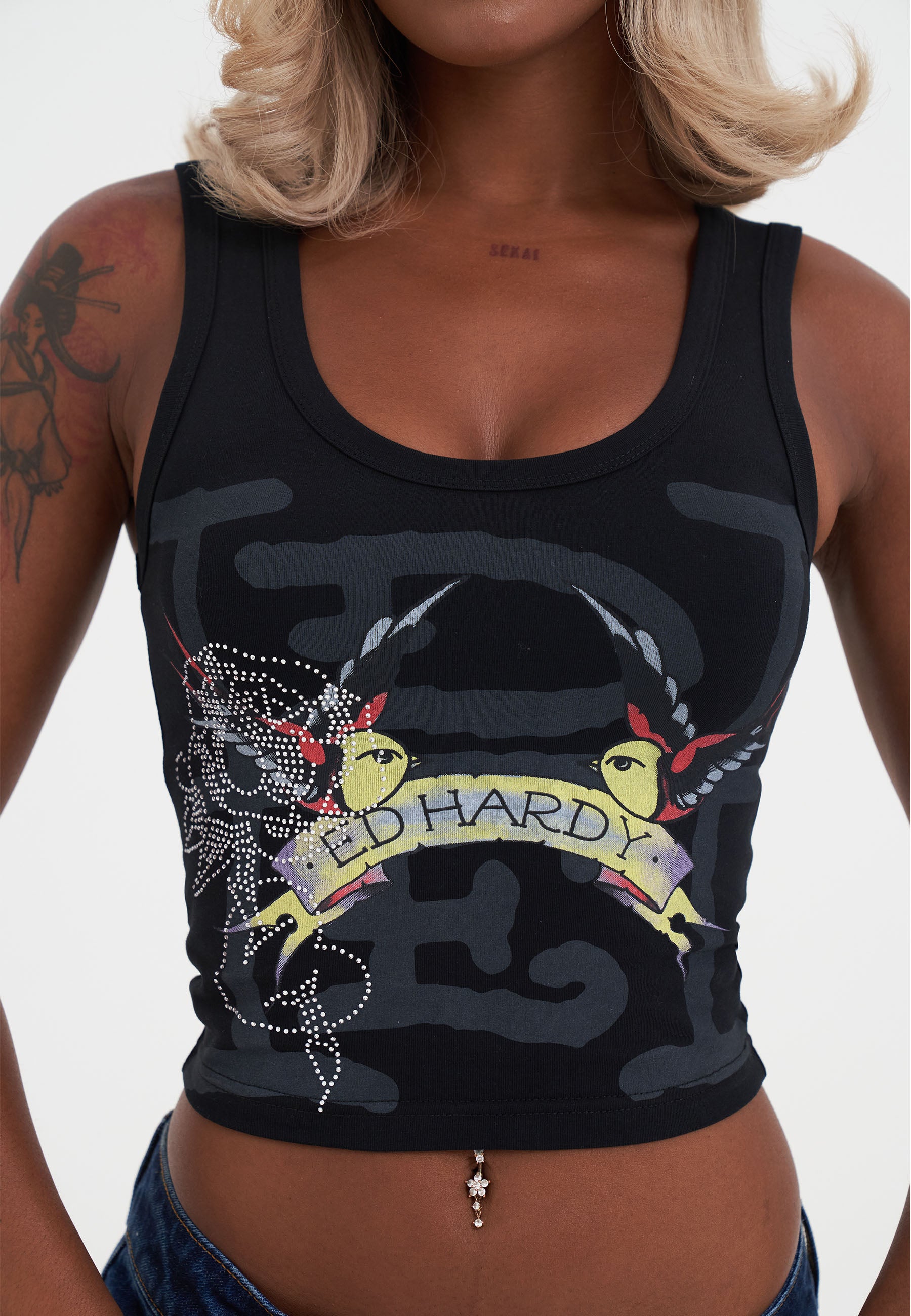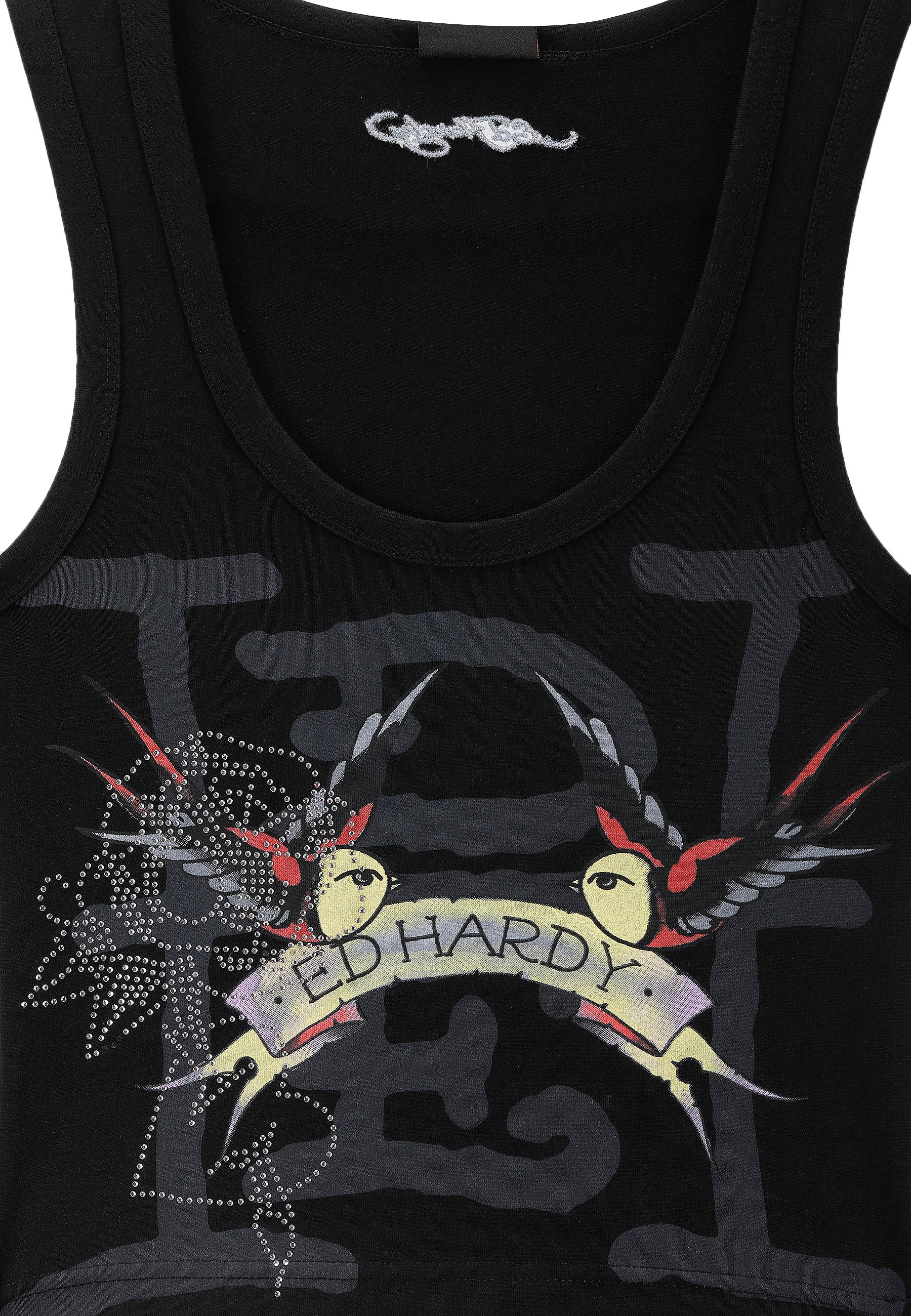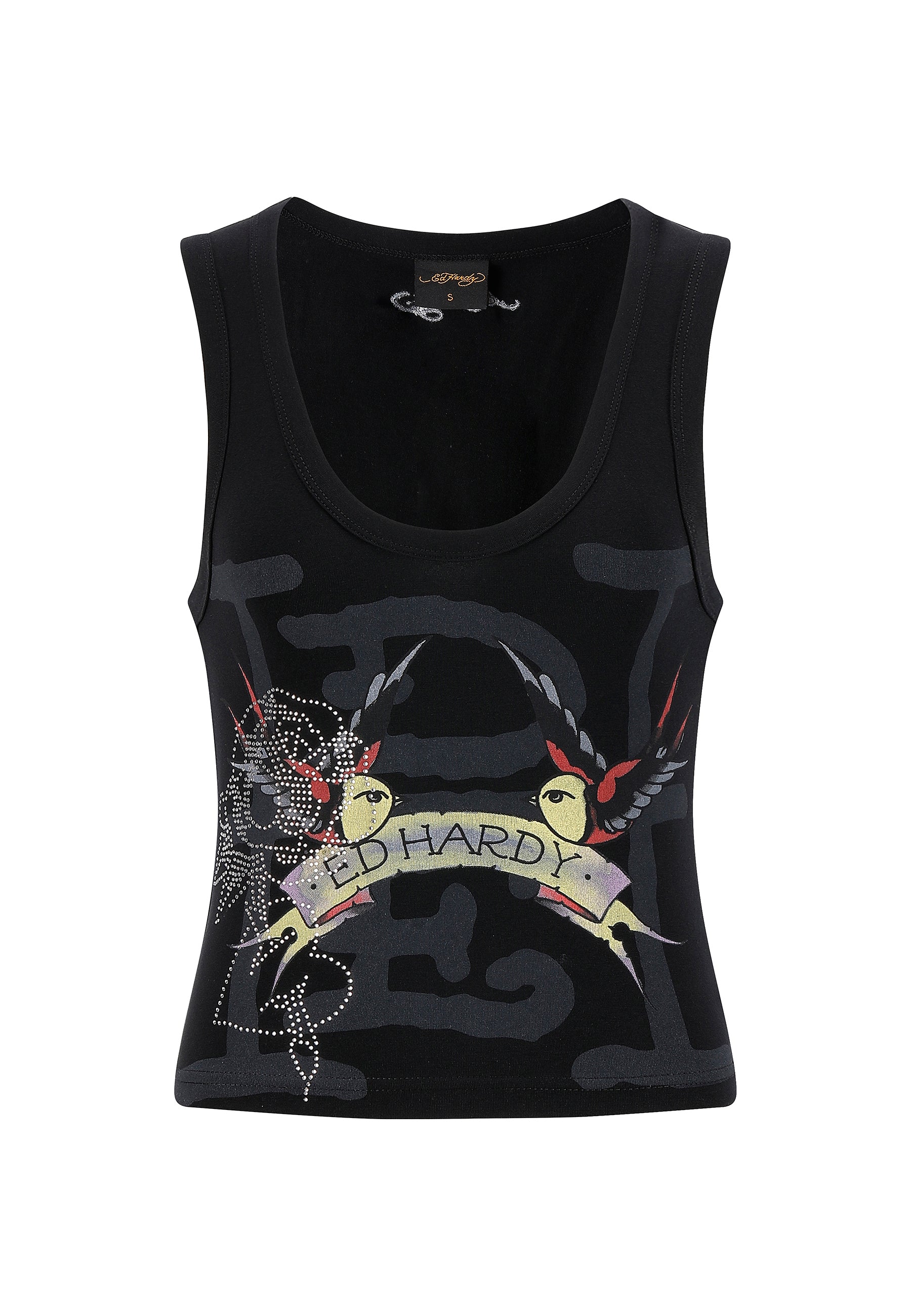 WOMENS SWALLOWS SCROLL DIAMANTE VEST TOP in Black