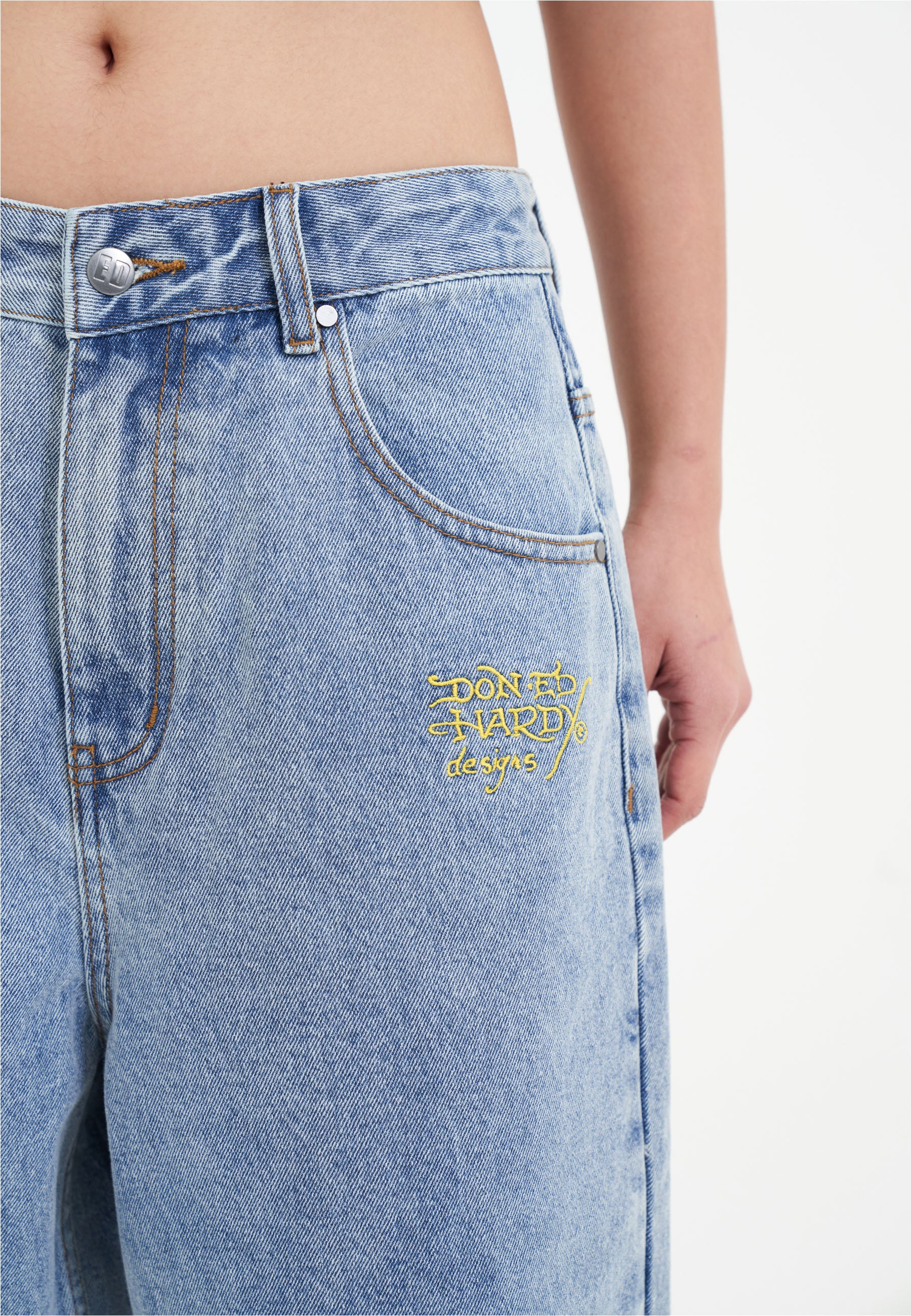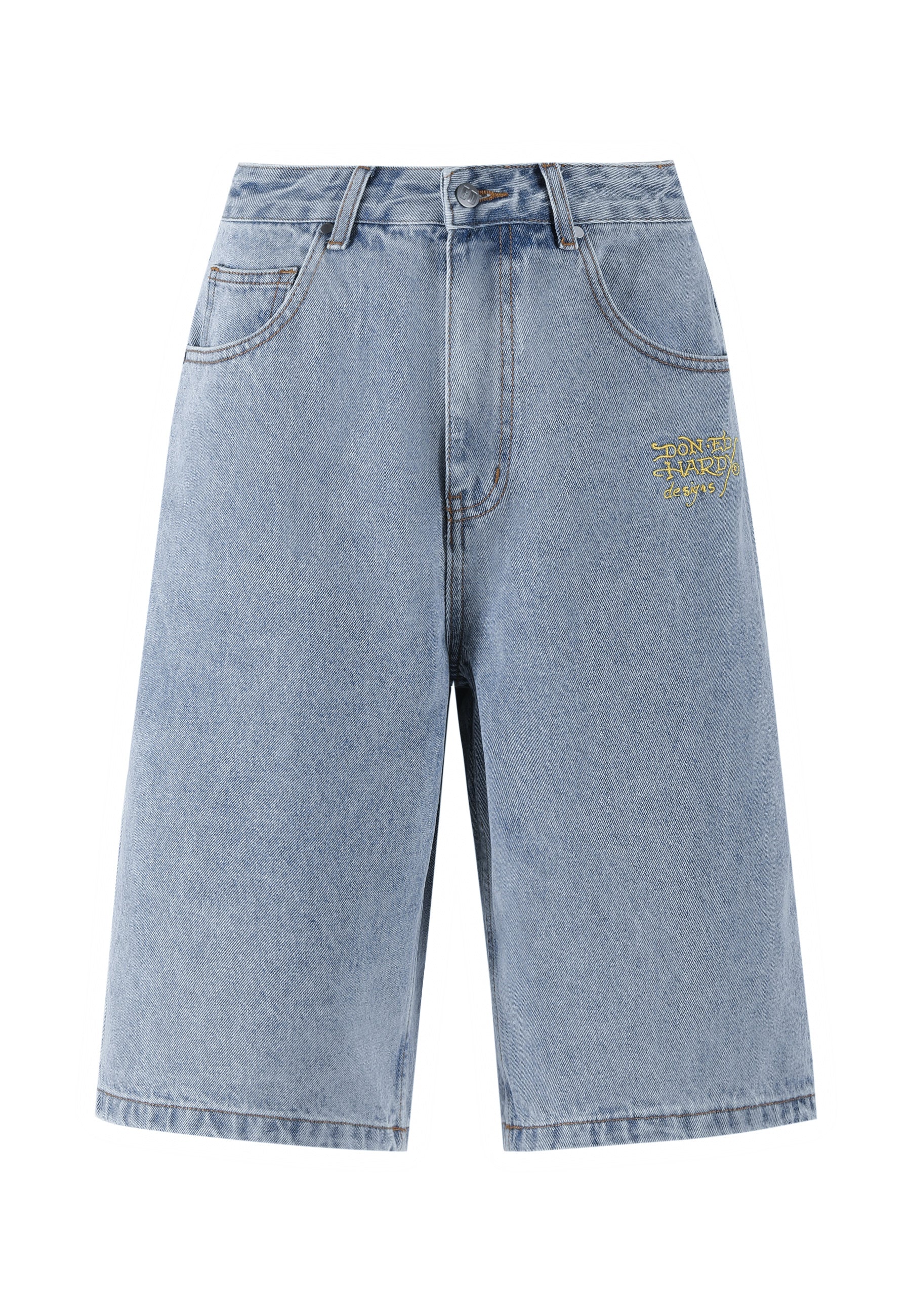 The Tiger King Jorts feature a high-definition wraparound graphic covering the leg from front to back and Ed's iconic signature logo in contrasting embroidery.