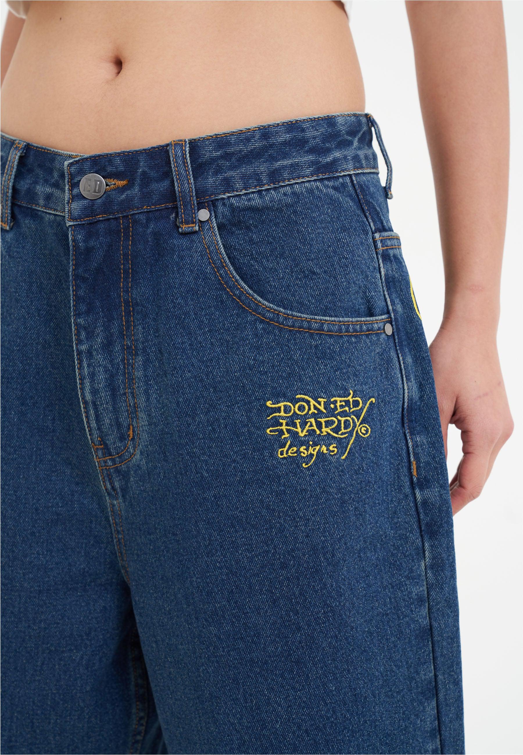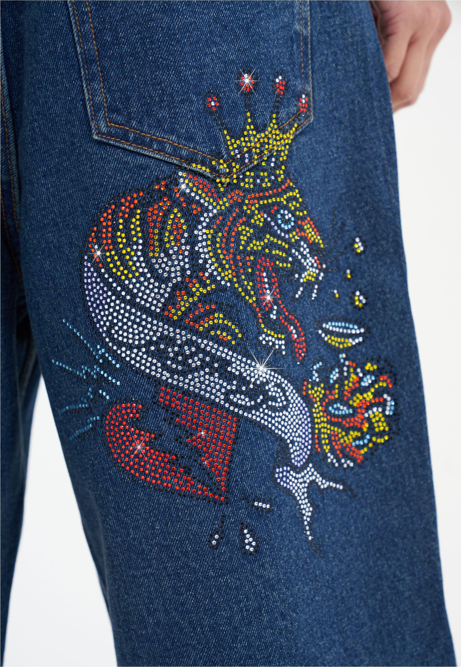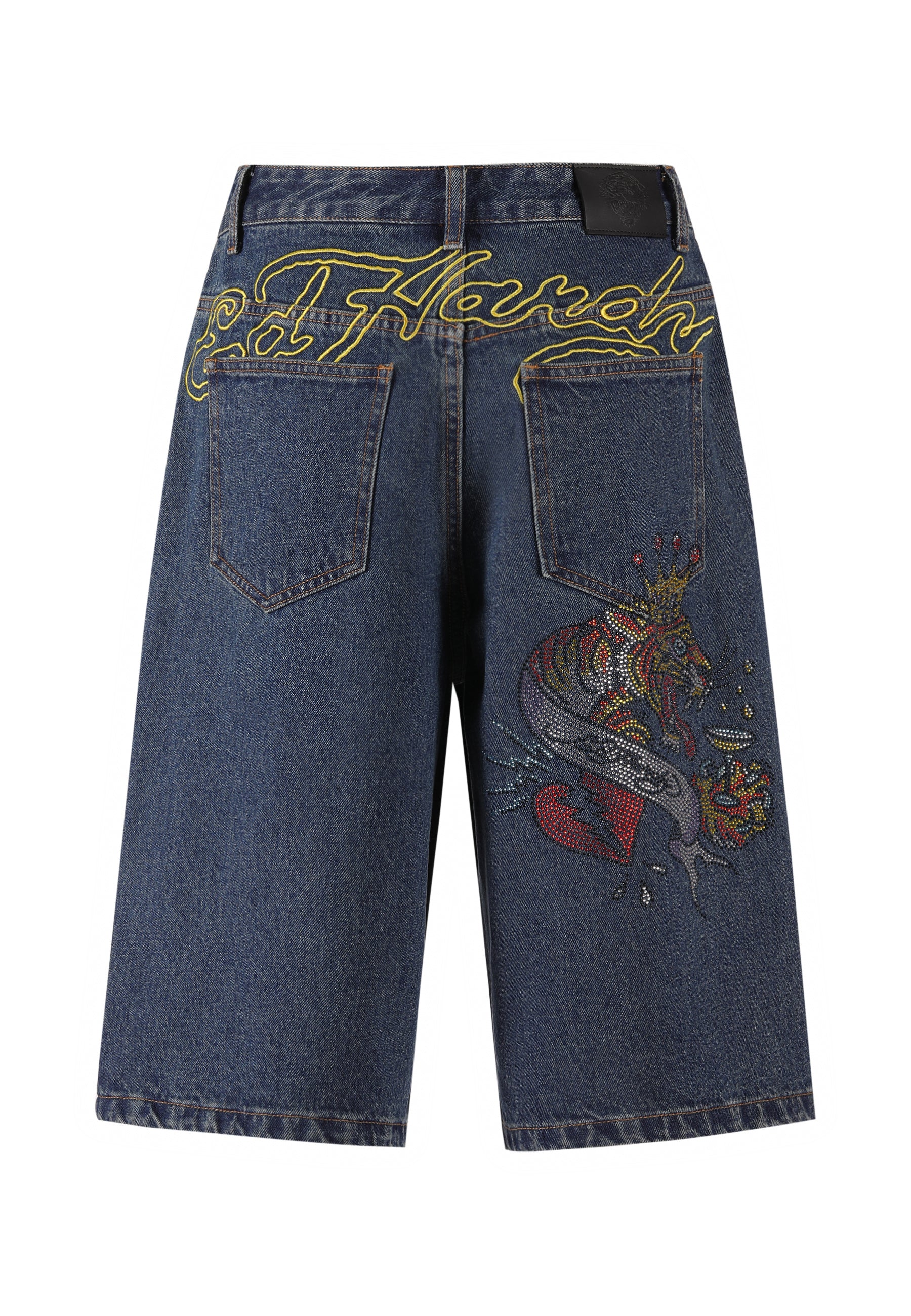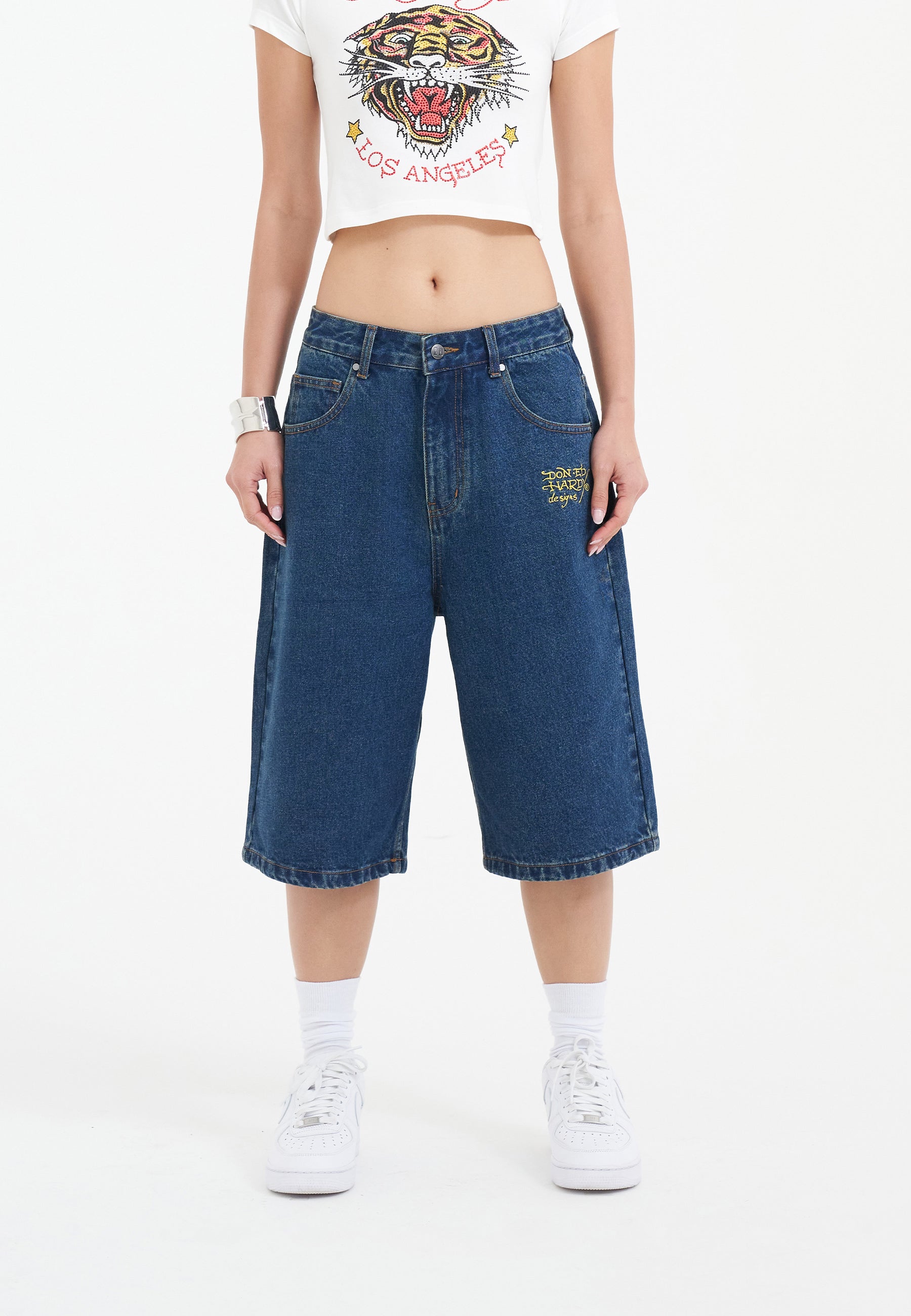 Womens Tiger King Diamante Denim Jorts Shorts - Indigo