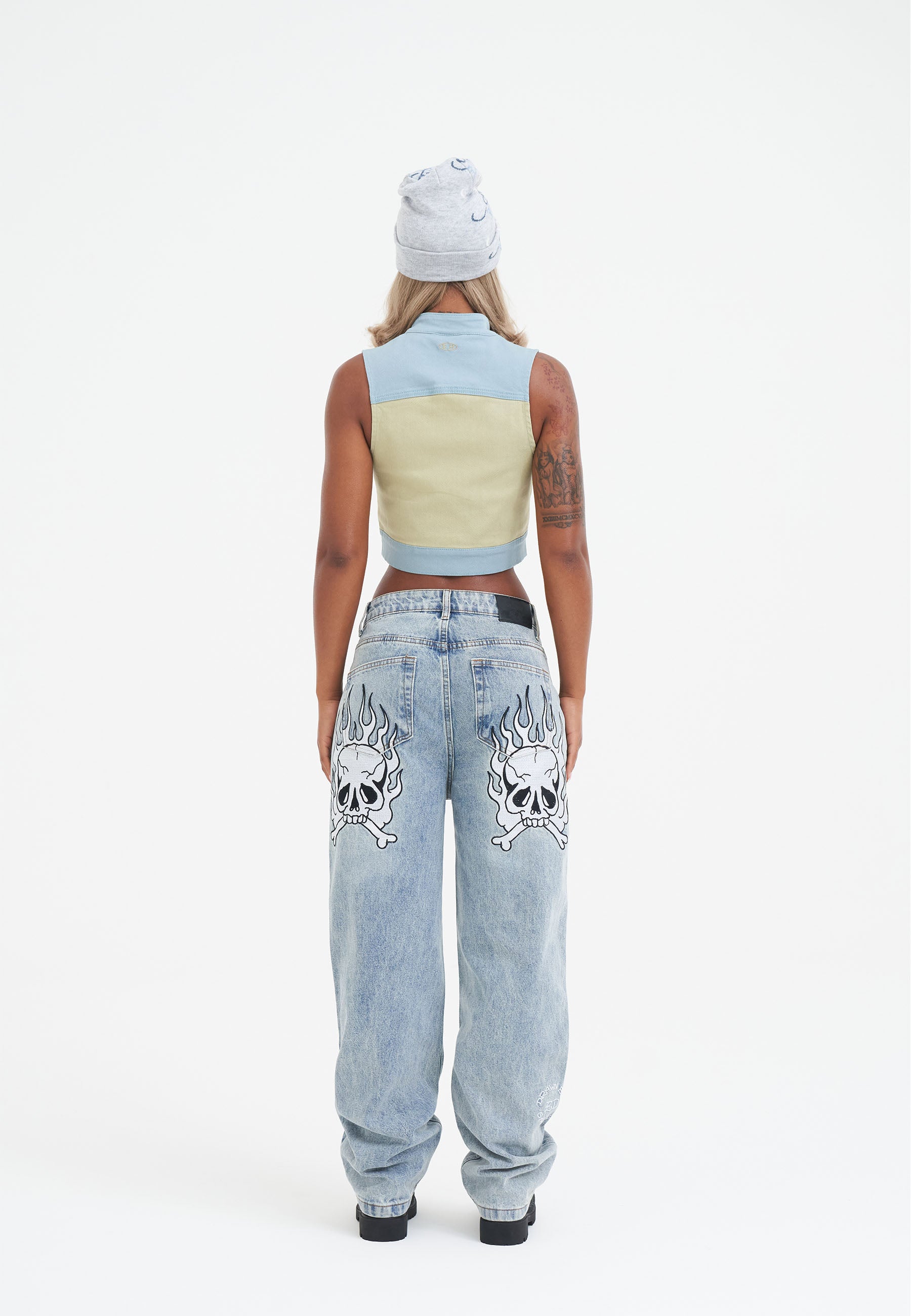 WOMENS TIGER MOTO SLEEVELESS TOP in Blue