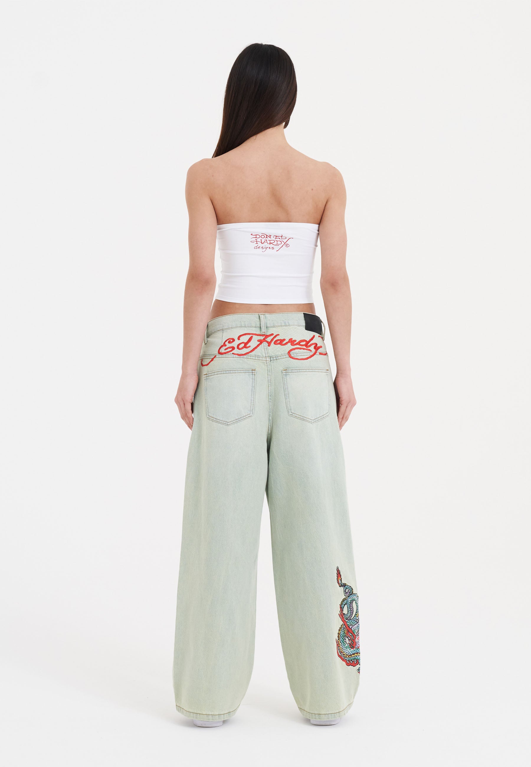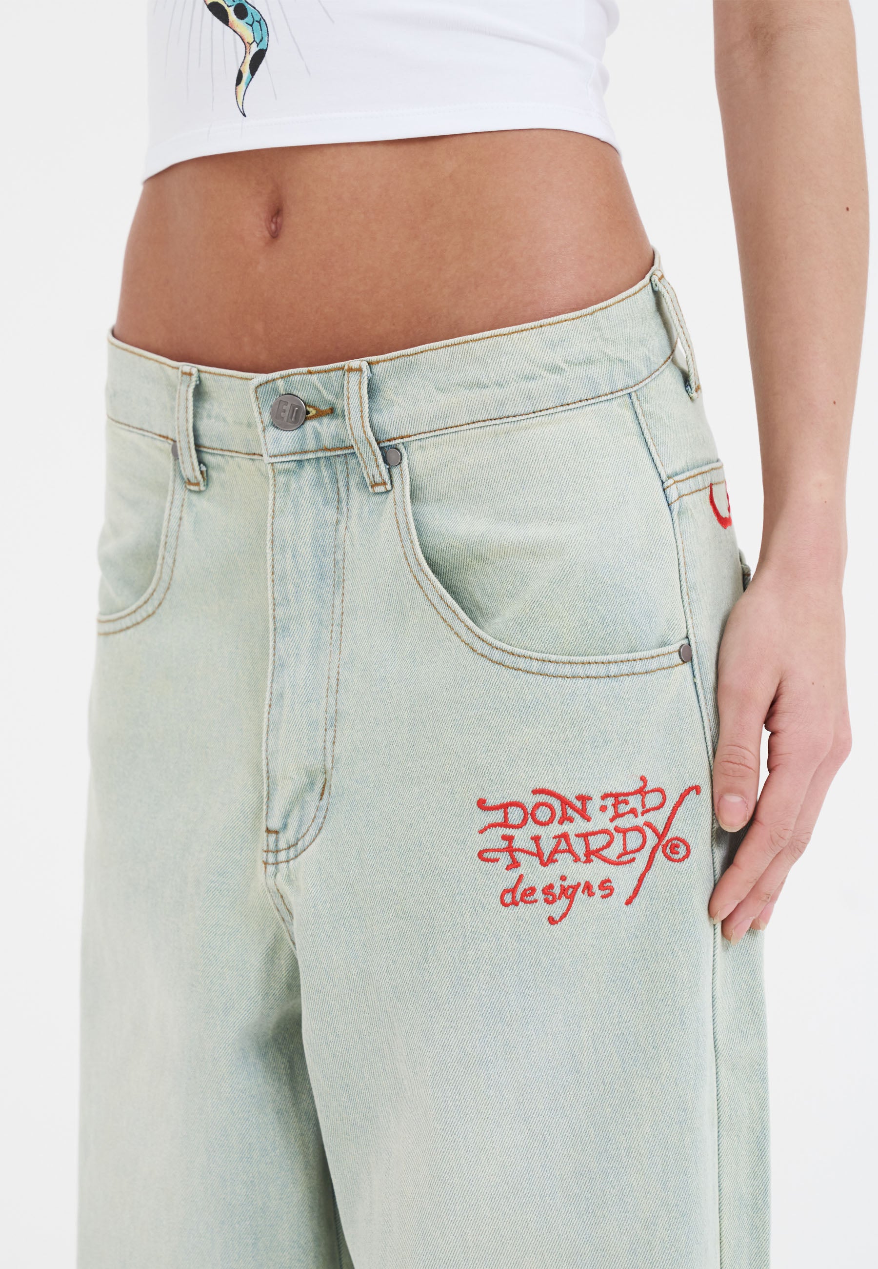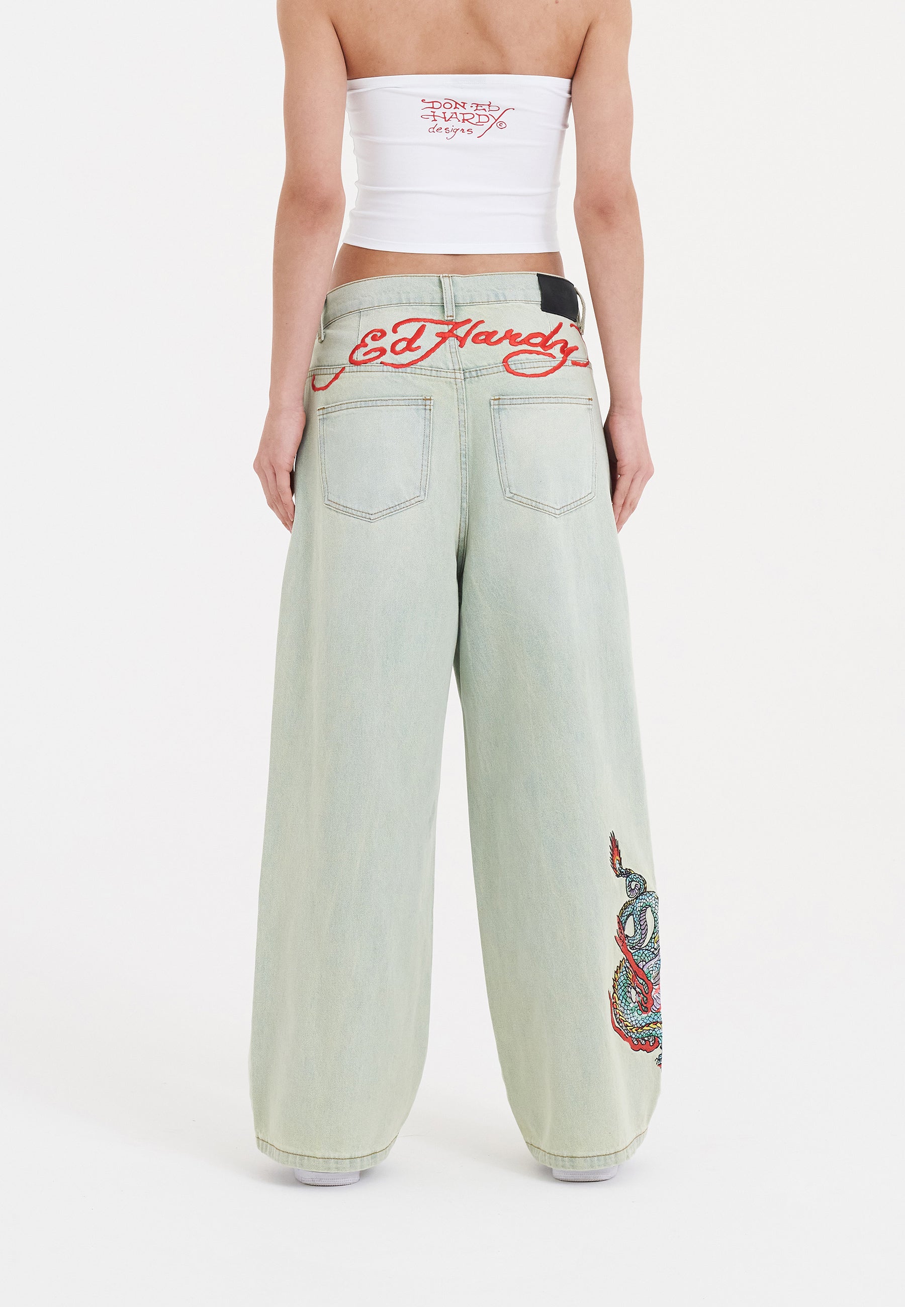 Ed introduces a fresh silhouette for 2024 with the Twisted Dragon Xtra Oversized Jeans, providing an exceptionally roomy and laid-back fit.