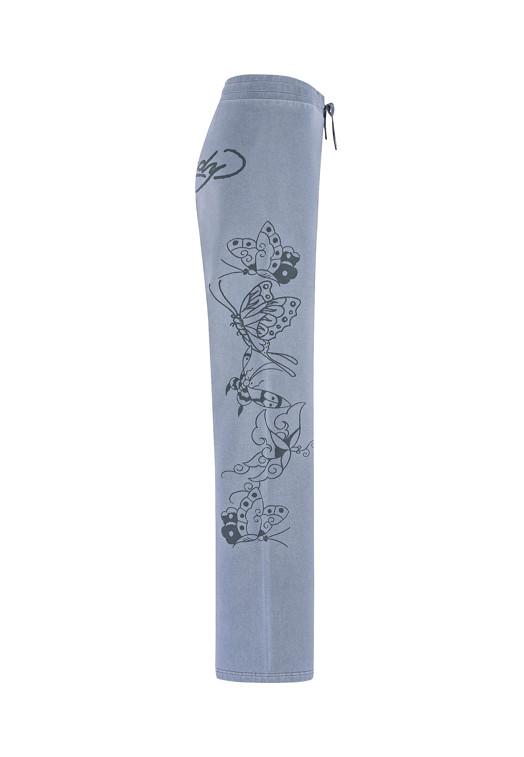 Part of a matching jogger set, these hip-rise, flared-leg pants feature a faded butterfly graphic, synonymous with Ed’s iconic tattoo art.