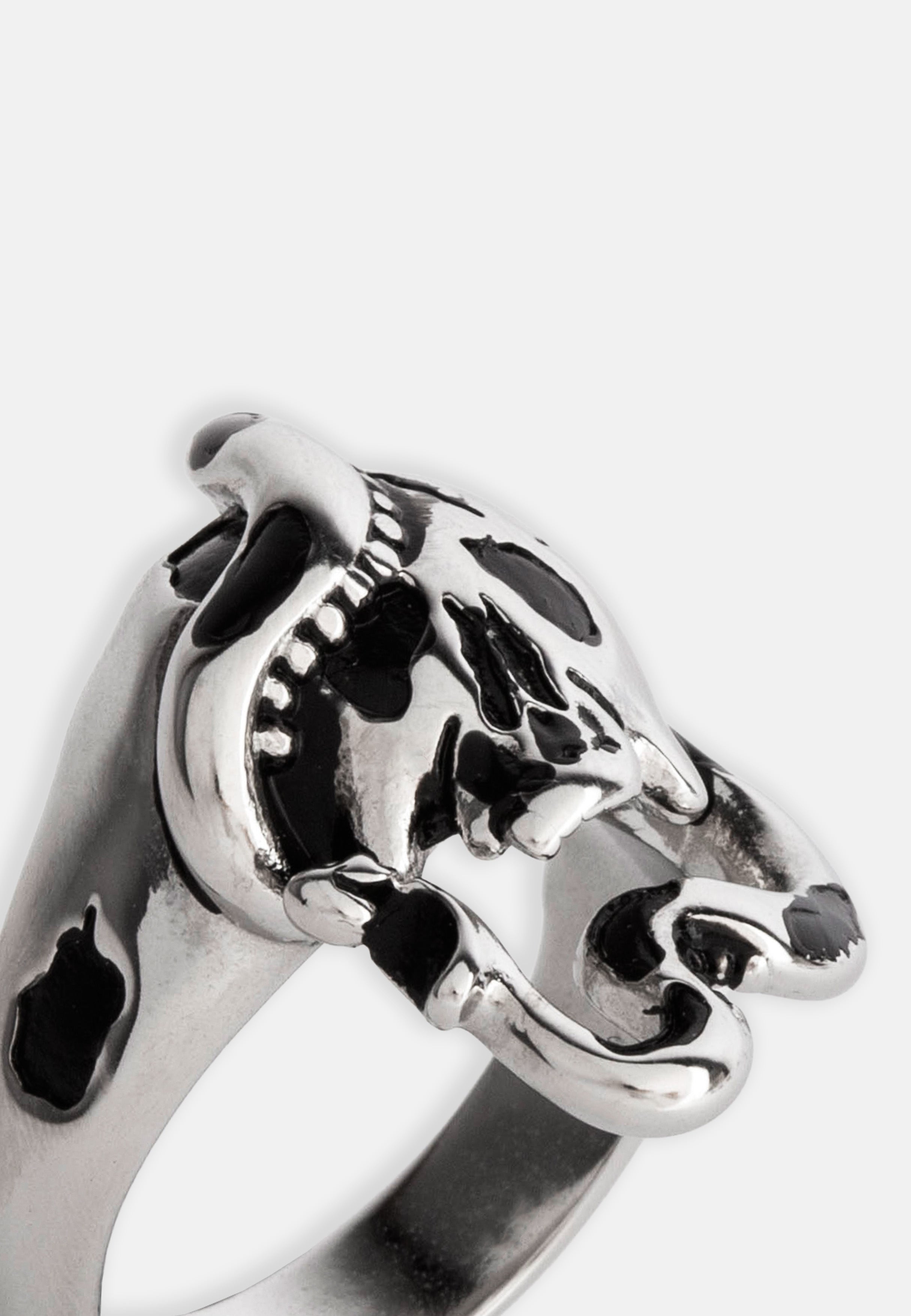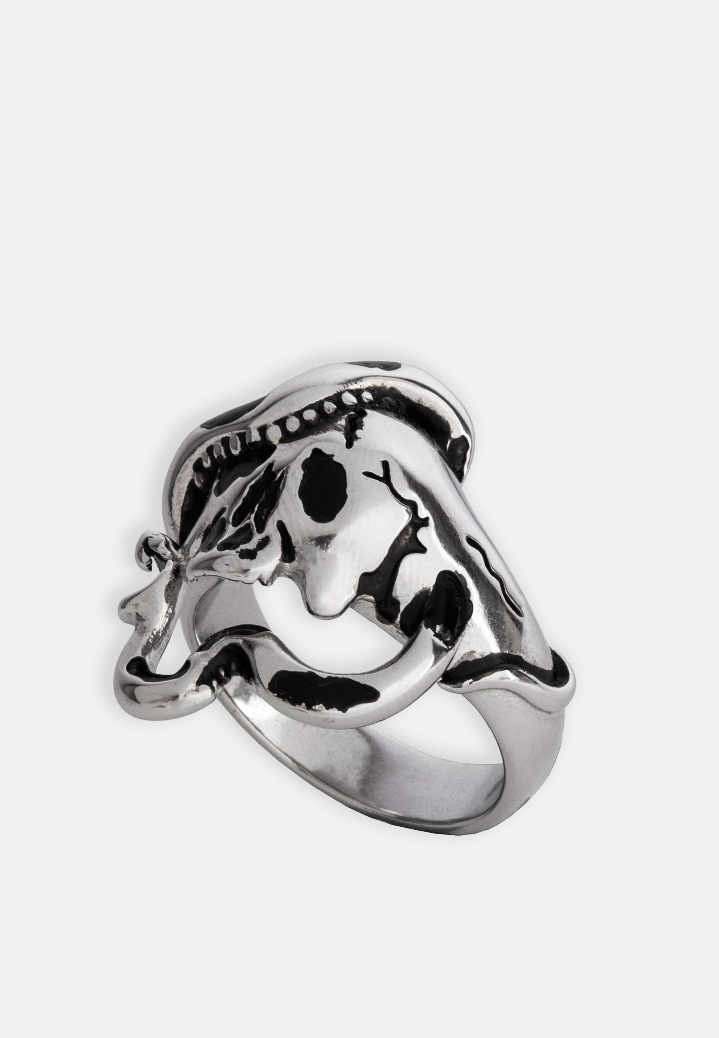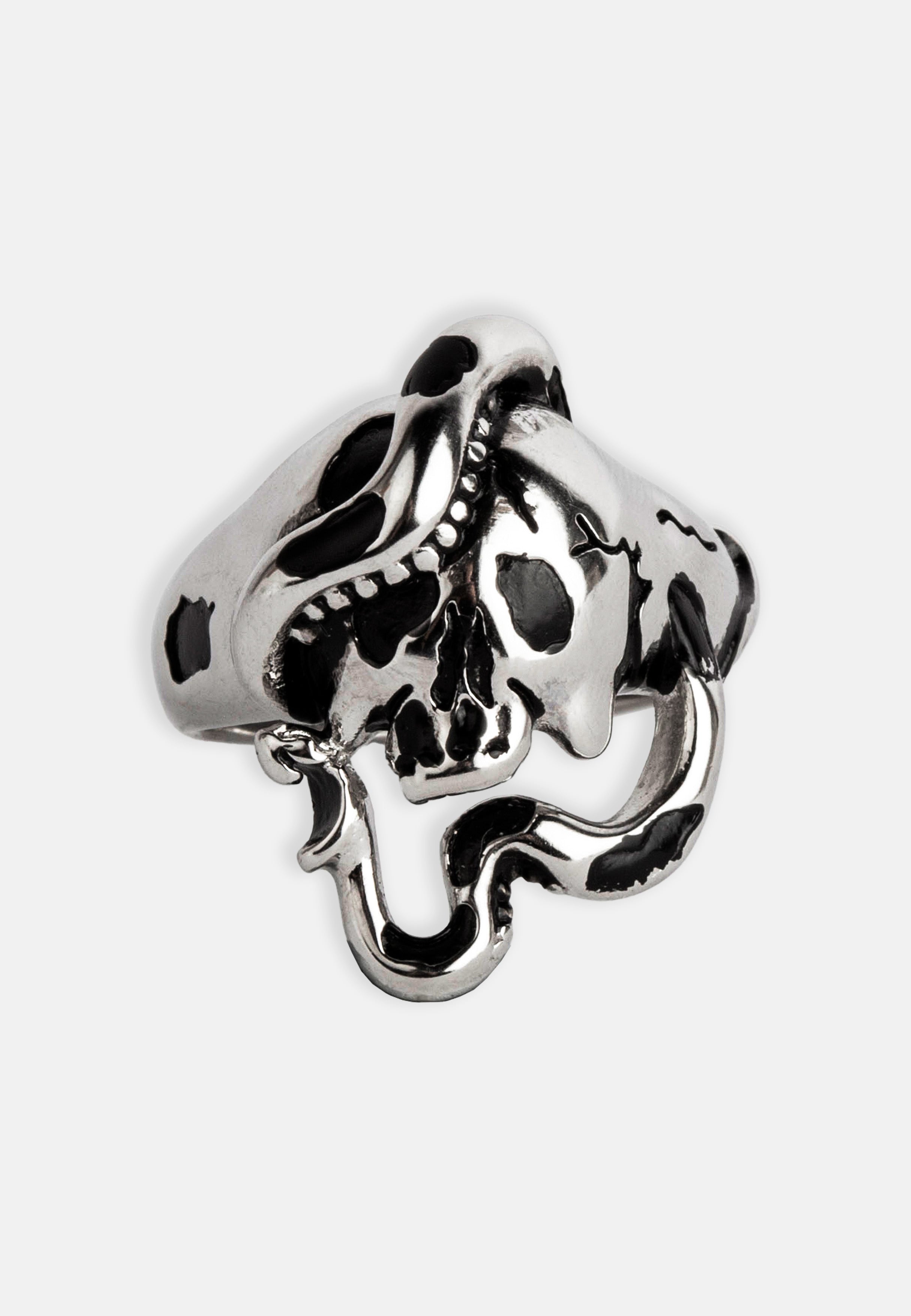 3d Custom Cast signet ring of The Ed Hardy skull with a snake wrapped around. Hand finished in an antique silver finish.