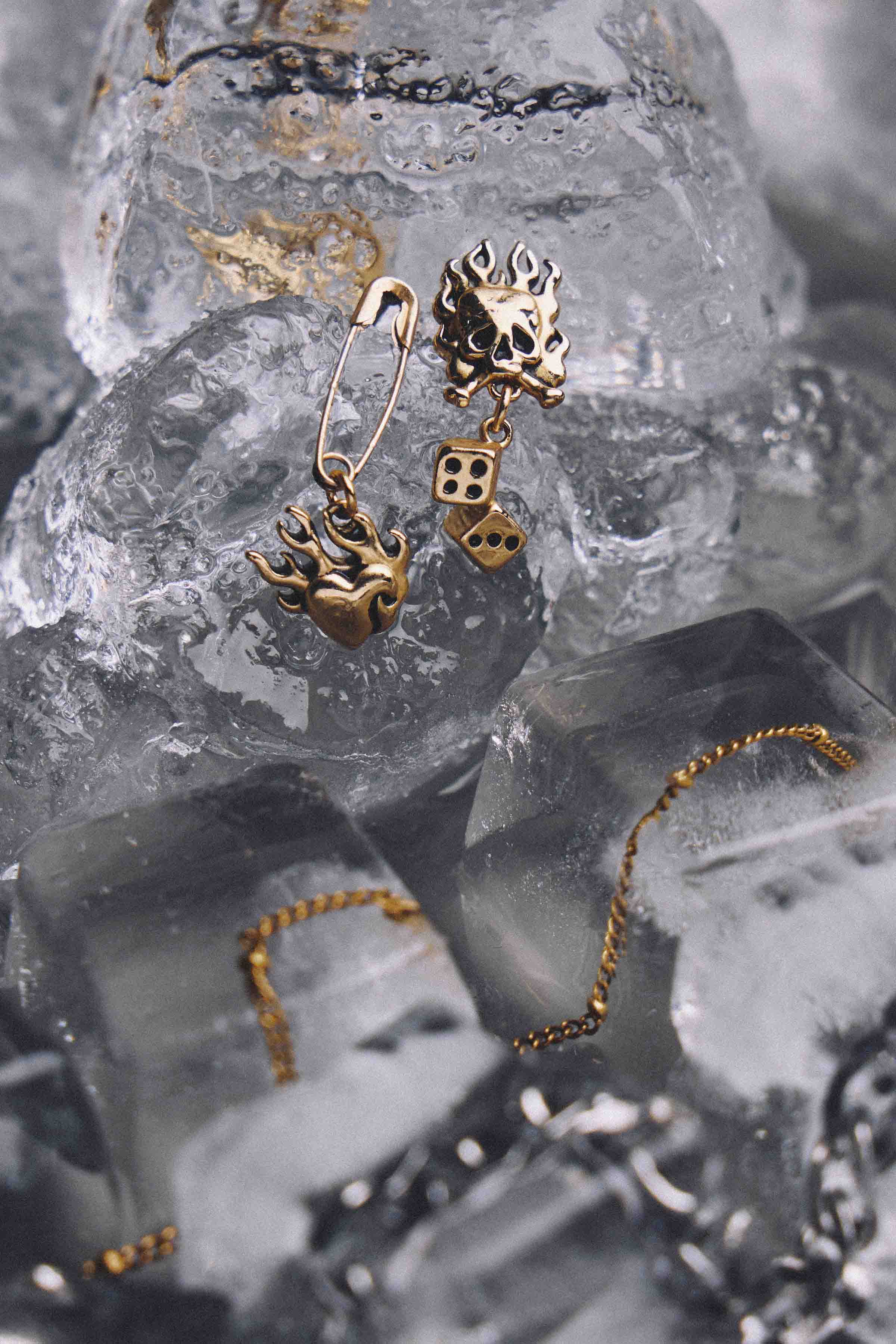 Ed Hardy Flaming Skull and Dice earring - Gold