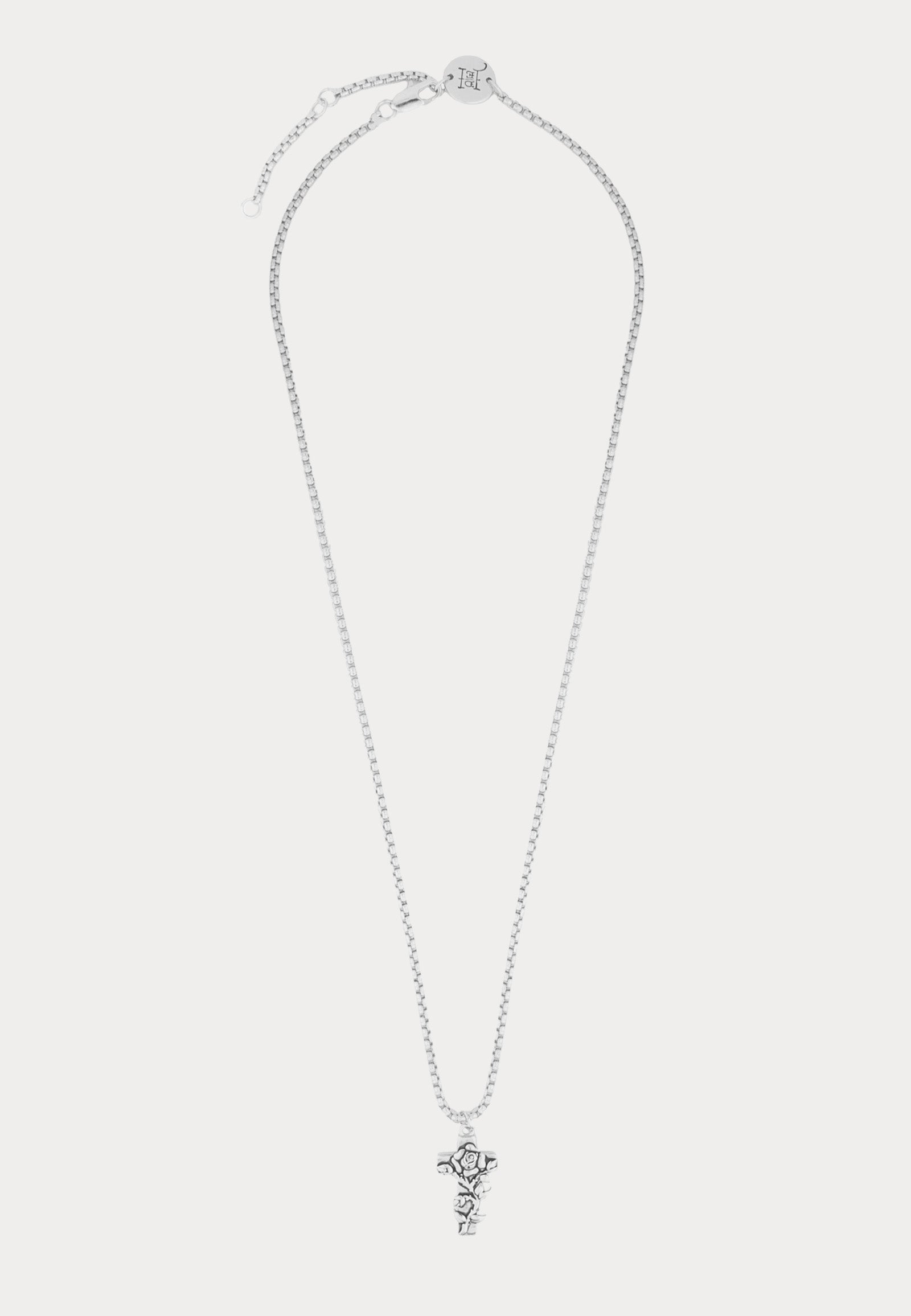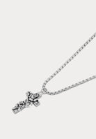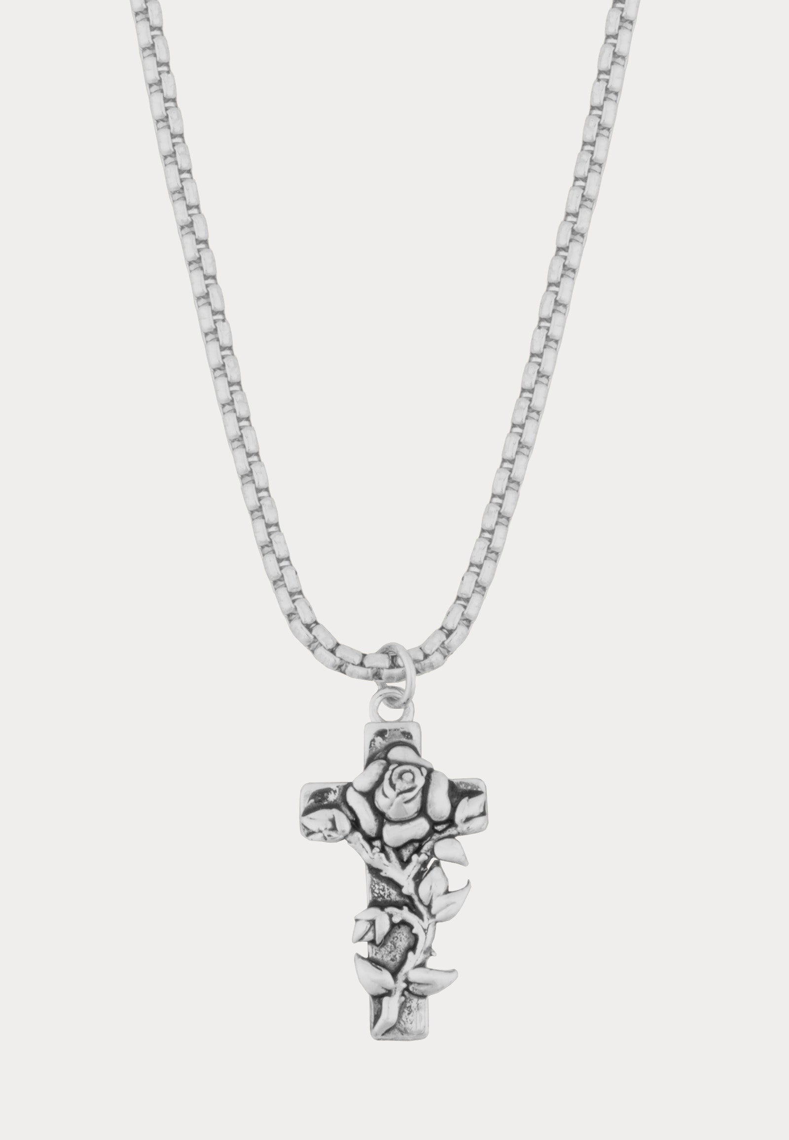 Cross & Rose Thorn Custom-Cast Crucifix Chain Necklace - Silver