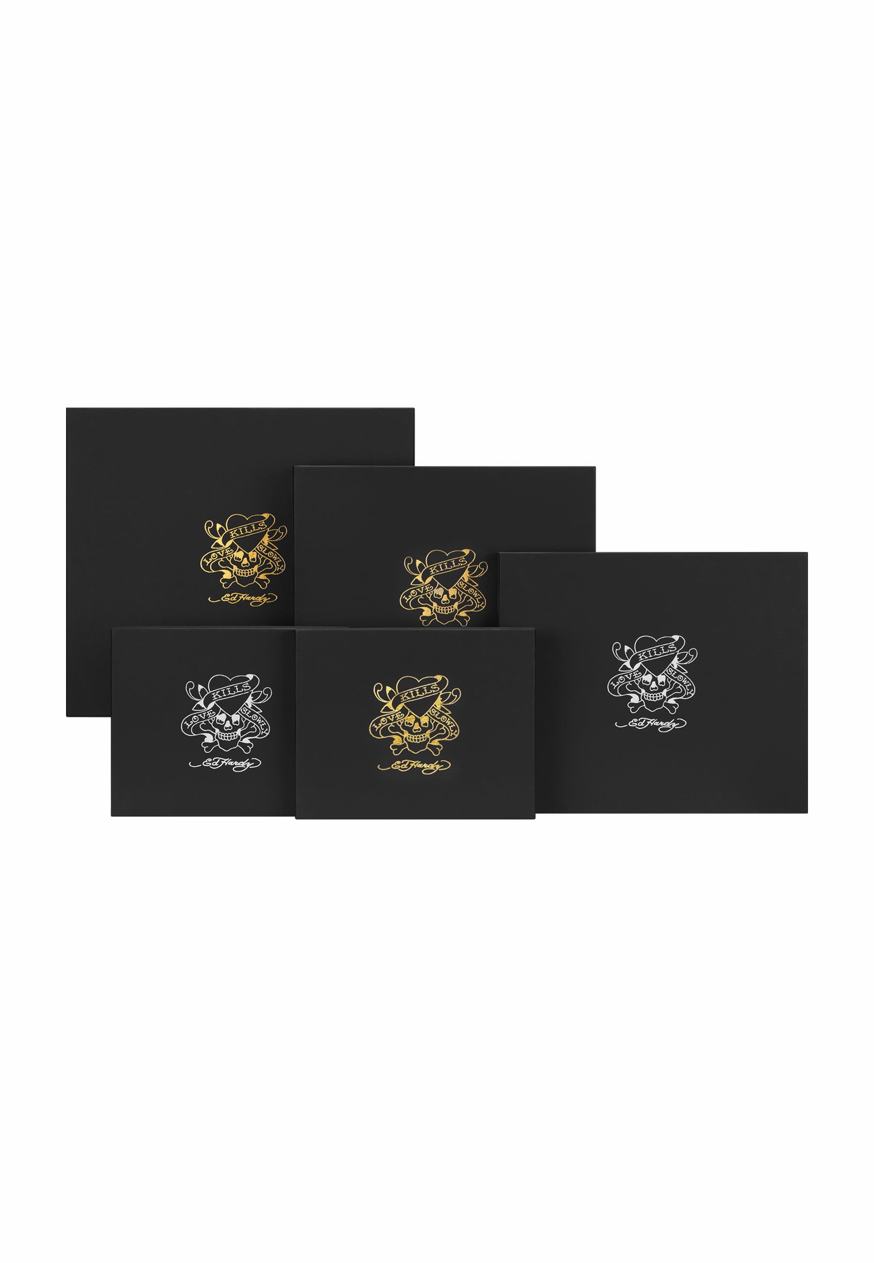 Unwrap iconic Ed Hardy style this Christmas with our sleek black gift boxes, with branded tissue paper and adorned with signature designs in silver or gold.