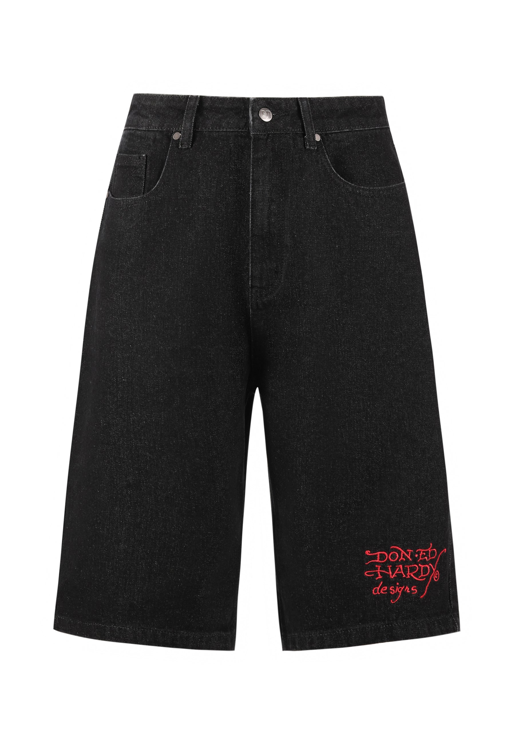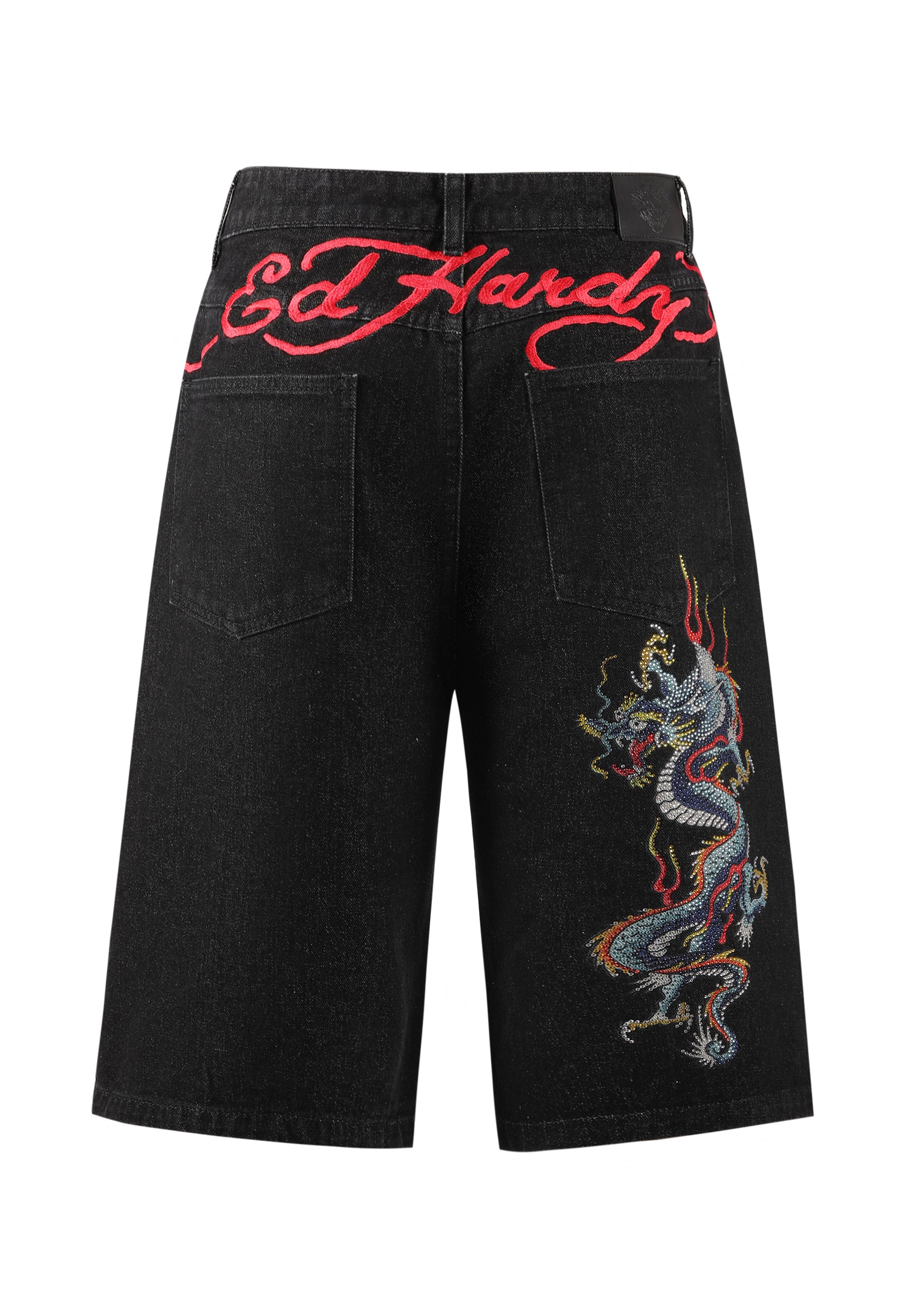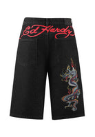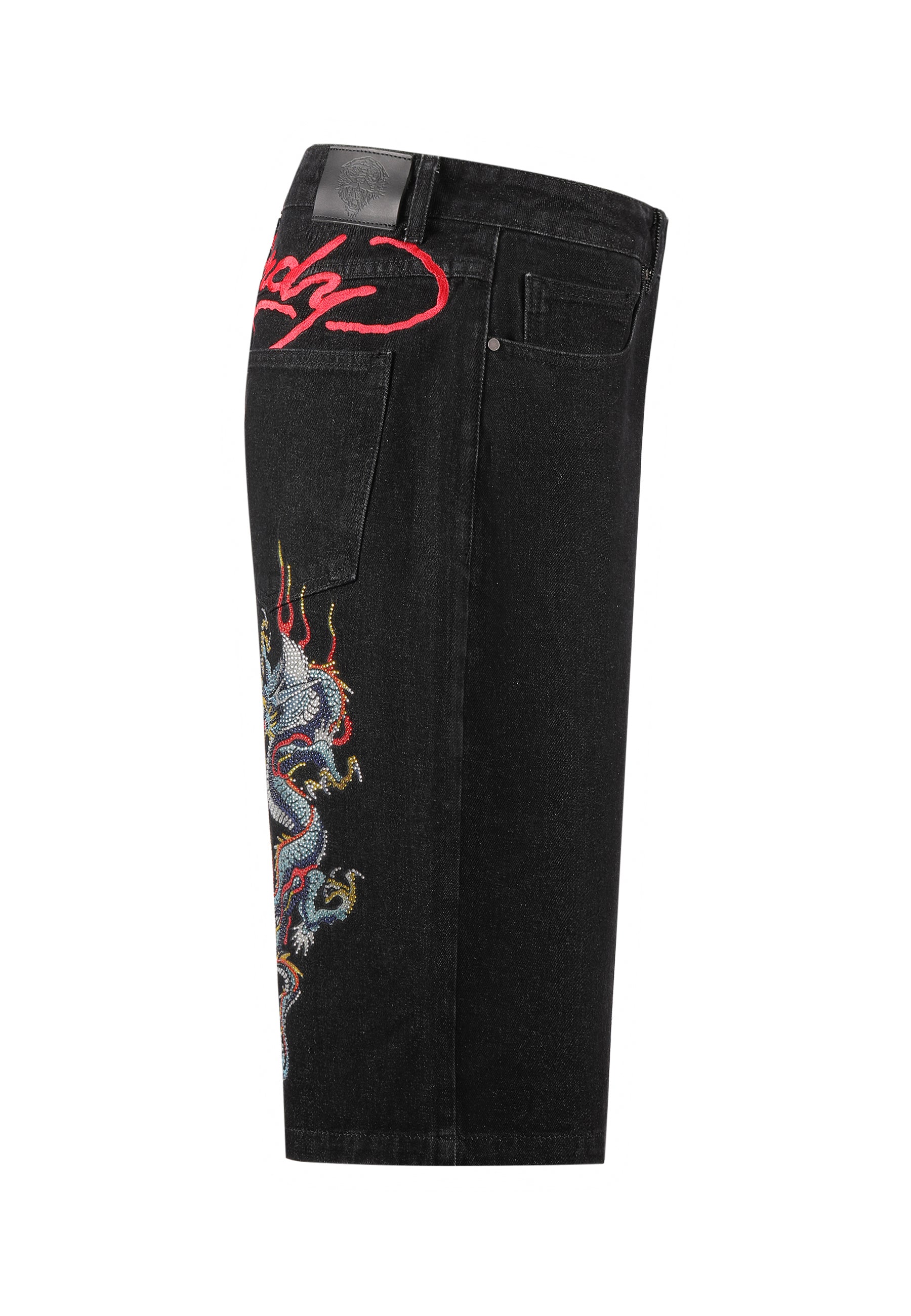 Mens Battle Dragon Denim Jorts Shorts - Washed Black