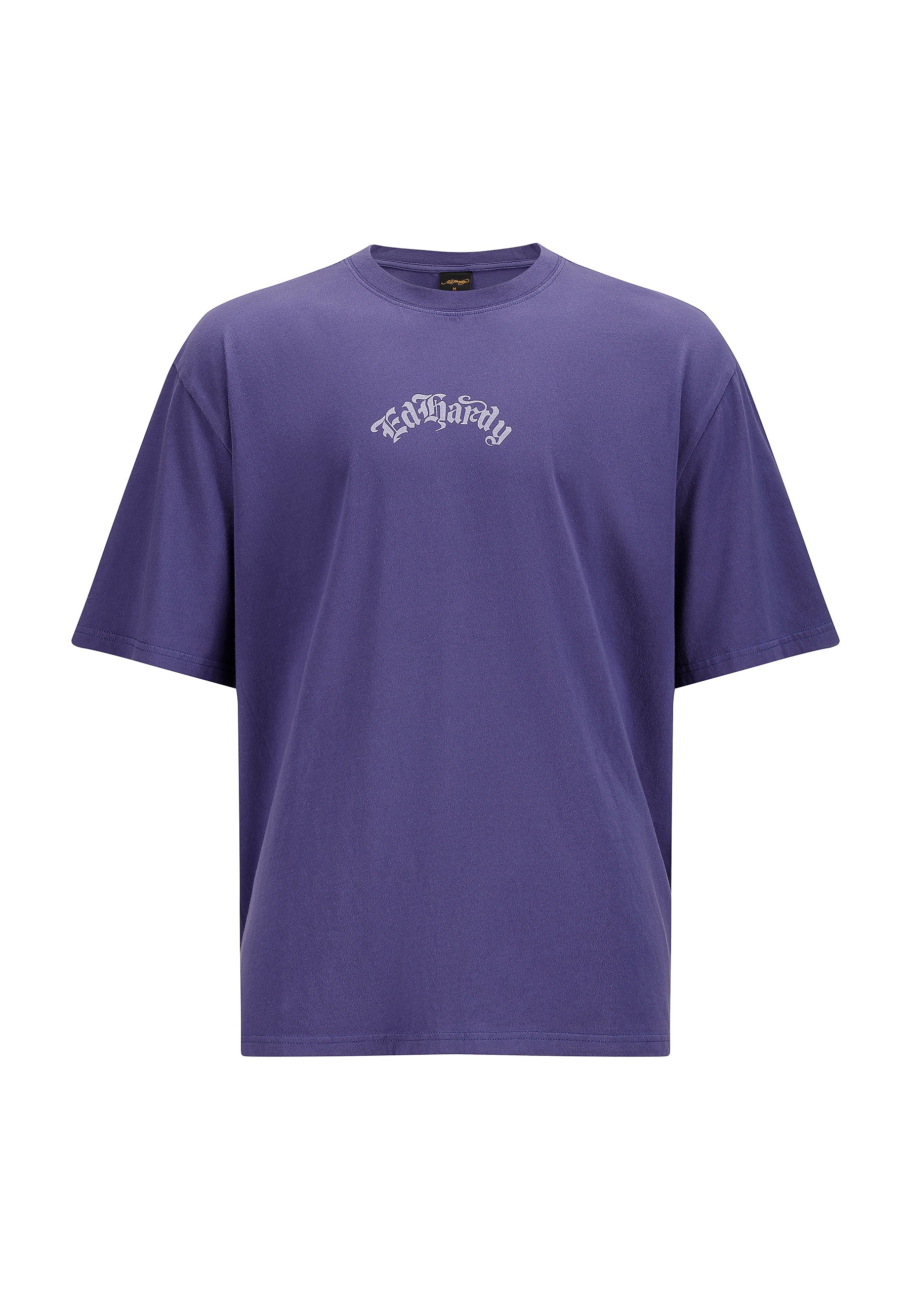 Relaxed fit with short sleeves Soft 100% purple cotton Ribbed collar detail Gothic signature chest logo Large faded back print