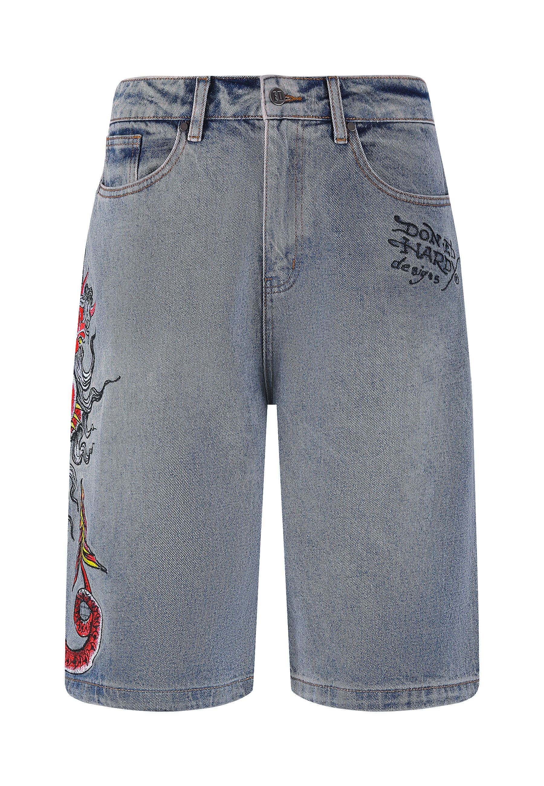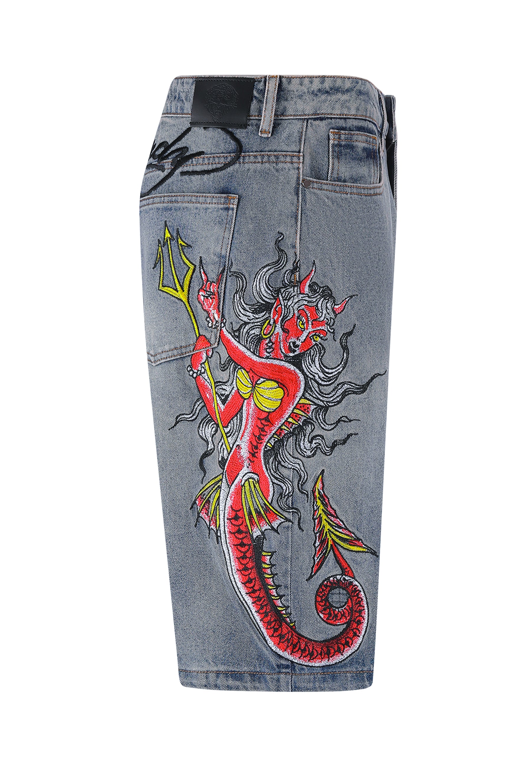 Mens Devil Mermaid Denim Jorts Shorts - Blue