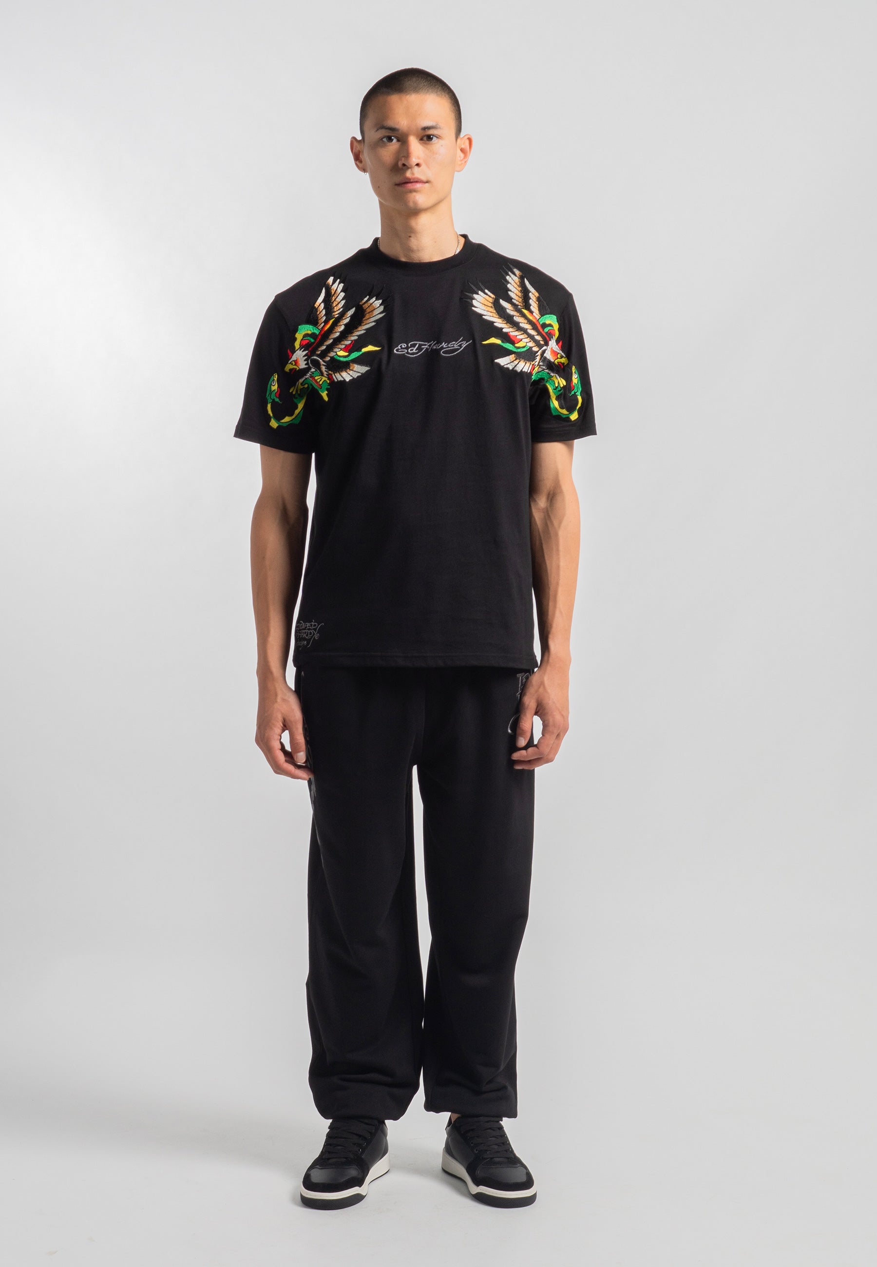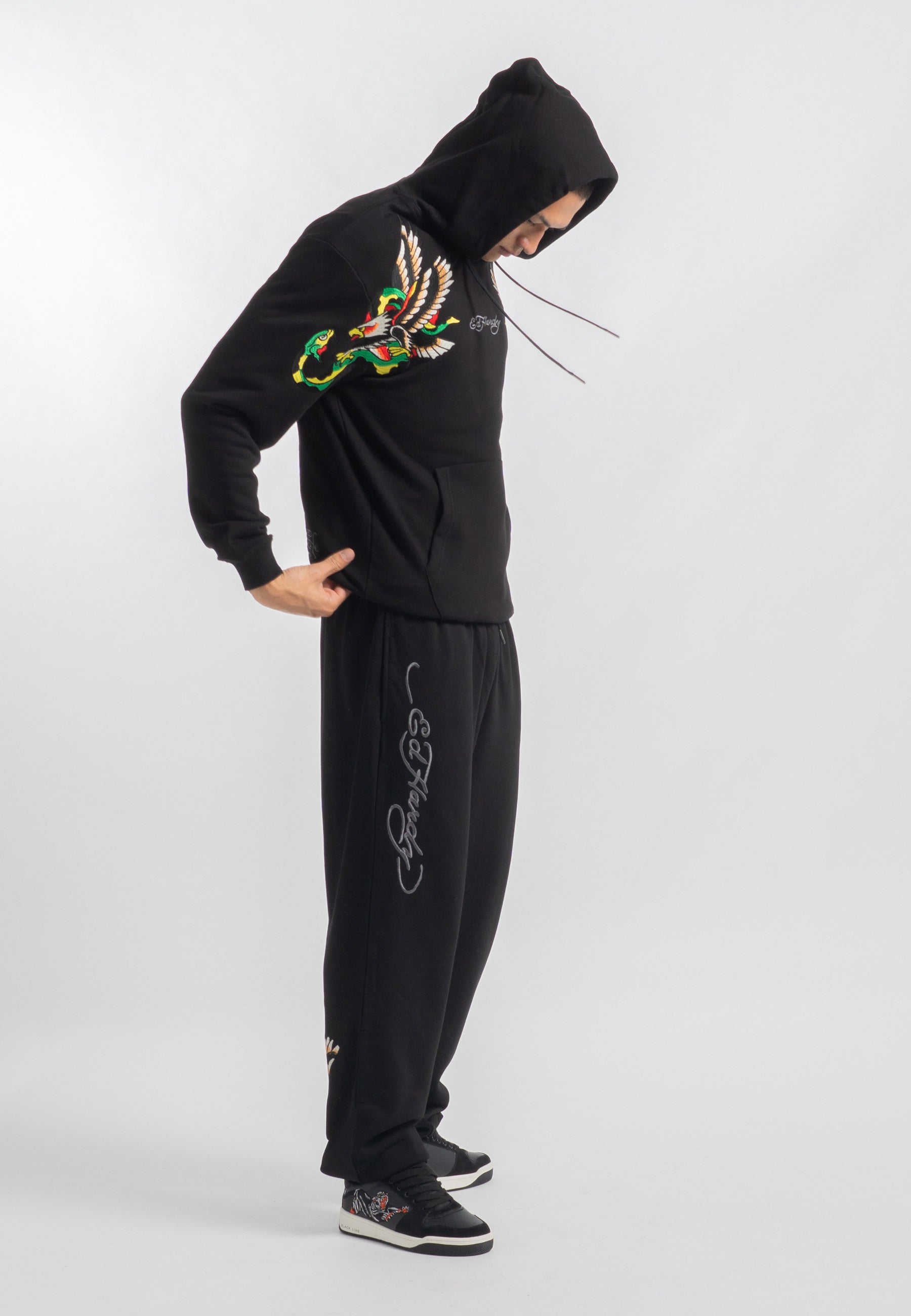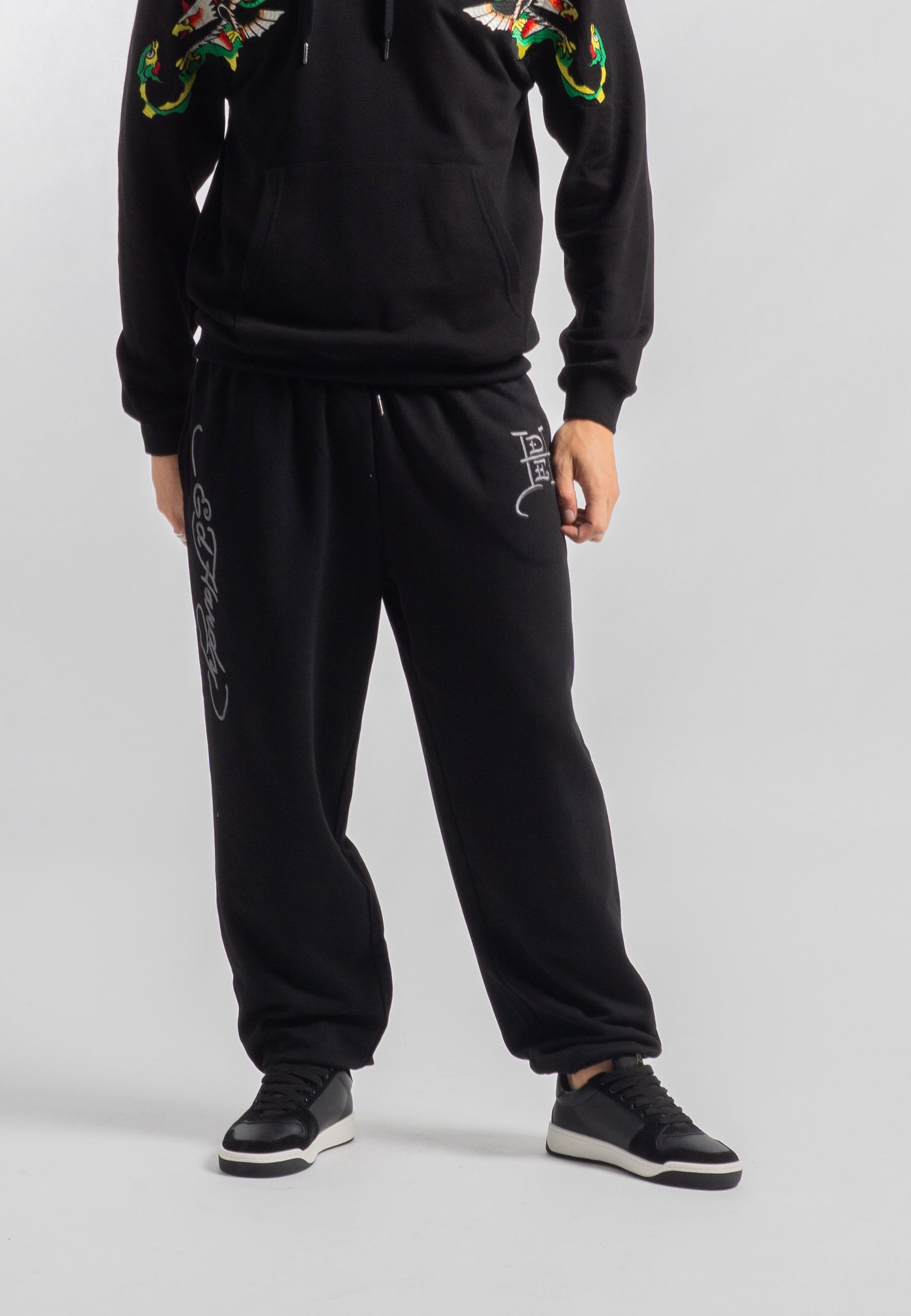 Mens Snake-Eagle-Flight Baggy Tracksuit Bottoms - Black