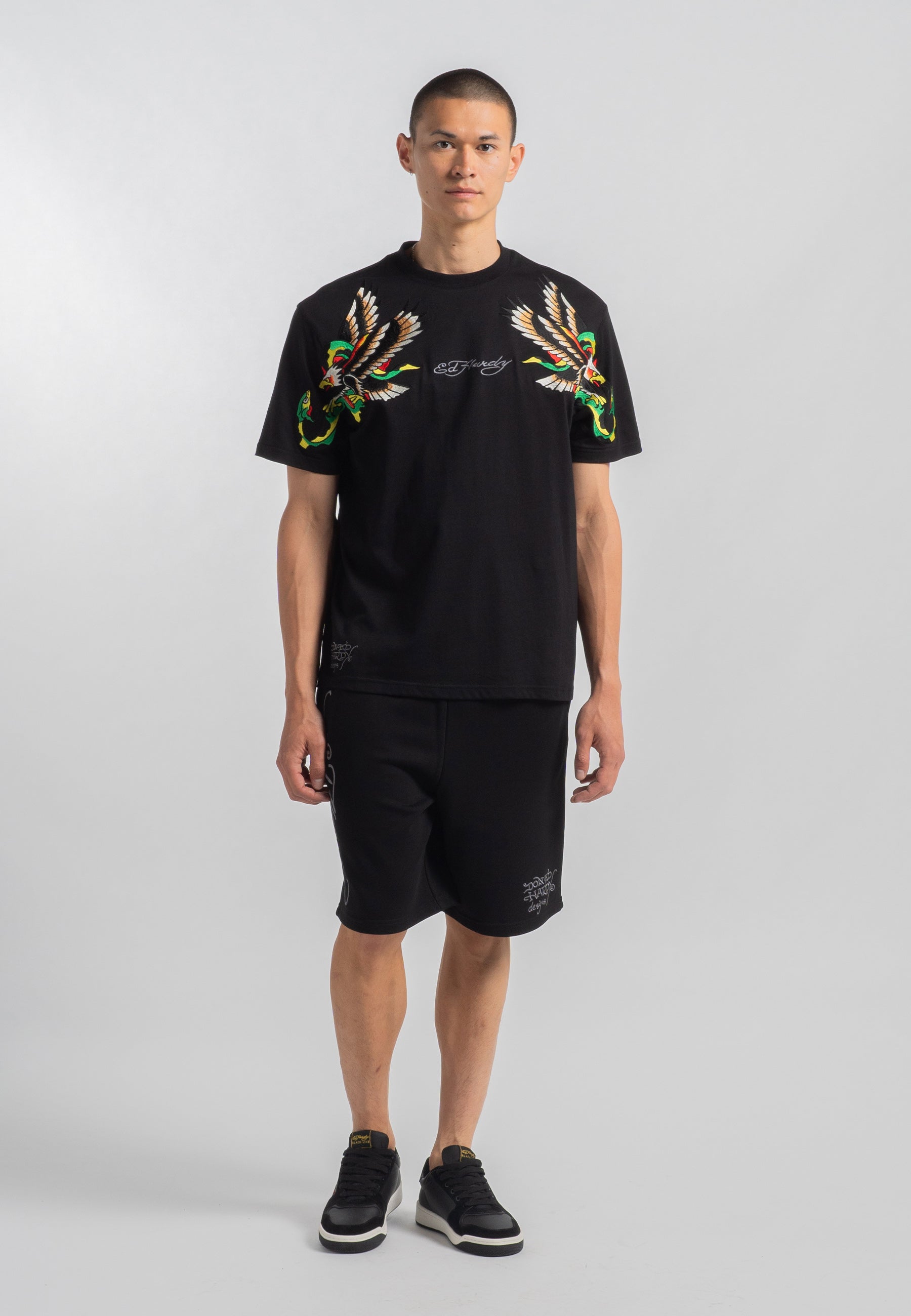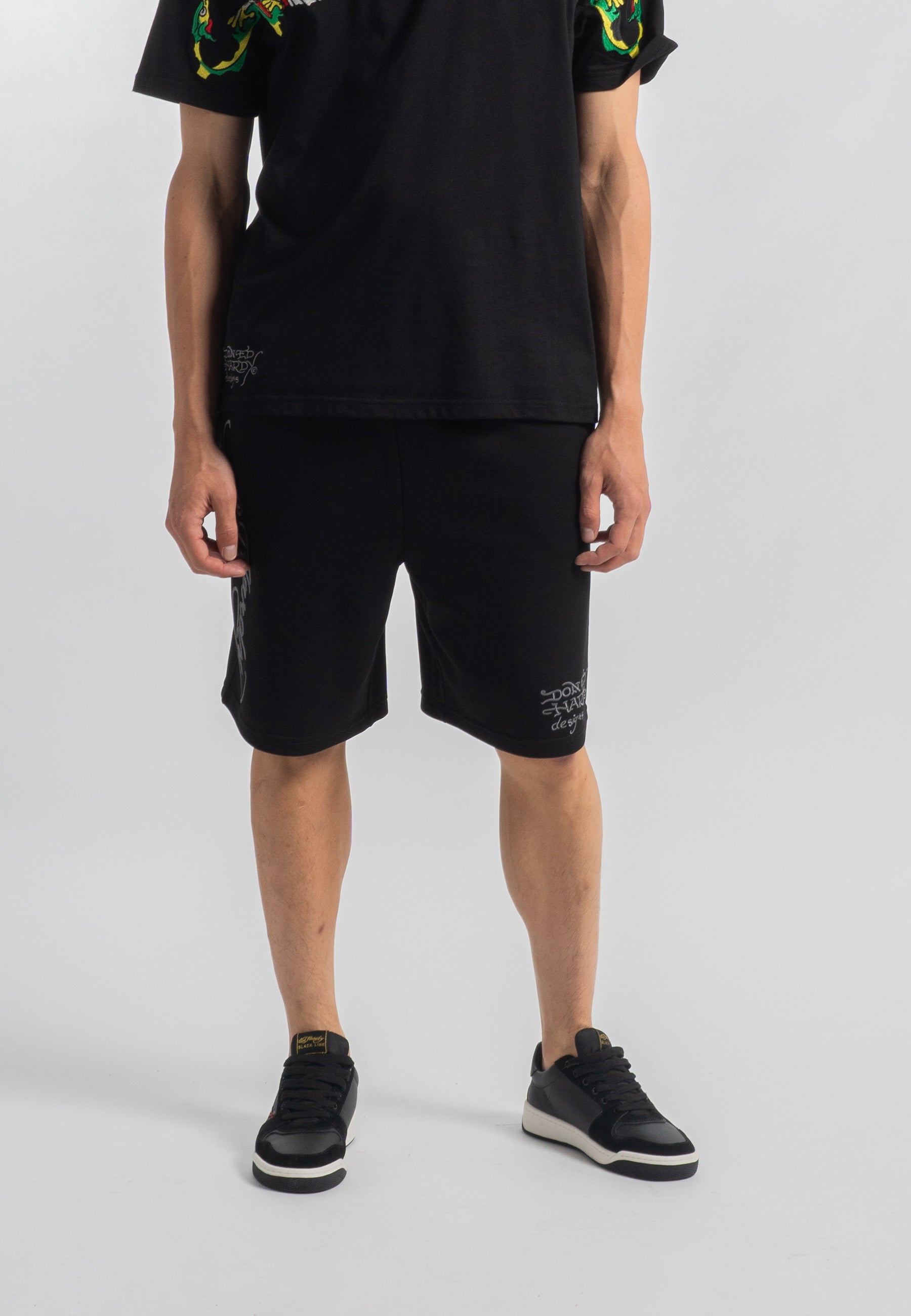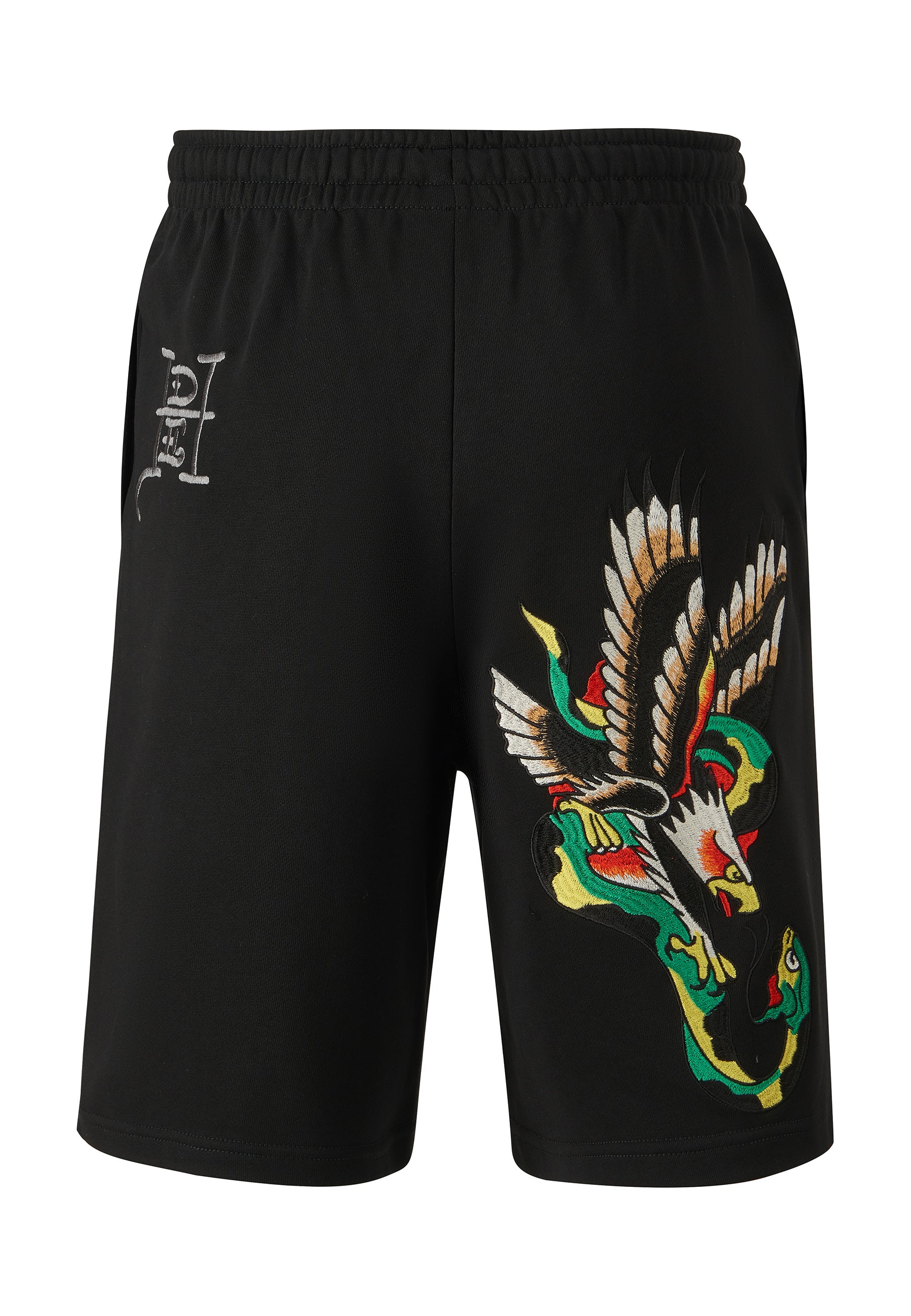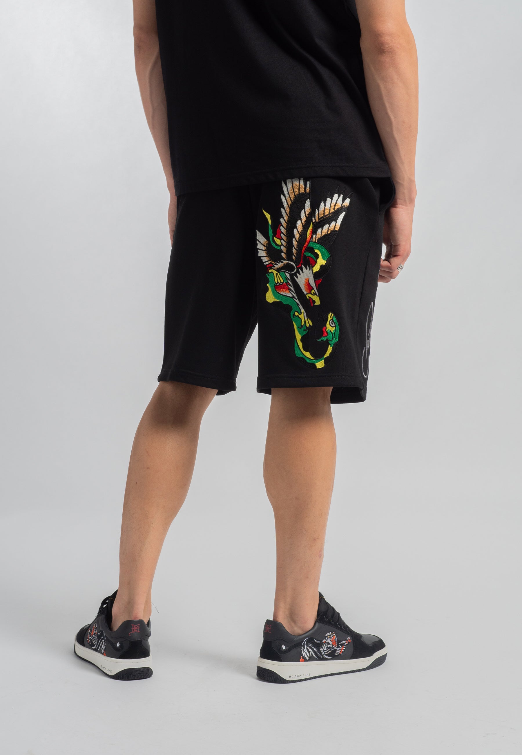 Mens Snake-Eagle-Flight Sweat Shorts - Black