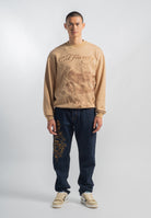 Mens Vintage-Drag-Logo Crew Neck Jumper - Beige