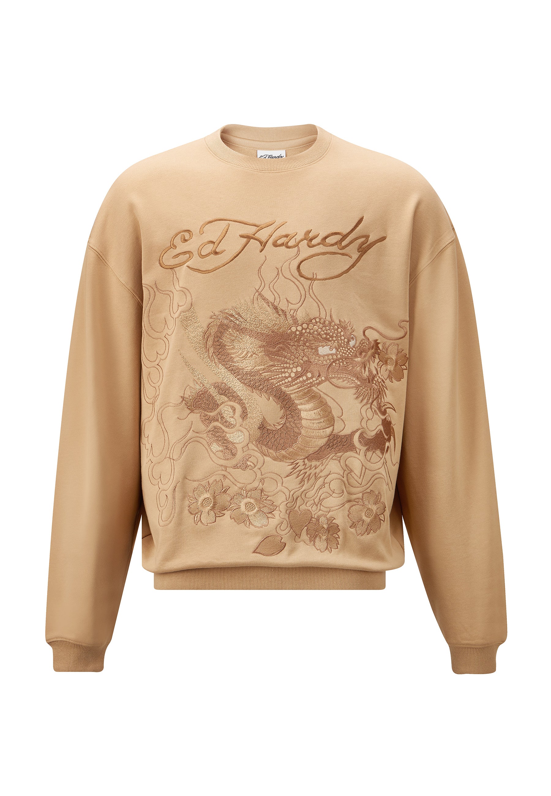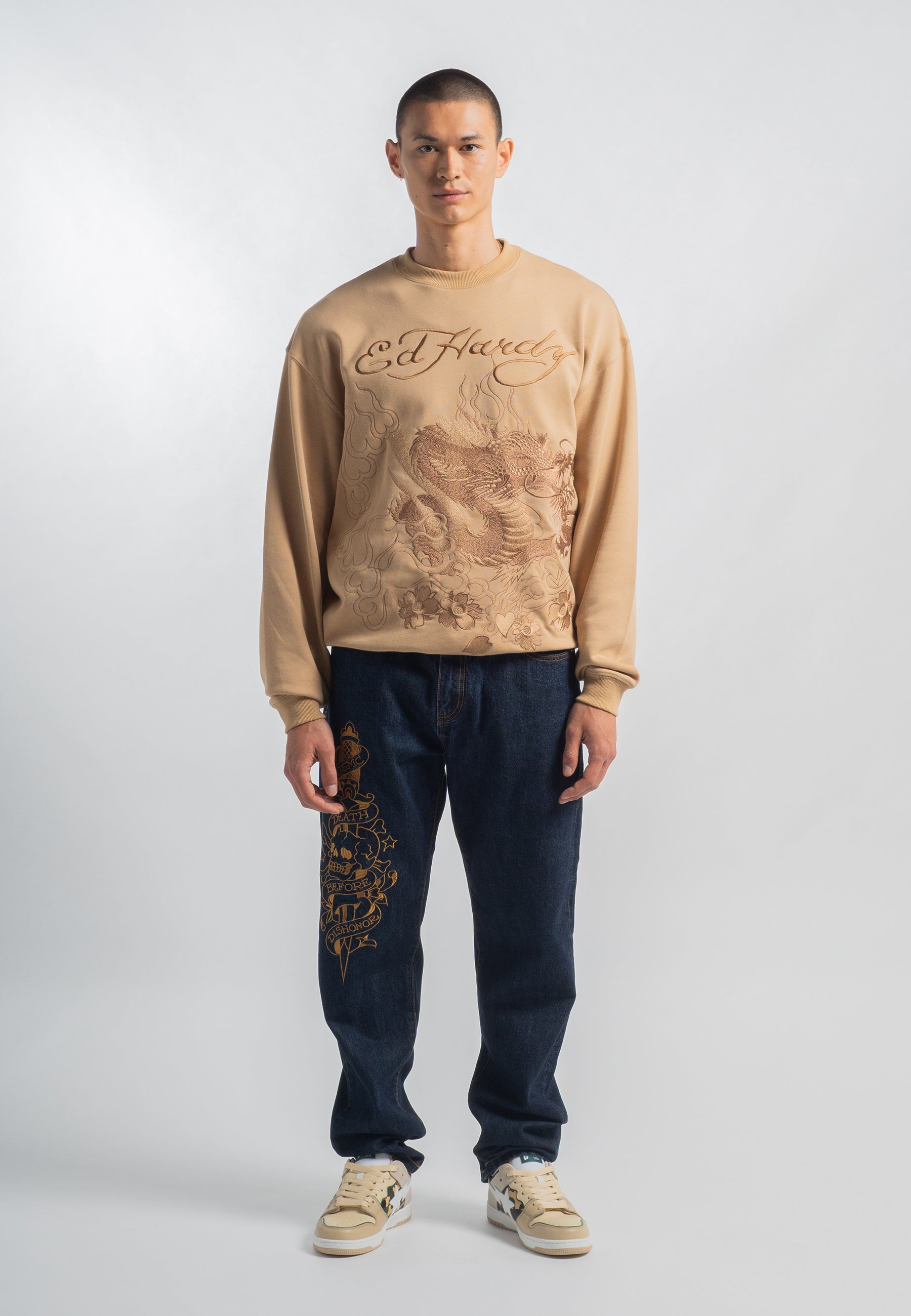 This jumper, featuring vintage-inspired tonal embroidery, pays homage to Ed Hardy's iconic designs.