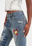 Womens Dragon Multi placement Seam Detail Jeans - Blue